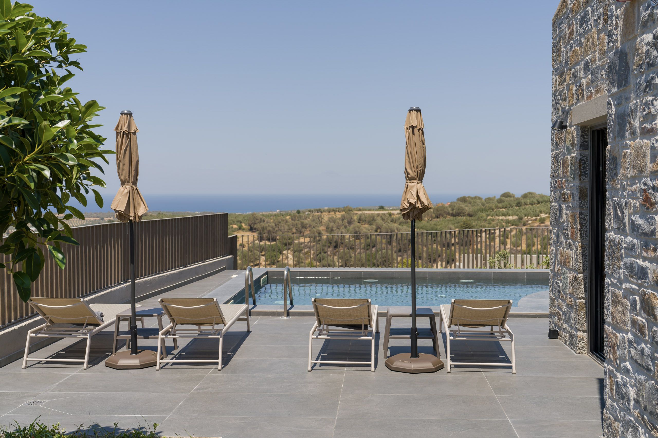 Set just outside the village of Agia Triada, this small complex of three modern villas is all about peace, views and effortless group stays. Each villa is self-contained, with two bedrooms, two bathrooms and its own private pool, making it a good fit for groups of couples, families or friends travelling together who want to feel connected yet maintain their own space. The surroundings are quiet and serene, with the town of Rethymno around a twenty-minute drive away, so having a car will help you make the most of the area.
