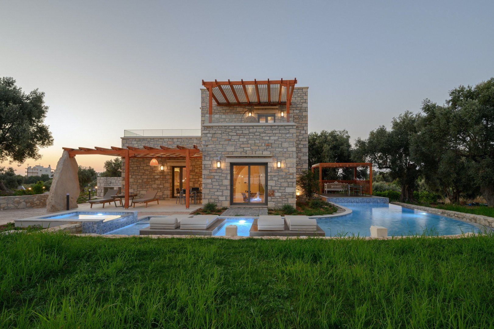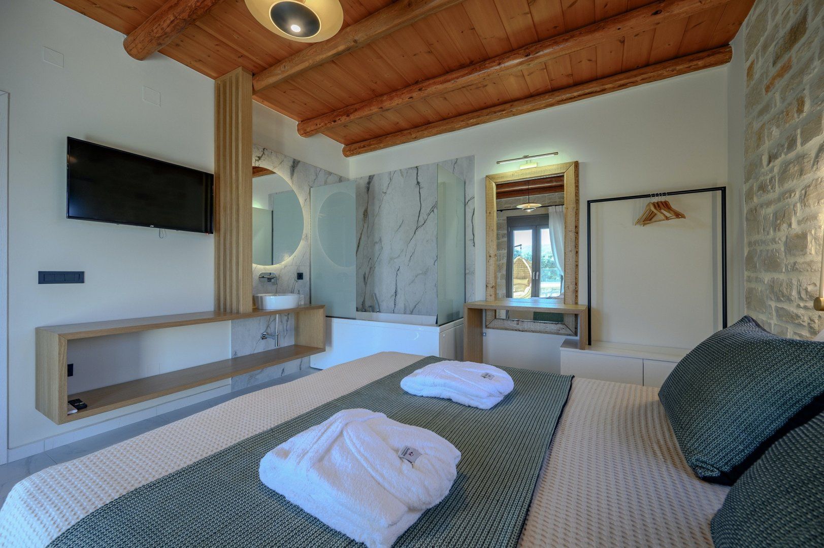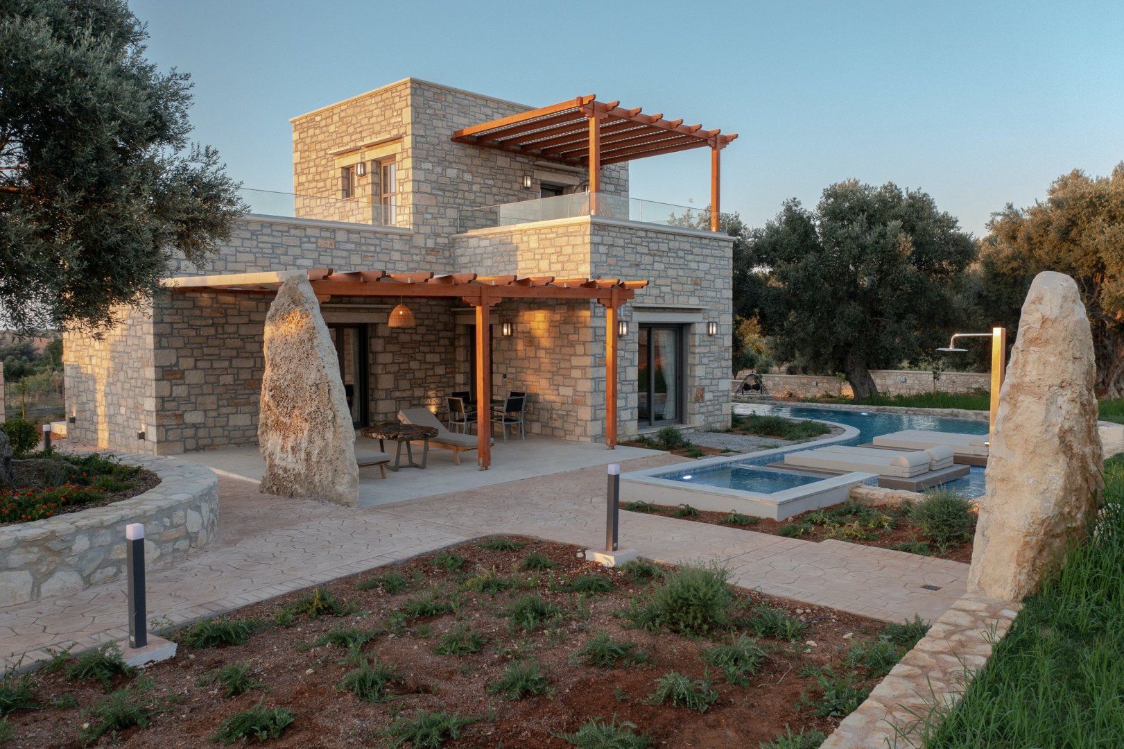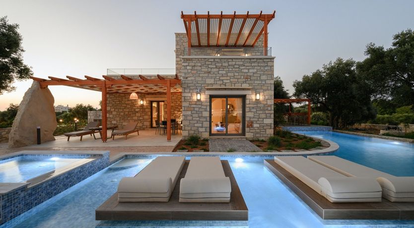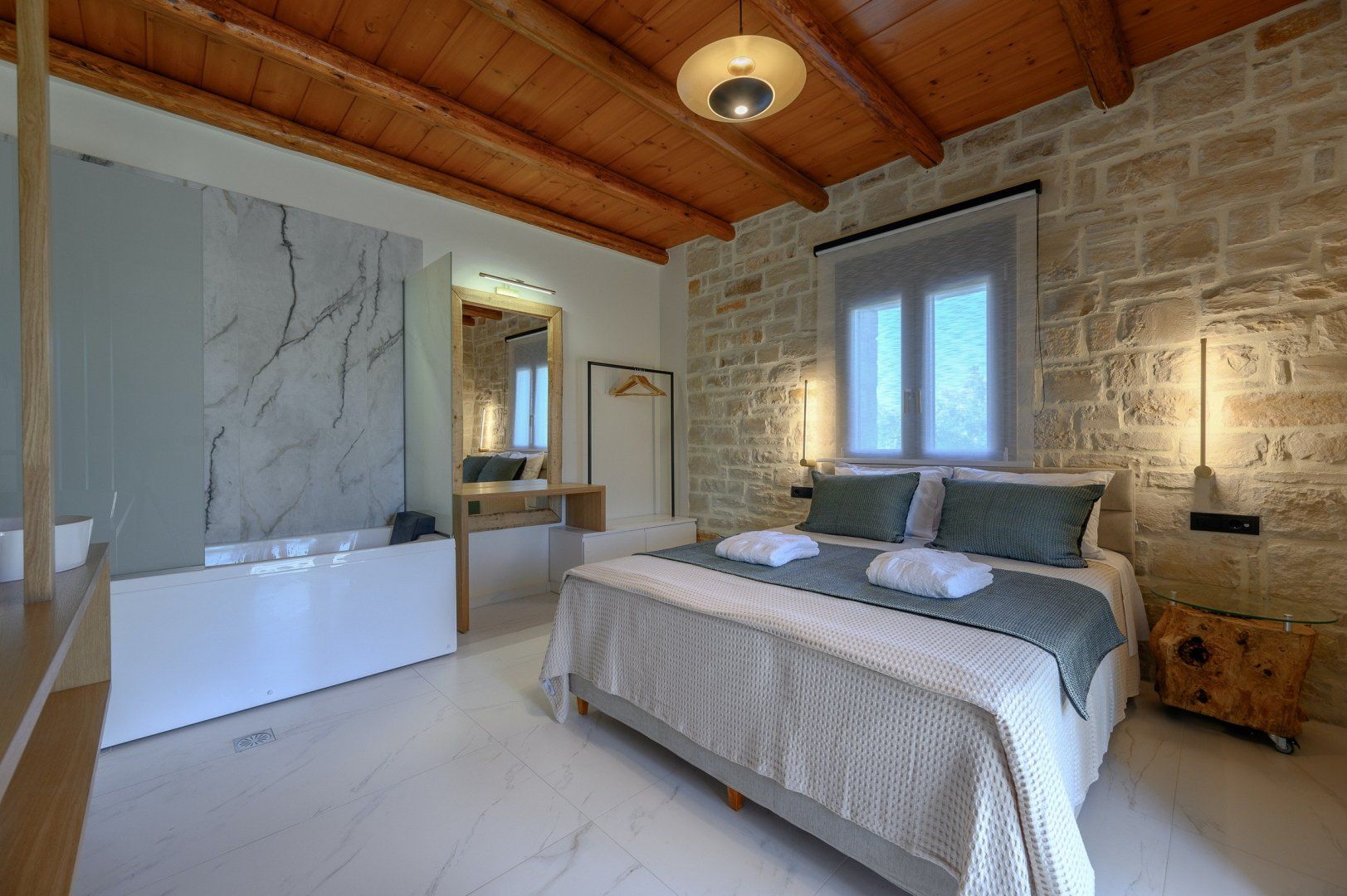 Start each morning with a soak in your freestanding bath – each bedroom has one. Then, sip on a cup of coffee in your swinging egg chair, located on your private balcony, and take in the surrounding views of the rolling hills and lush greenery. Go downstairs into your fully equipped kitchen and cook up some Greek scrambled eggs and tuck in around your stylish dining set. Head outside and rest in the sun on a poolside lounger, or enjoy a lush swim in your private pool. As the evenings roll in, relax in the hot tub while waiting for the stars to join you.