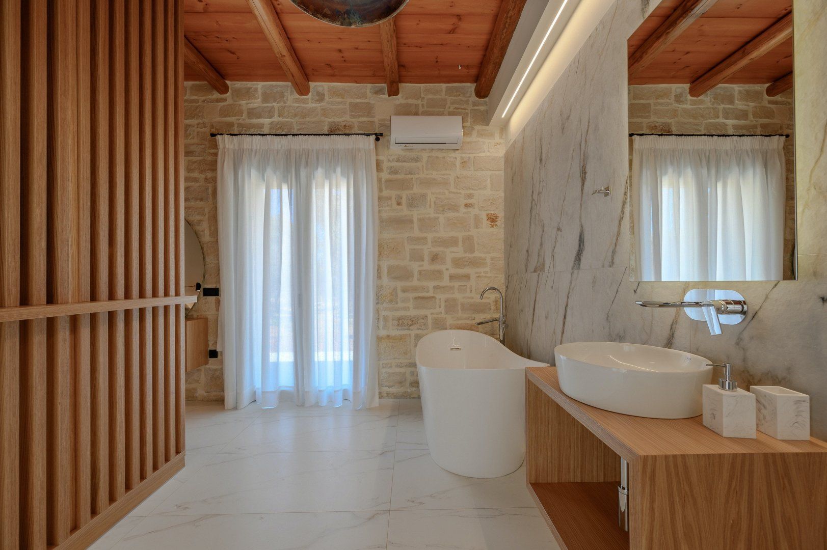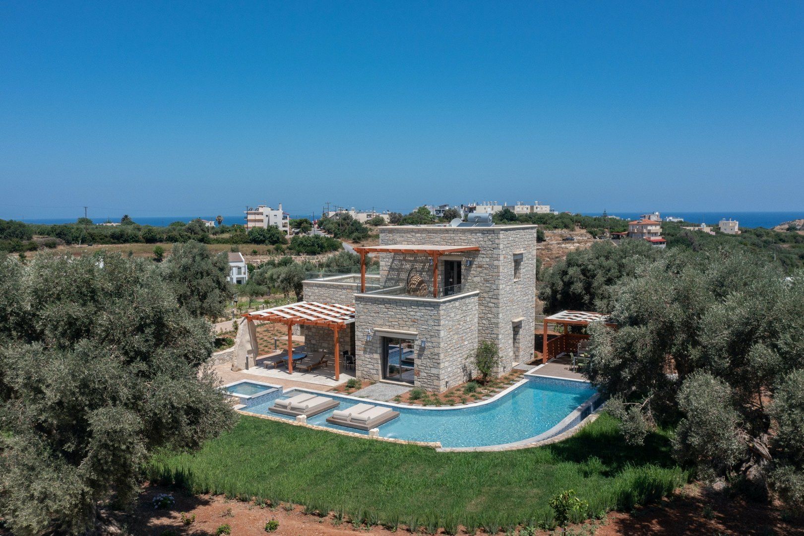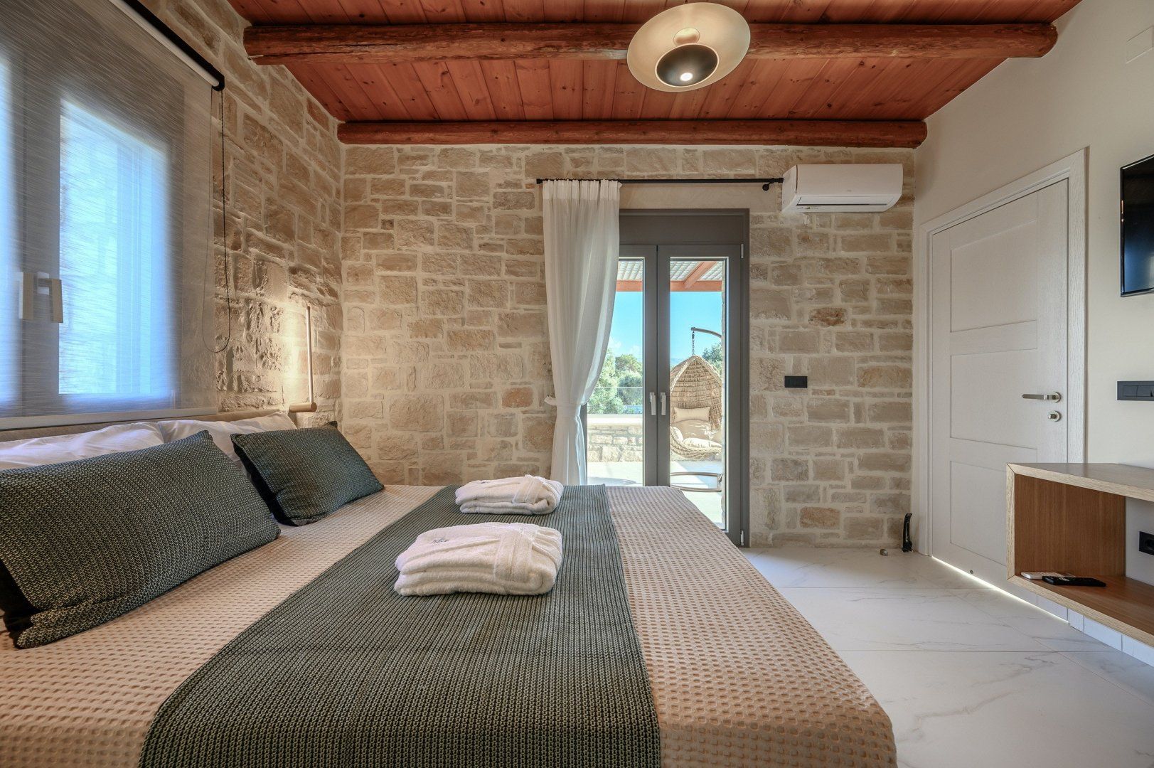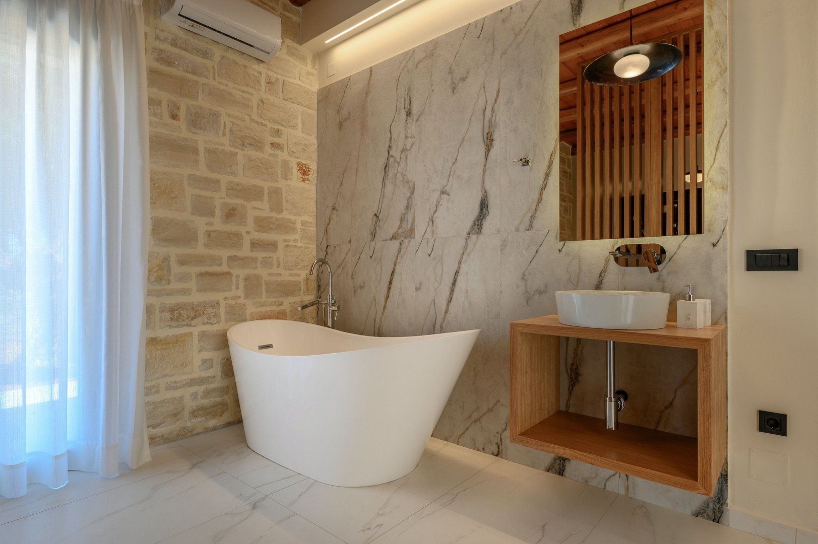 Start each morning with a soak in your freestanding bath – each bedroom has one. Then, sip on a cup of coffee in your swinging egg chair, located on your private balcony, and take in the surrounding views of the rolling hills and lush greenery. Go downstairs into your fully equipped kitchen and cook up some Greek scrambled eggs and tuck in around your stylish dining set. Head outside and rest in the sun on a poolside lounger, or enjoy a lush swim in your private pool. As the evenings roll in, relax in the hot tub while waiting for the stars to join you.