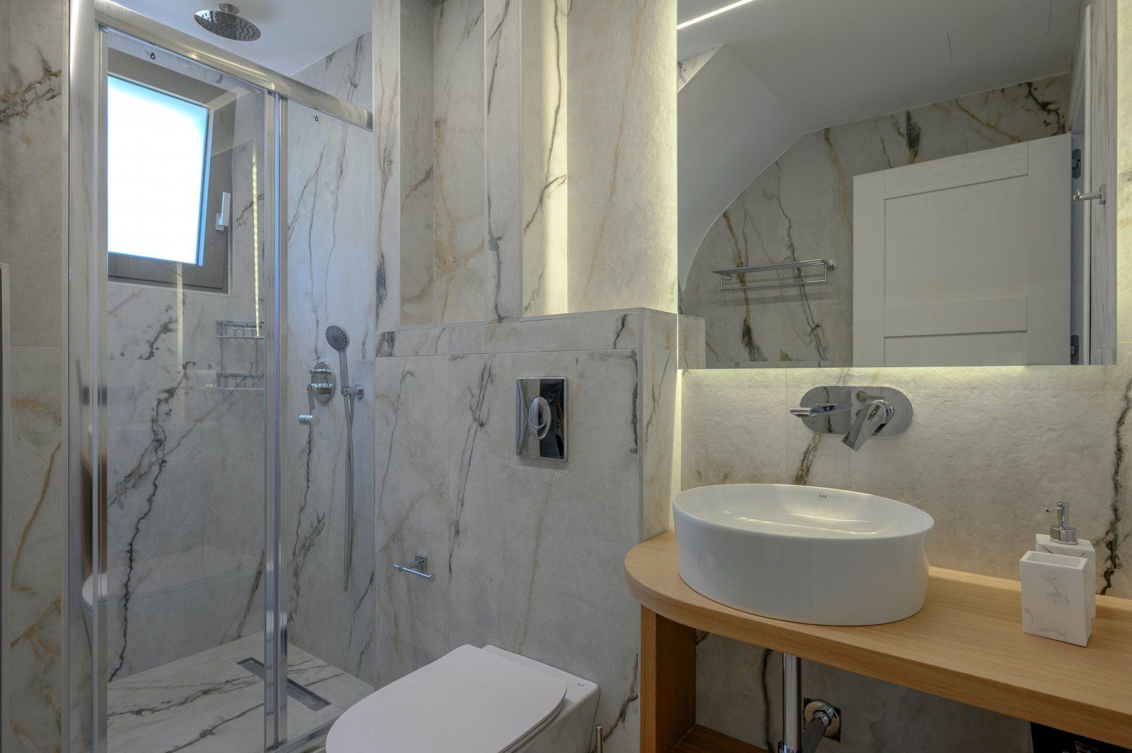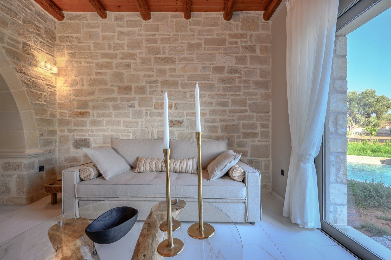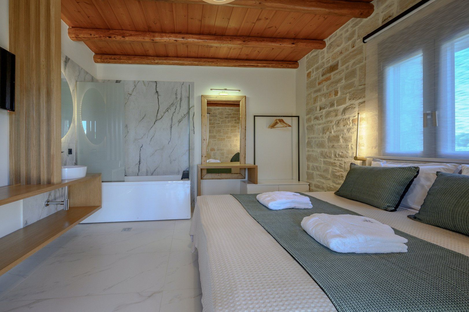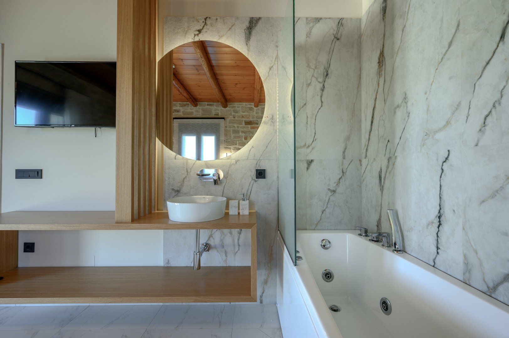 Start each morning with a soak in your freestanding bath – each bedroom has one. Then, sip on a cup of coffee in your swinging egg chair, located on your private balcony, and take in the surrounding views of the rolling hills and lush greenery. Go downstairs into your fully equipped kitchen and cook up some Greek scrambled eggs and tuck in around your stylish dining set. Head outside and rest in the sun on a poolside lounger, or enjoy a lush swim in your private pool. As the evenings roll in, relax in the hot tub while waiting for the stars to join you.