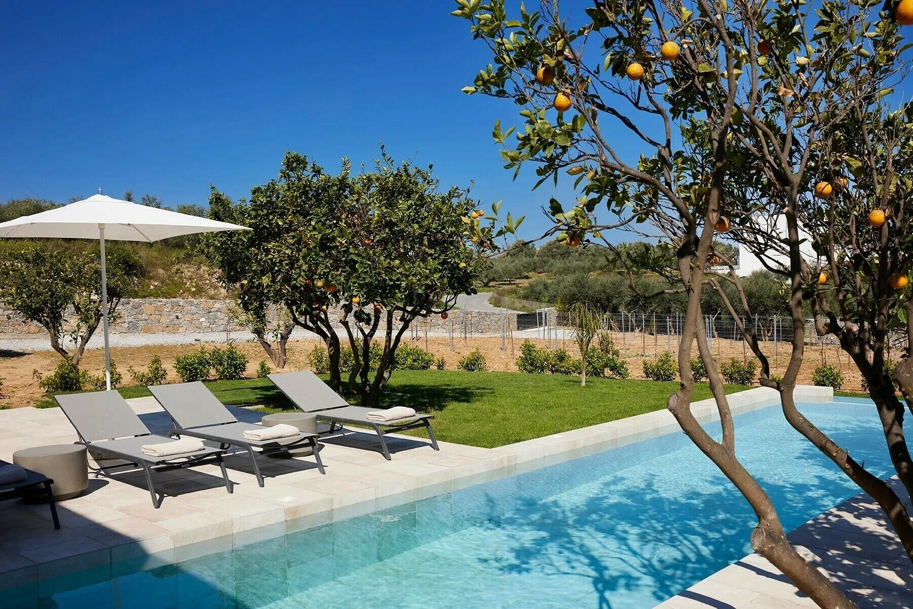 Framed by beautiful countryside views, this home invites you to slow down and embrace the magic of island living. The garden sets the tone for total relaxation with a swimming pool and plenty of space to stretch out. All of the bedrooms feature en-suite bathrooms and there’s a balcony on the upper floor for dreamy sunset drinks. You might not want to leave this private sanctuary, but it’s just a five-minute drive to Geropotamos Beach, while the historic heart of Rethymno is just fifteen-minutes away.