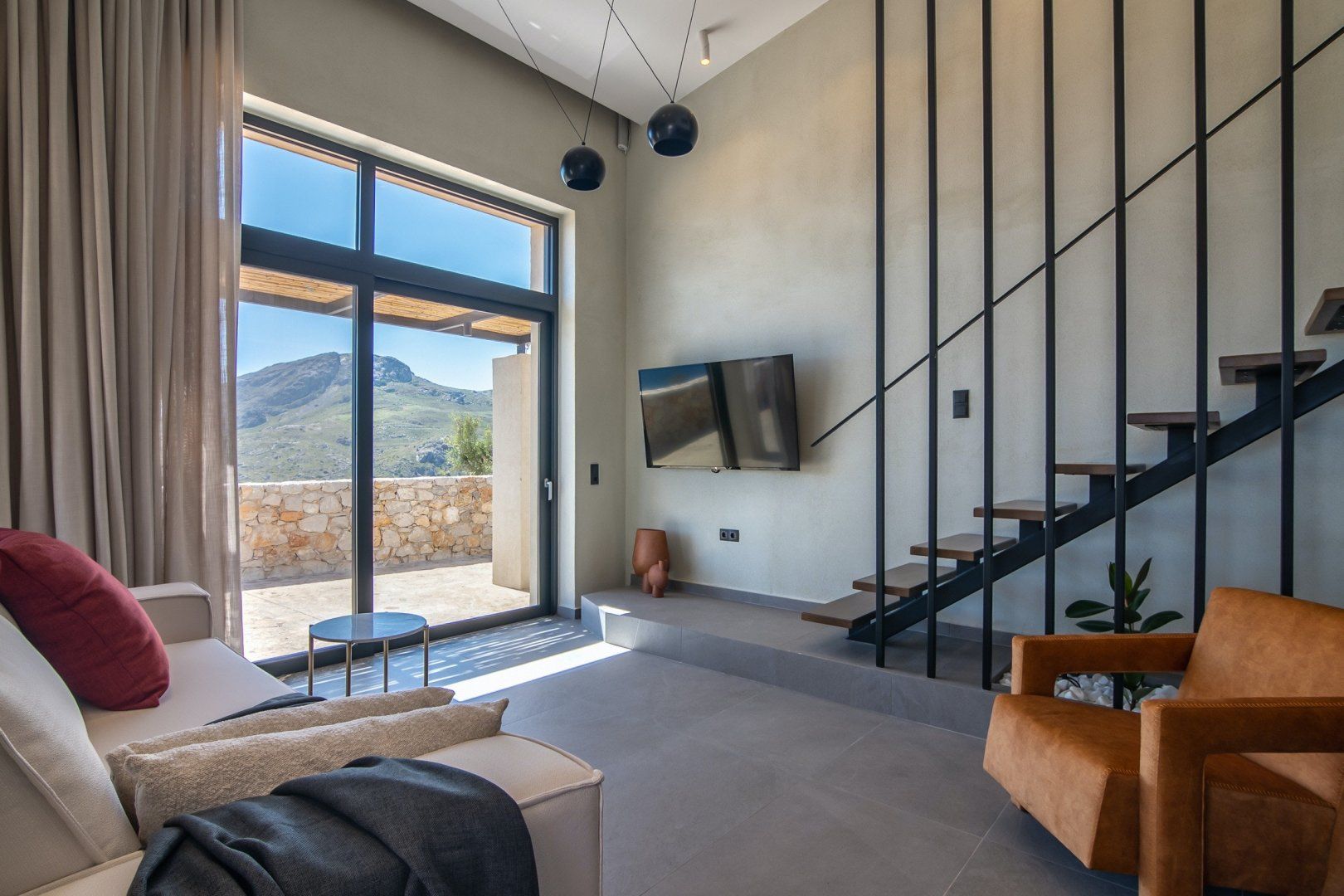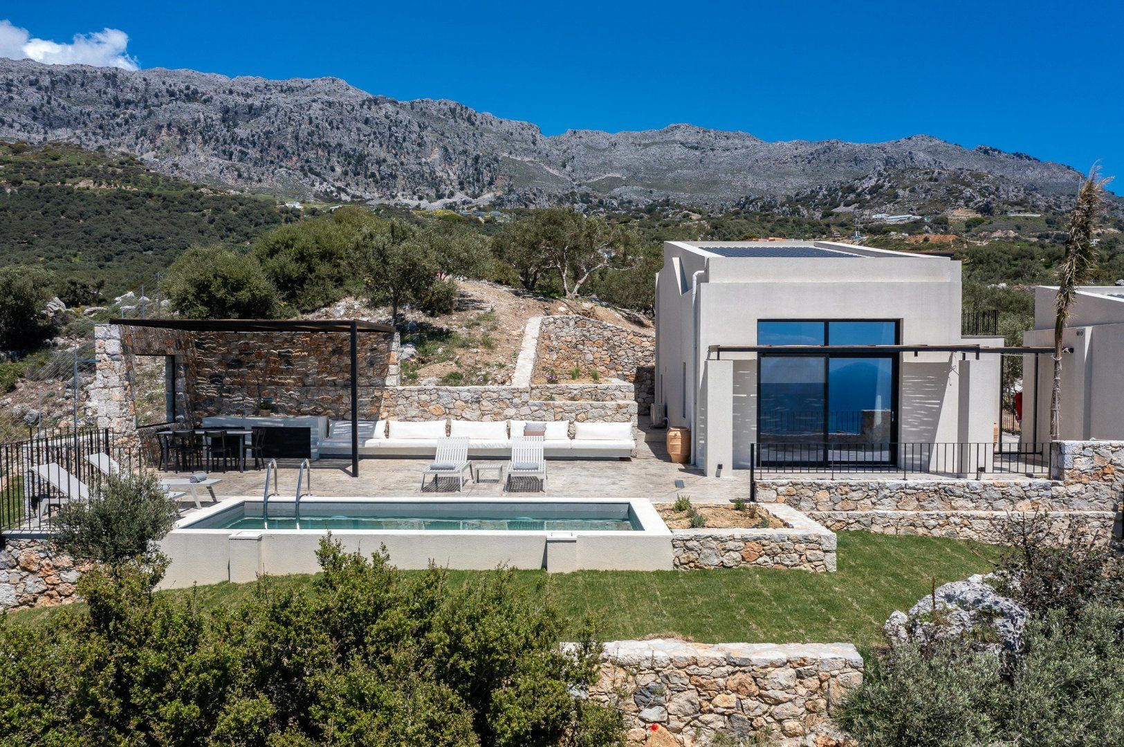Incorporating stone architecture that blends in with the rugged surroundings, the home invites you to lose yourself in the beauty of Crete’s nature and embrace a treacly lifestyle to unwind from the hustle and bustle of daily life.