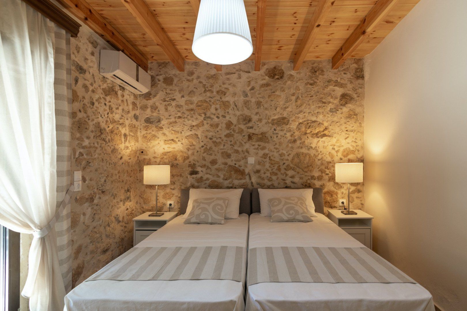 Venturing inside, you’ll feel a sense of tranquillity wash over you. The most beautiful cream rustic stone is the backdrop to all the interiors, wonderfully calming and luxurious. Your windows are dressed with delicate drapes, allowing the morning sun to peek in after a restful night's sleep. Pour yourself a hot cuppa and enjoy a little quiet time on the chaise sofa before the rest of your family stir.