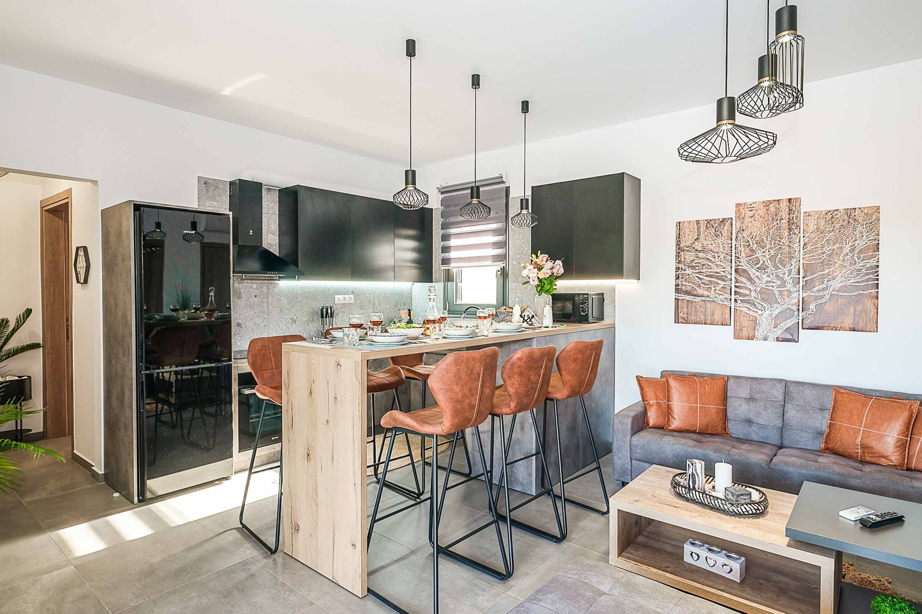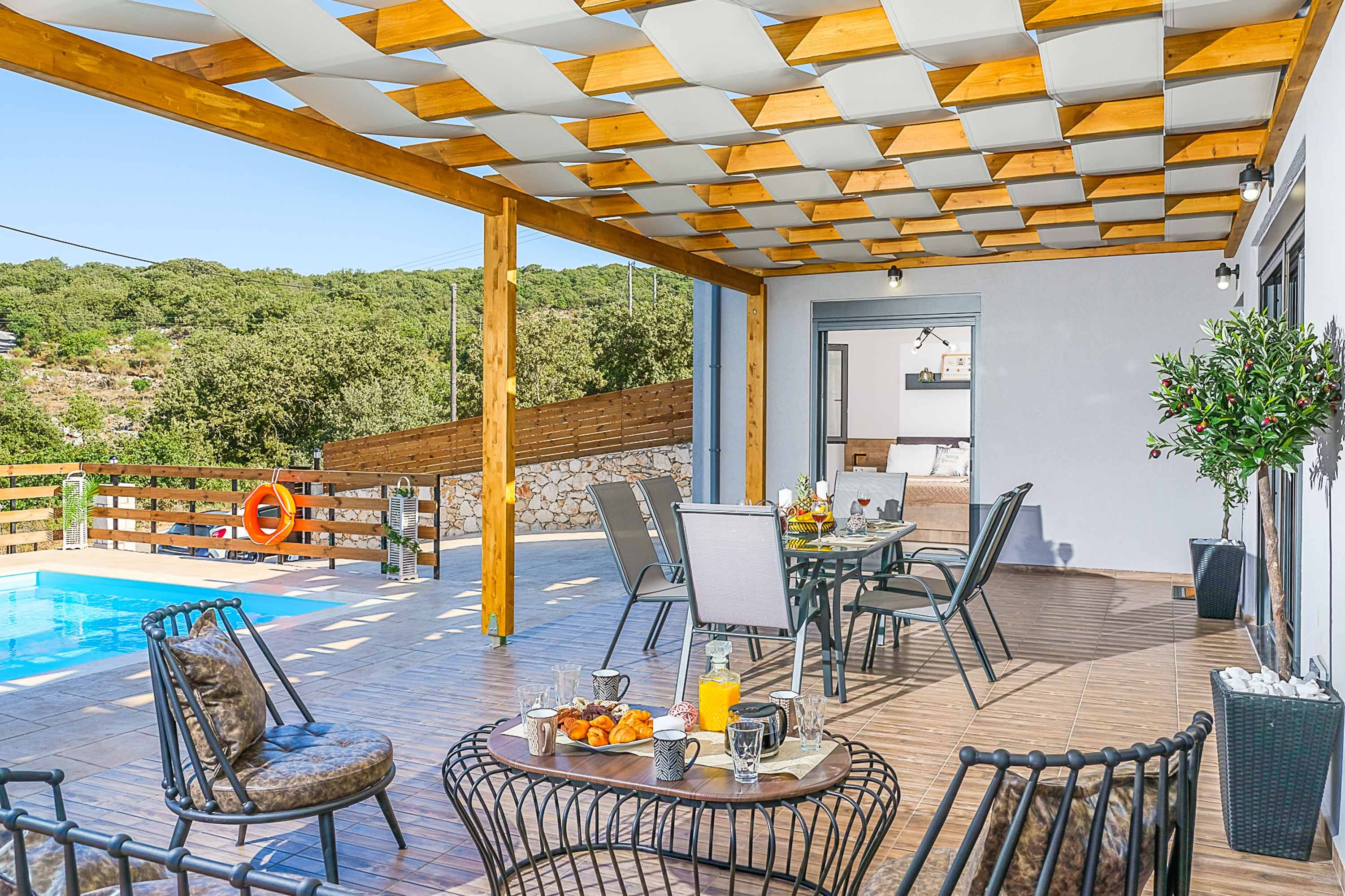 Nestled in the beautiful countryside outside the village of Armenoi, this family-size villa is a quiet base where you can unwind and make new memories together. The biggest draw is, of course, your private pool deck, complete with sun loungers and a kid's playground area. You've also got an alfresco dining area equipped with a brick-built barbecue for those laid-back meals in the summer evenings. Location-wise, you'll find local tavernas and a mini-market in the village, while the historic town of Rethymnon lies just a short drive away for when you're in the mood for a beach trip or looking to dine out down by the coast.