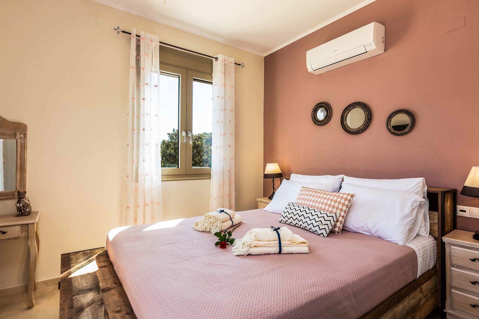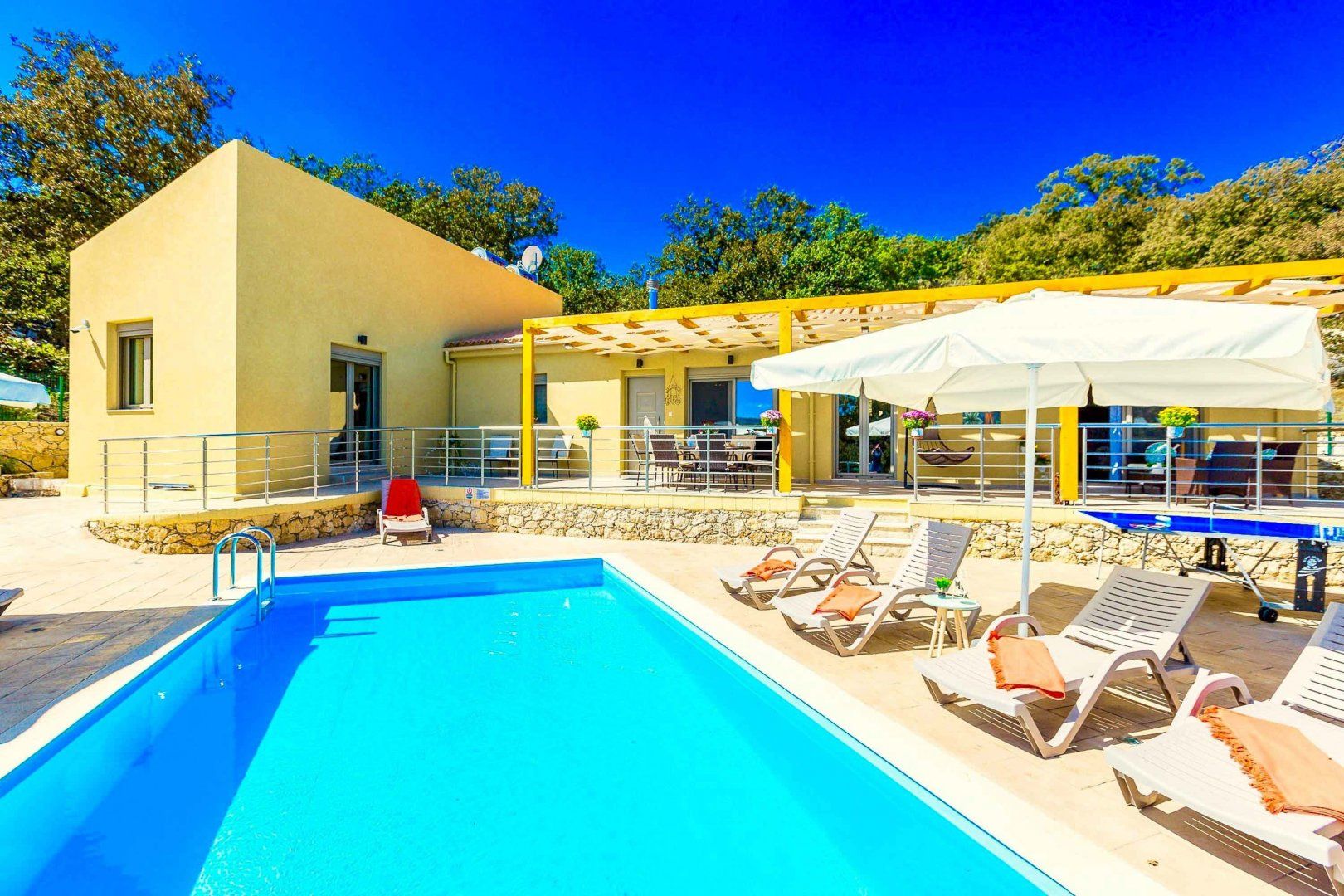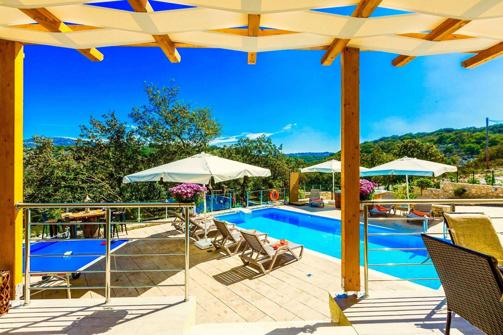 Parents, you’ll love this villa. There’s a playground for little ones to tire themselves out in – as well as the pool – and there are two separate lounges so you can dedicate one to toys and kids’ movies, and keep one for yourselves. Bright and cheerful, this villa boasts charming touches like a vegetable patch that you’re welcome to pick from. It’s out in the Cretan countryside so it’s peaceful and pretty, but you’ll need a car to get around. You can drive to the sandy beaches and hustle and bustle of Rethymnon in ten minutes though, so you’re not completely out in the sticks.
