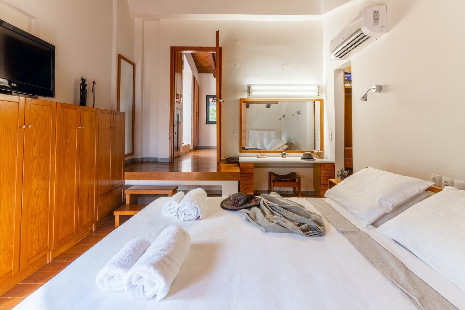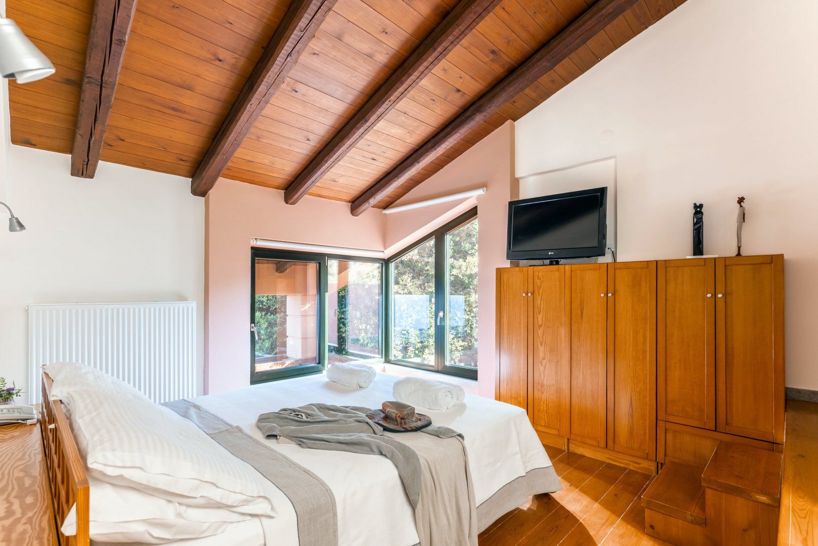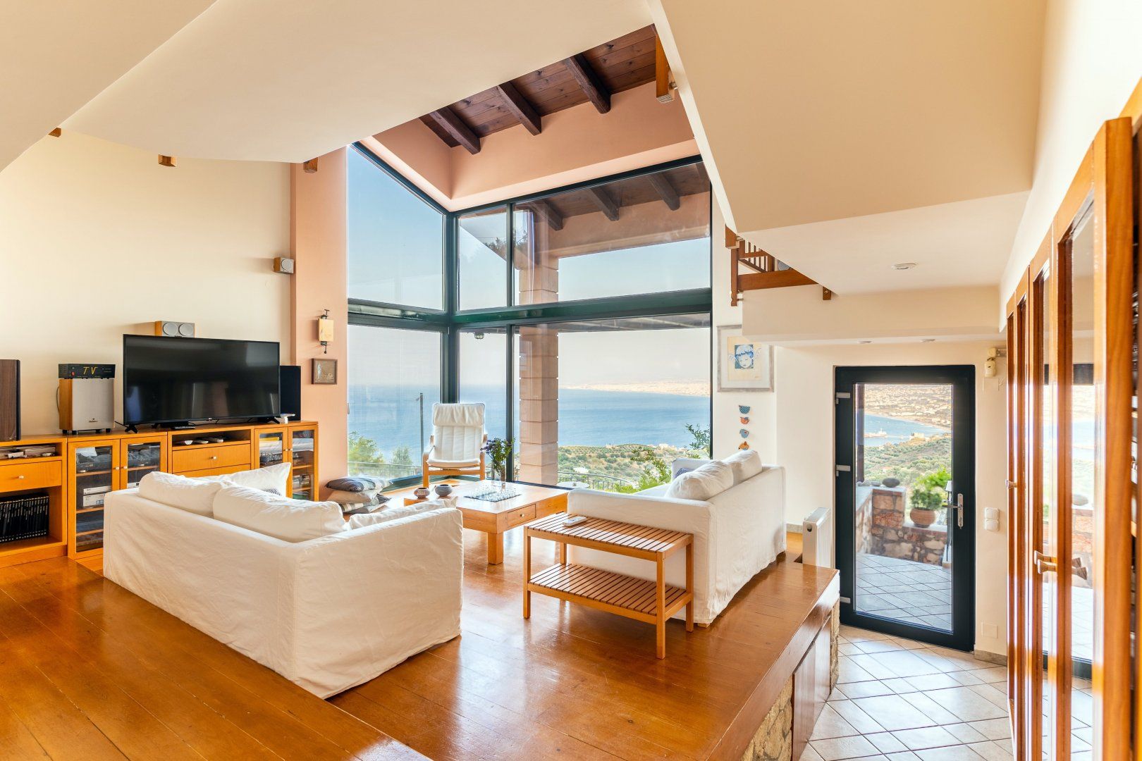 It’s all about peace and quiet at this villa on Crete’s north coast. The little village of Rodia, with its handful of local tavernas, is just 2km away, while the larger beach resort of Ammoudara is 6km away. Those seeking sleek modernism should look elsewhere as there’s a rustic charm to the interiors of this place. The double living room has a wall of glass letting in a beautiful view of the bay. The view continues from outdoor terraces and patio lounges and sunny days can be properly embraced thanks to a full outdoor kitchen with a stone-built barbecue. The cherry on top is the private pool overlooking the sea.