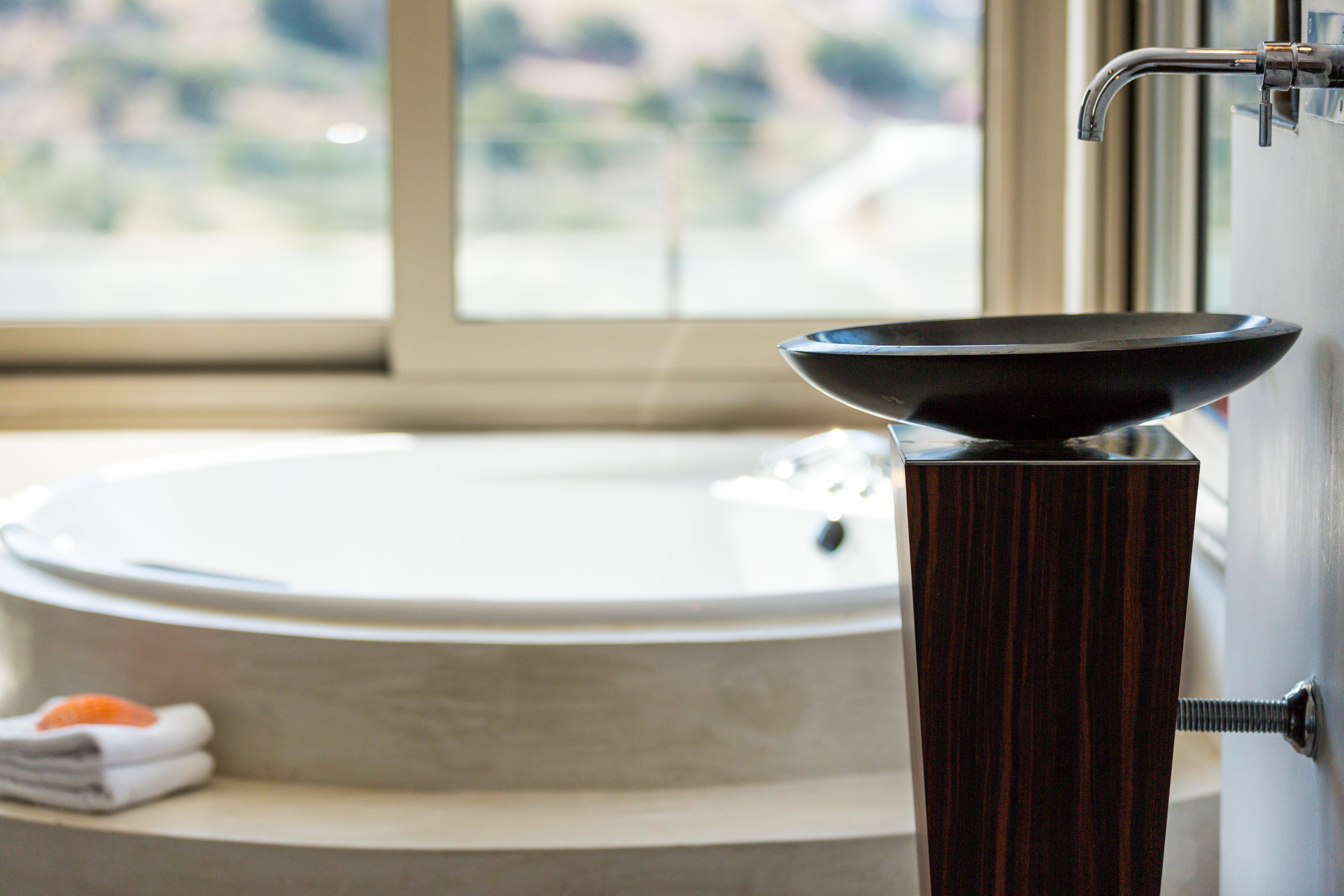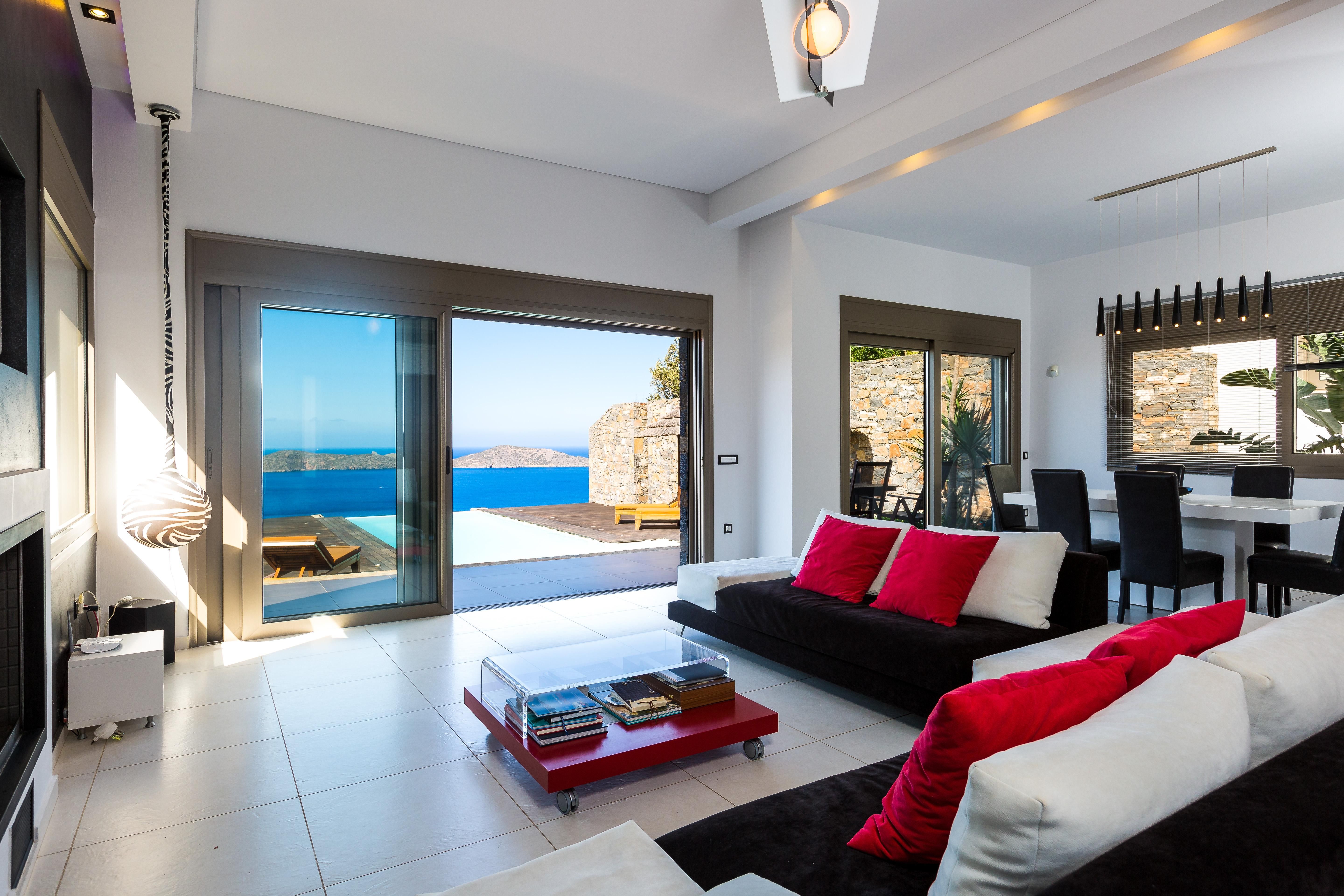 We particularly love the infinity pool overlooking Mirabello Bay, complete with sun lounge chairs and a decked terrace. Top up your tan poolside, before cooling off with a refreshing dip for lunch. Gather the group together for an alfresco meal with traditional mezze platters being passed around the outdoor dining table. If a cat nap is on the cards, the comfortable bedrooms ensure a restful sleep, and you'll wake up to stunning ocean views, thanks to the sleek, retracting glass.