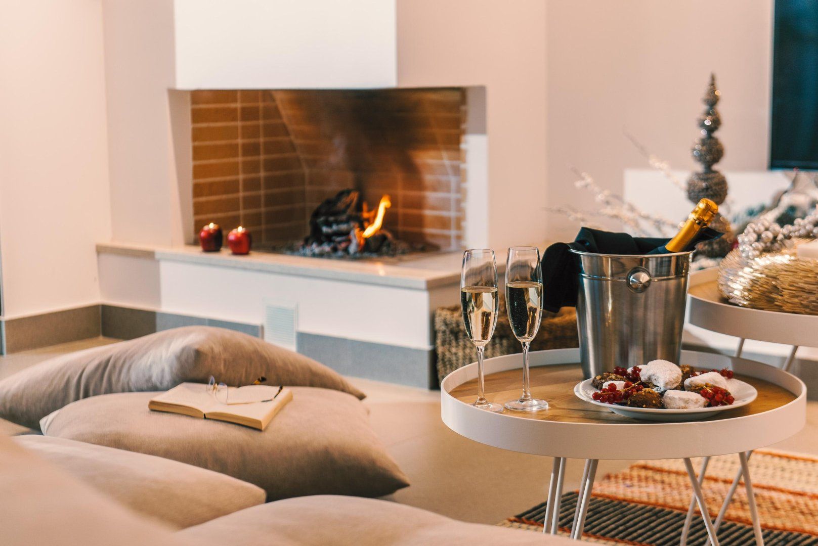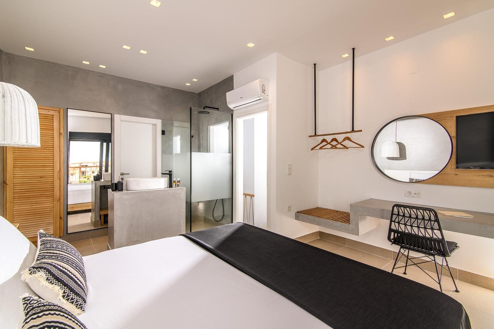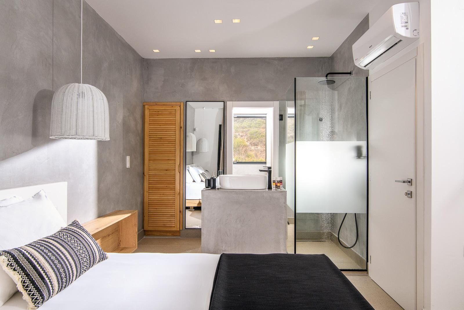 Interior decor sticks to a muted palette of white and grey with lots of natural wood and wicker throughout, which helps you feel connected to the spectacular landscapes on your doorstep. A particular highlight is an open-plan living space with its sleek kitchen, stylish dining area, and comfy low-slung sofa with pool views.