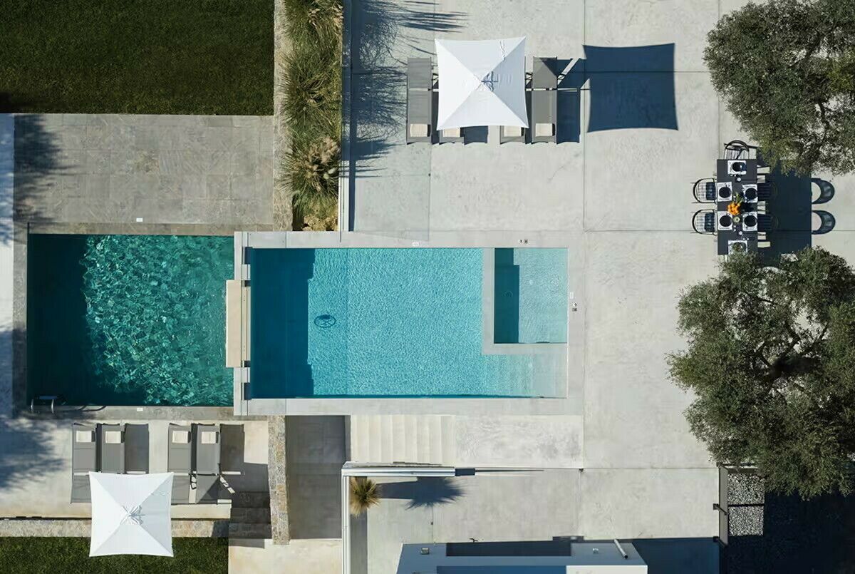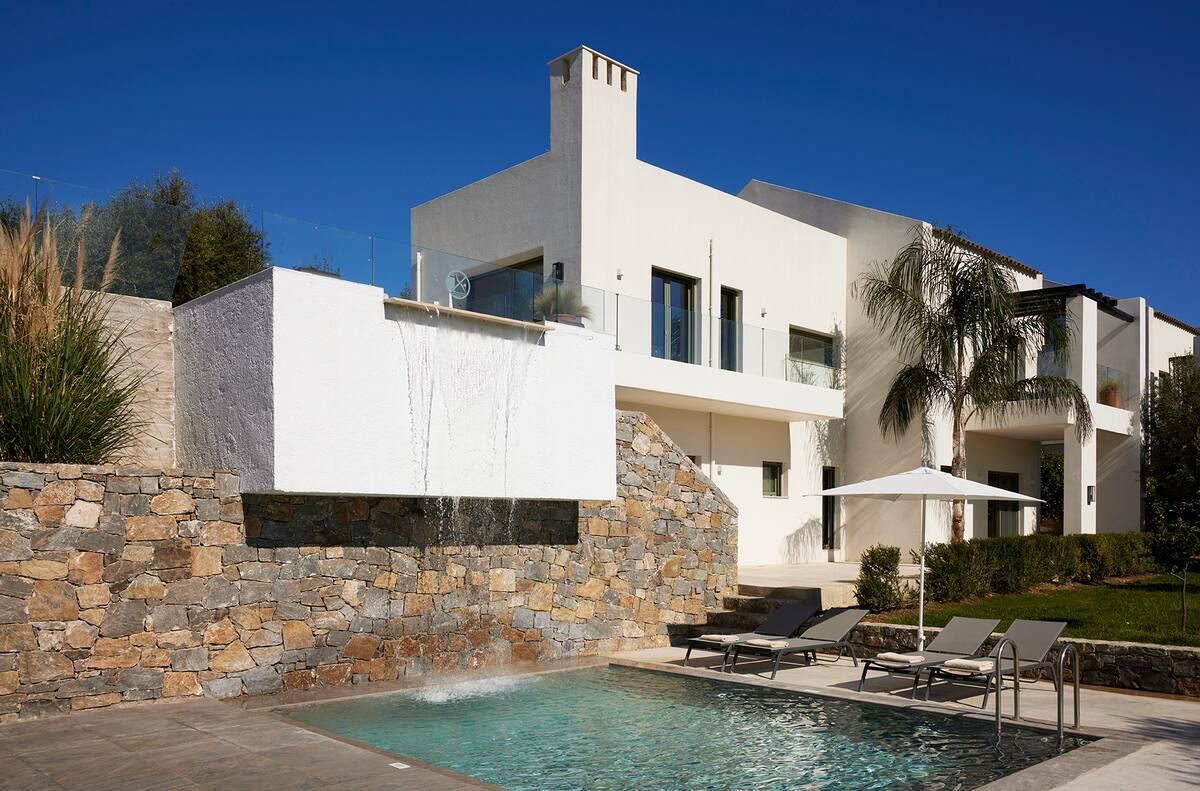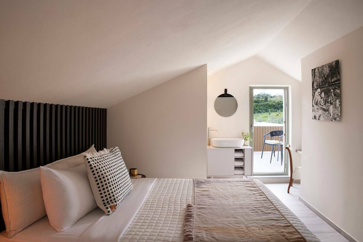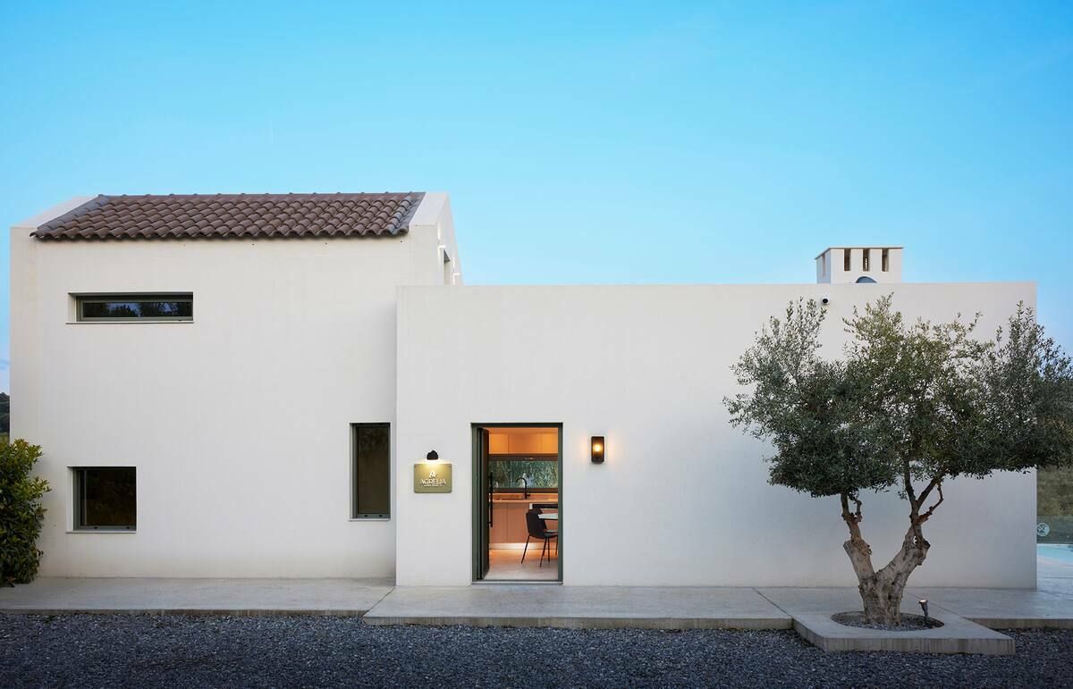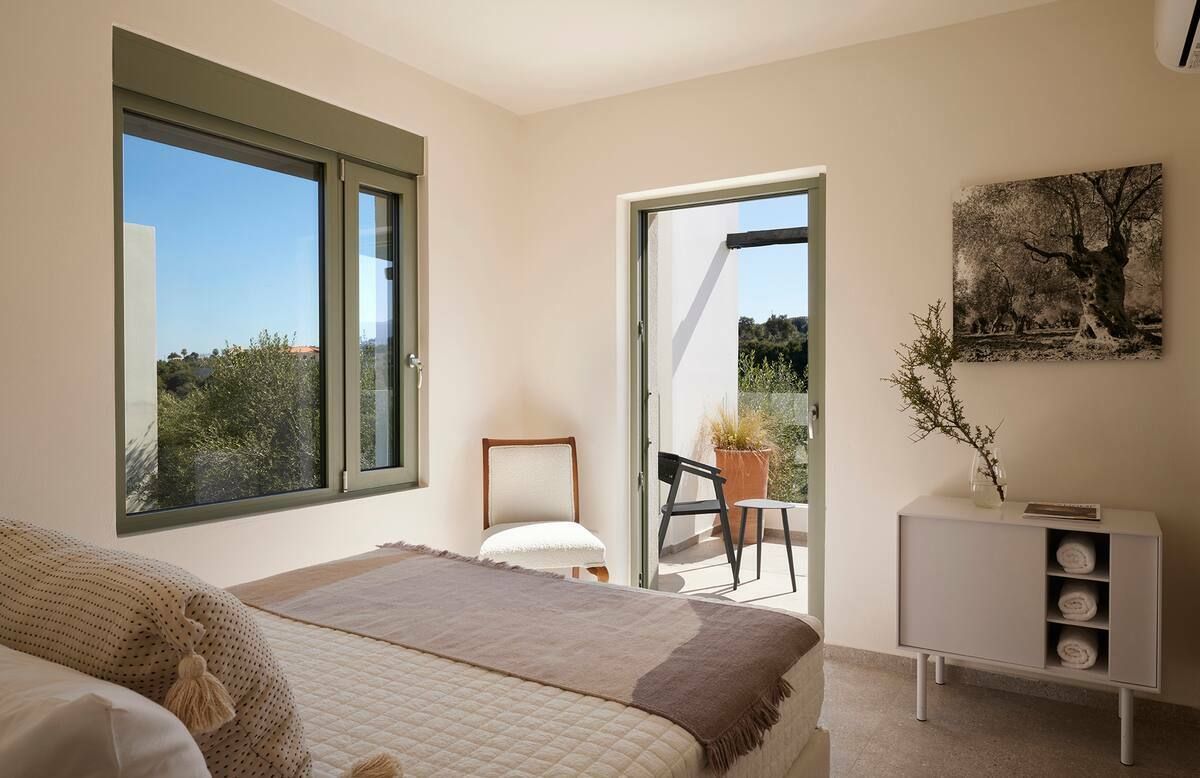 This elegant home sits within a complex of three independent villas, surrounded by a vast olive grove. It's a wonderful choice for extended families or groups of friends with plenty of space for everyone. Inside, the decor is calm and welcoming with a comfortable living room that opens onto the garden and generous-sized bedrooms. We're particularly fond of the loft room with its own freestanding bathtub and private balcony. The exteriors are where this villa truly shines, however. In addition to the two infinity pools, located on different levels and connected by a waterfall, there is an outdoor kitchen for whipping up snacks and meals. Alternatively, if you choose to head out, then you will find a number of restaurants within walking distance.
