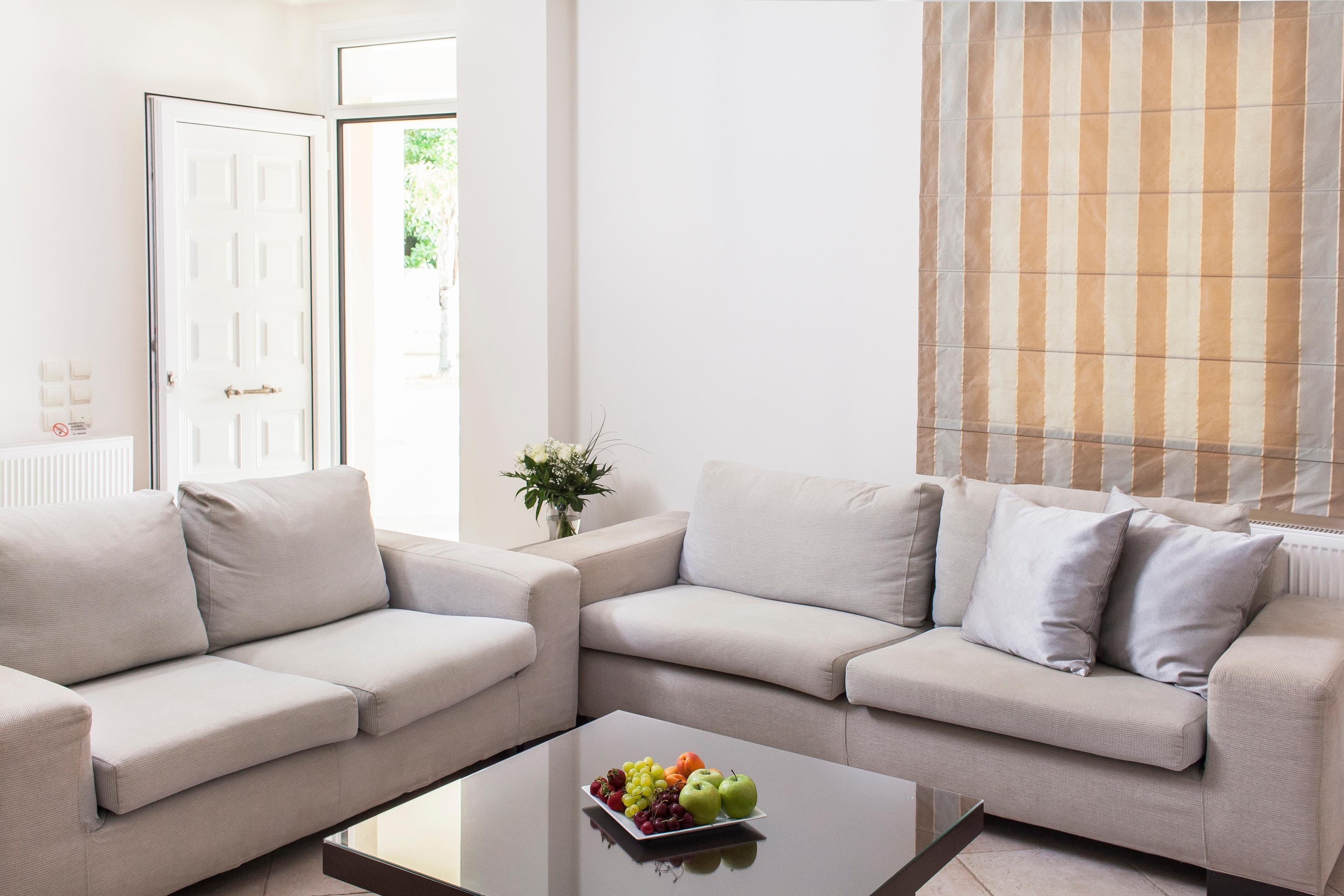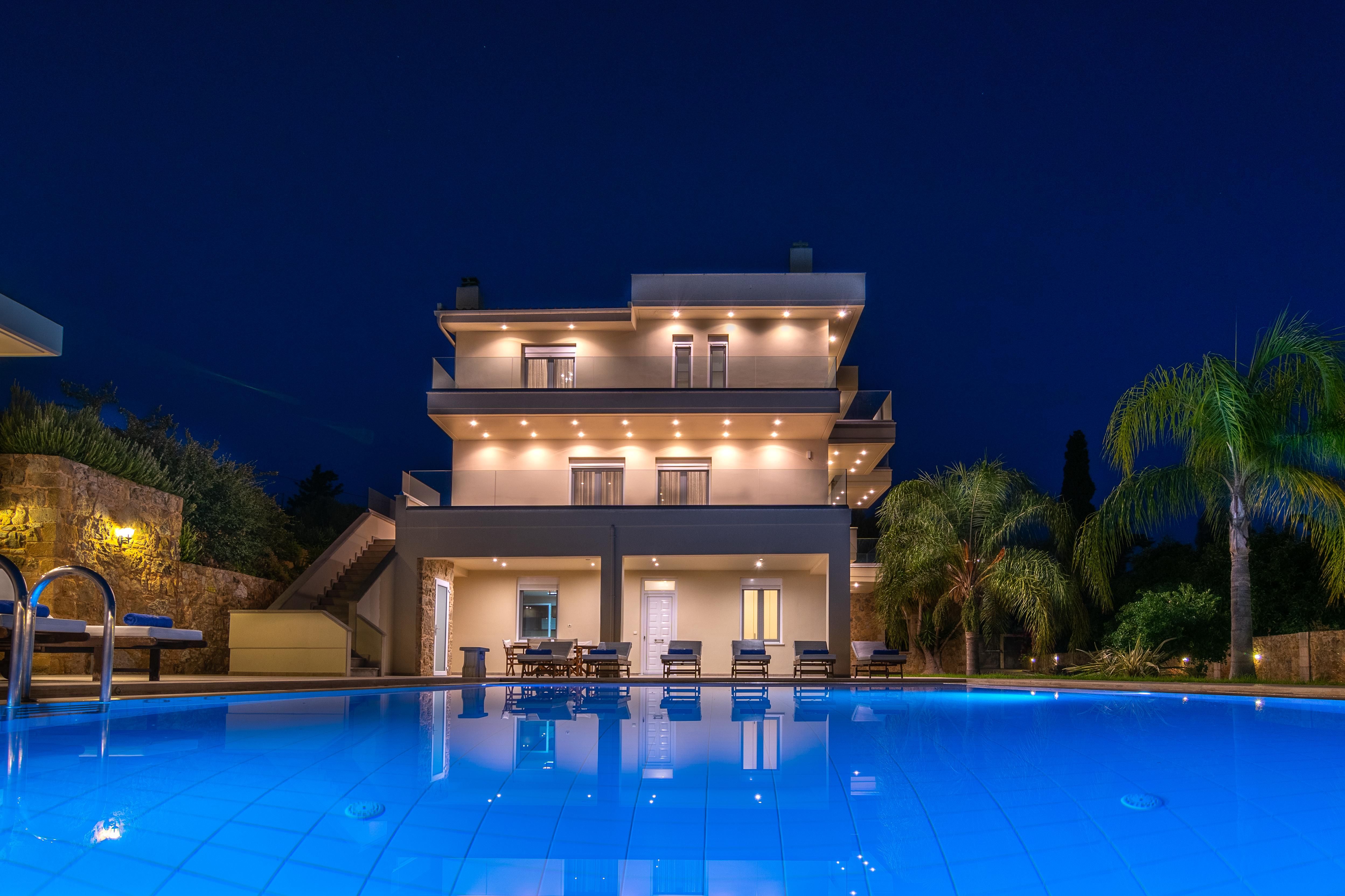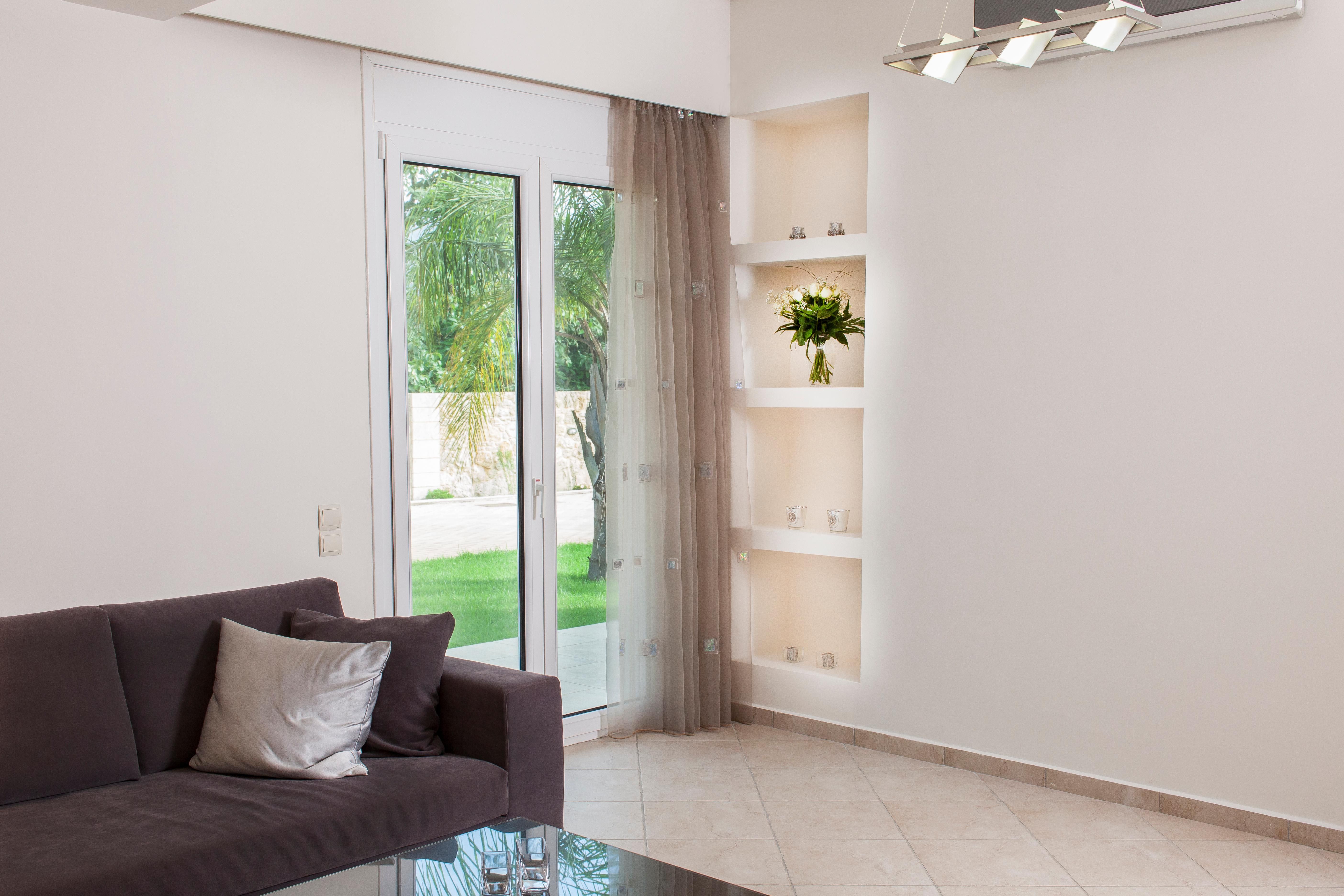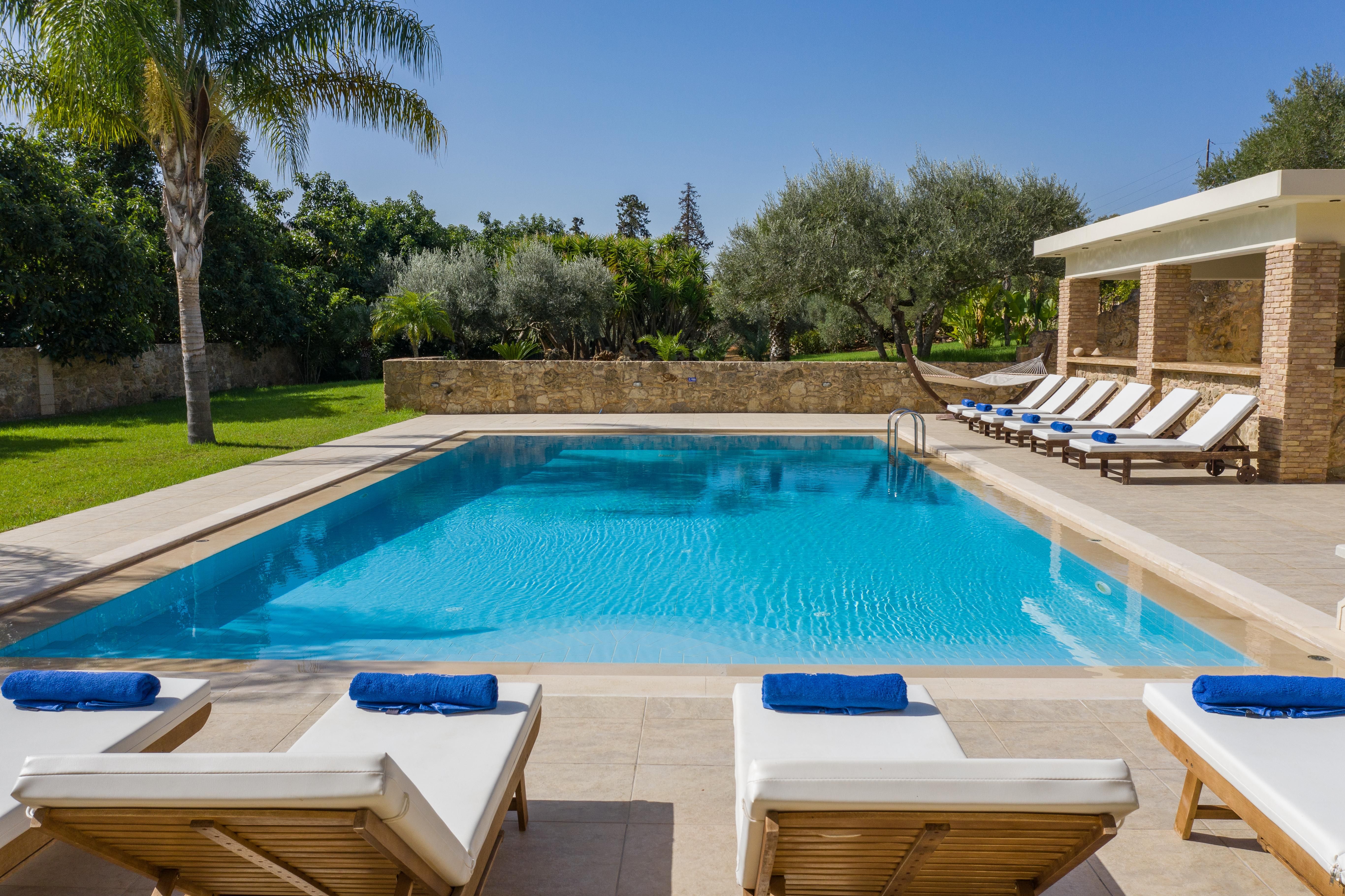 Refined and exclusive, this large home is tucked away on the outskirts of Souda, a few minutes' drive from Chania. And while it's convenient for the beach, restaurants and nearby shops, you could easily convince yourself you're in a more secluded, rural location thanks to its green scenery. With a huge walled garden, where you'll find a gorgeous pool, cypress trees and olives, it's your own slice of paradise.