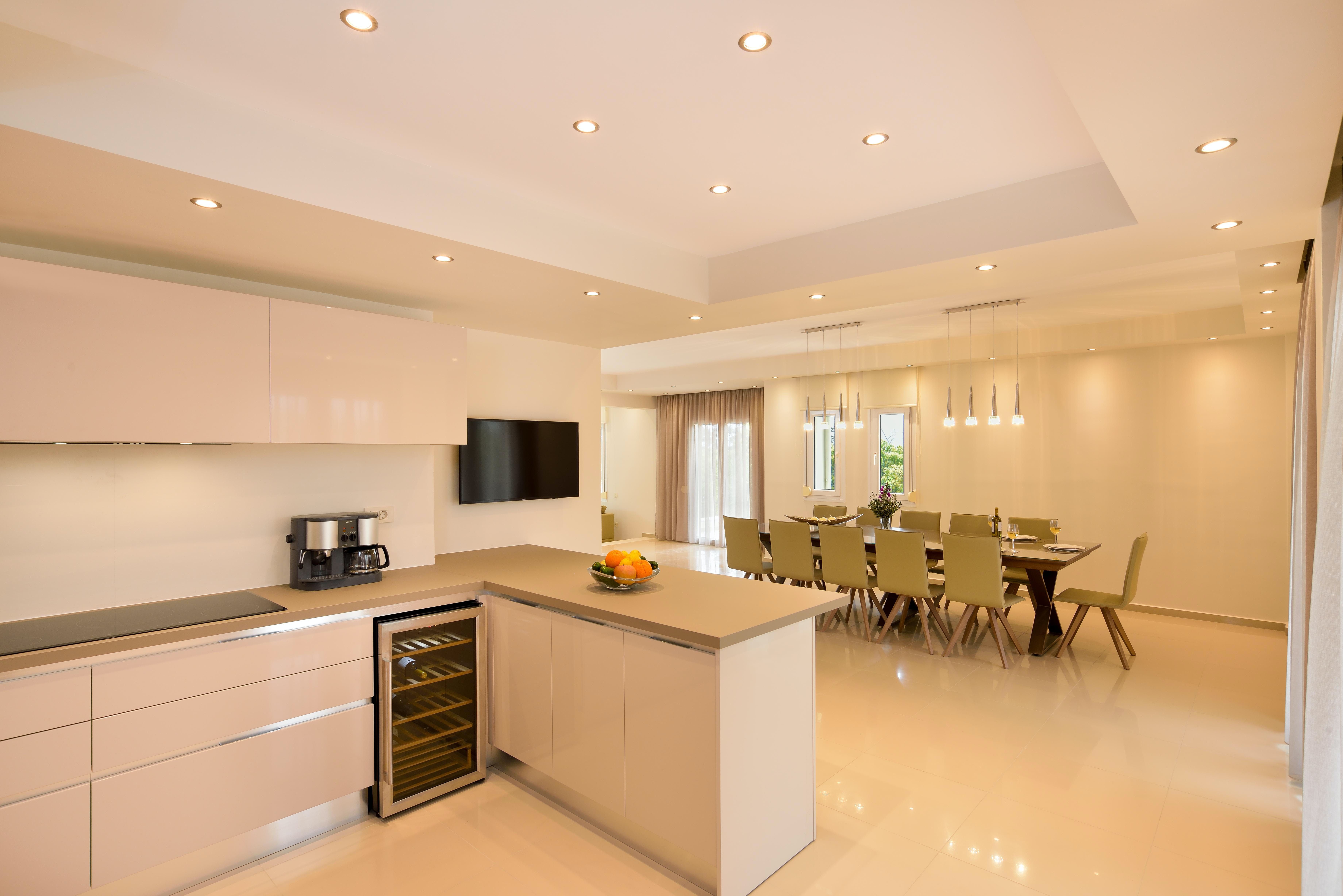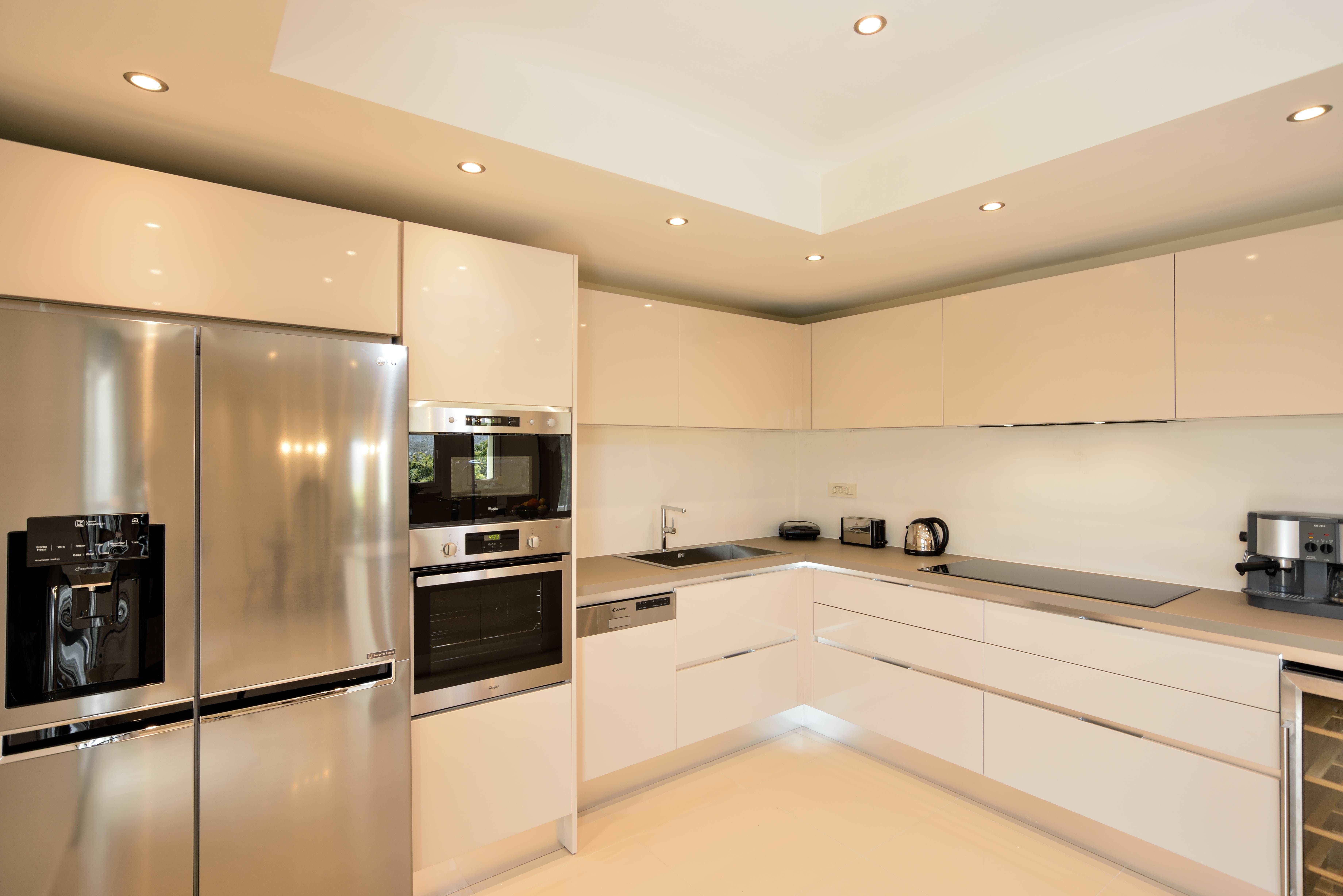 Inside, there's flexible accommodation thanks to a second living room and kitchen, while the main space is contemporary, fresh and minimal. Whites and creams make the place feel cool and calm, and there's a glossy, new sheen to everything. We love the high-tech kitchen, with its wine fridge, ice machine and every other gadget you can think of. And while whipping up a meal in here is a real pleasure, there's also a barbecue in the summer kitchen by the pool. Bedrooms and bathrooms are plentiful and countless glass-enclosed balconies mean everyone gets a great view. We particularly love the Jacuzzi bathtub, where you can really relax in peace and quiet.