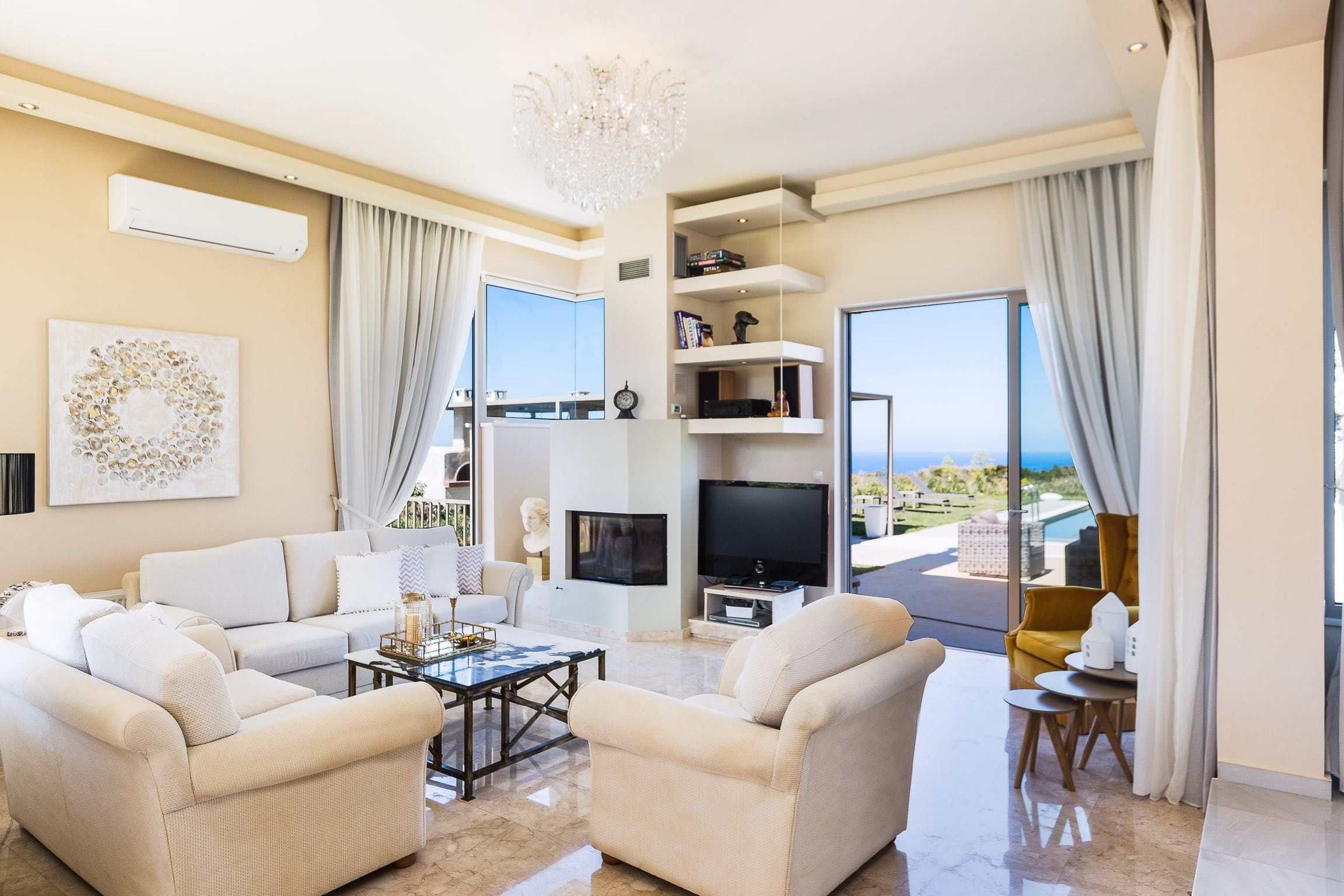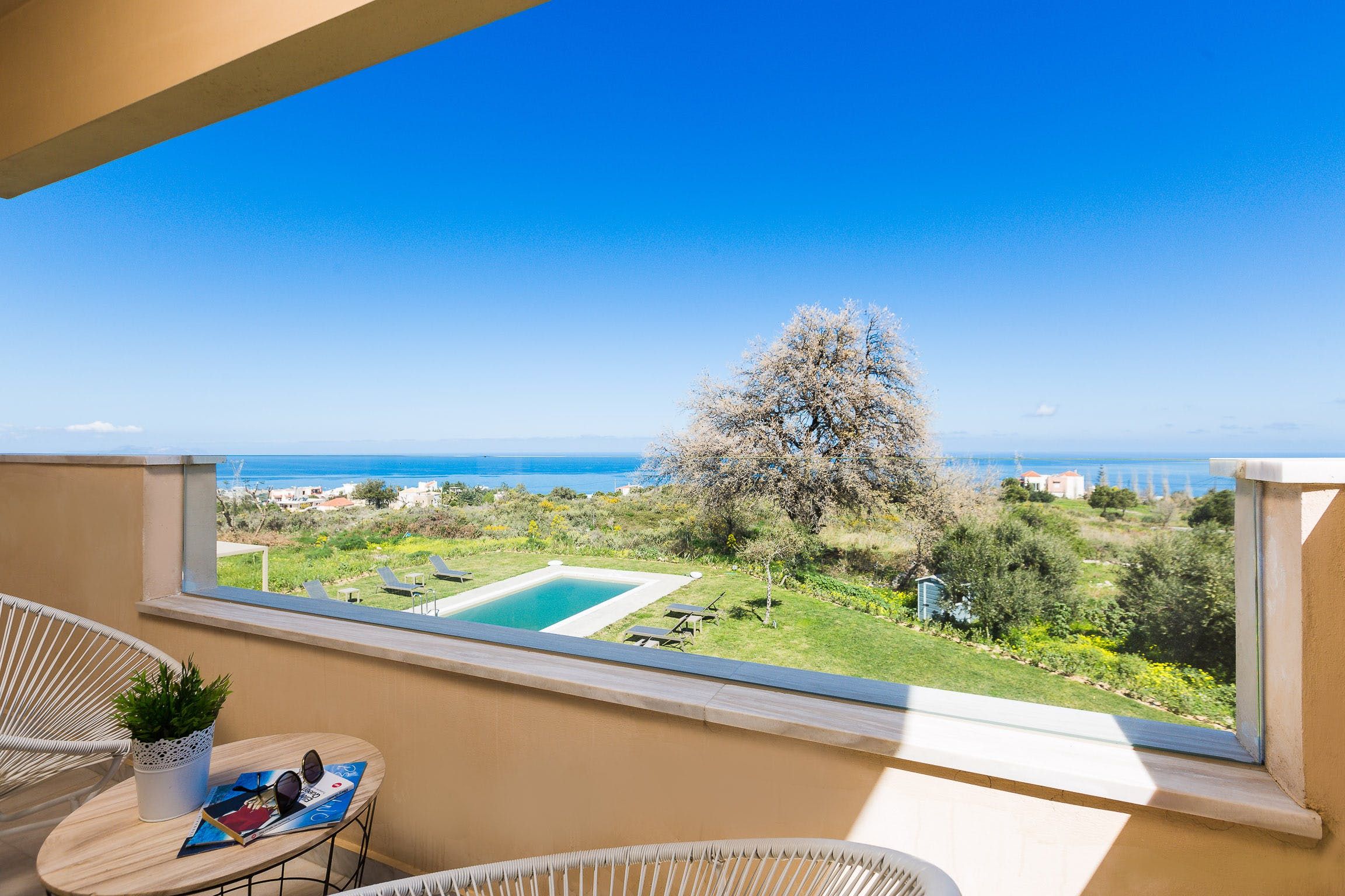 Not only does this hilltop villa close to the northern coastline of Crete gaze out over the deep azure Cretan sea, but you can also spot the city of Rethymno and its medieval citadel while standing in the garden.