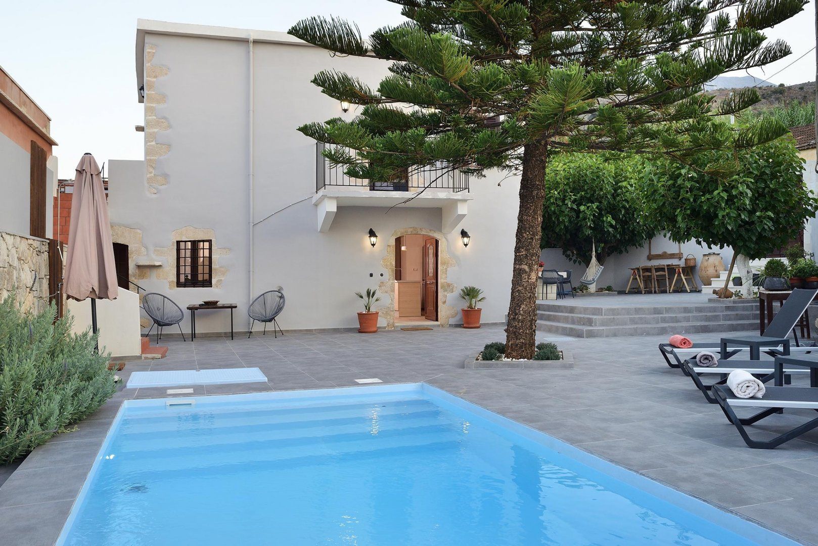 With a glimmering pool, pretty patio and a roof terrace overlooking the hills, this secluded villa embodies relaxed living. Stretch out on the lounge chairs with a glass of wine and take a breather, basking in the fresh air and peaceful surroundings. Feeling peckish? Throw something tasty on the barbecue and dine alfresco, then jump in the pool for a midnight dip under the stars. We love the interiors here, too – exposed stone, squishy seating and arched doorways create a cosy, rustic atmosphere. The house dates back to the 1890s, so you'll find plenty of character inside and out. Whether you're snoozing in the beds, rustling up breakfast in the kitchen or watching something entertaining on the telly, you'll be able to switch off and unwind with ease.