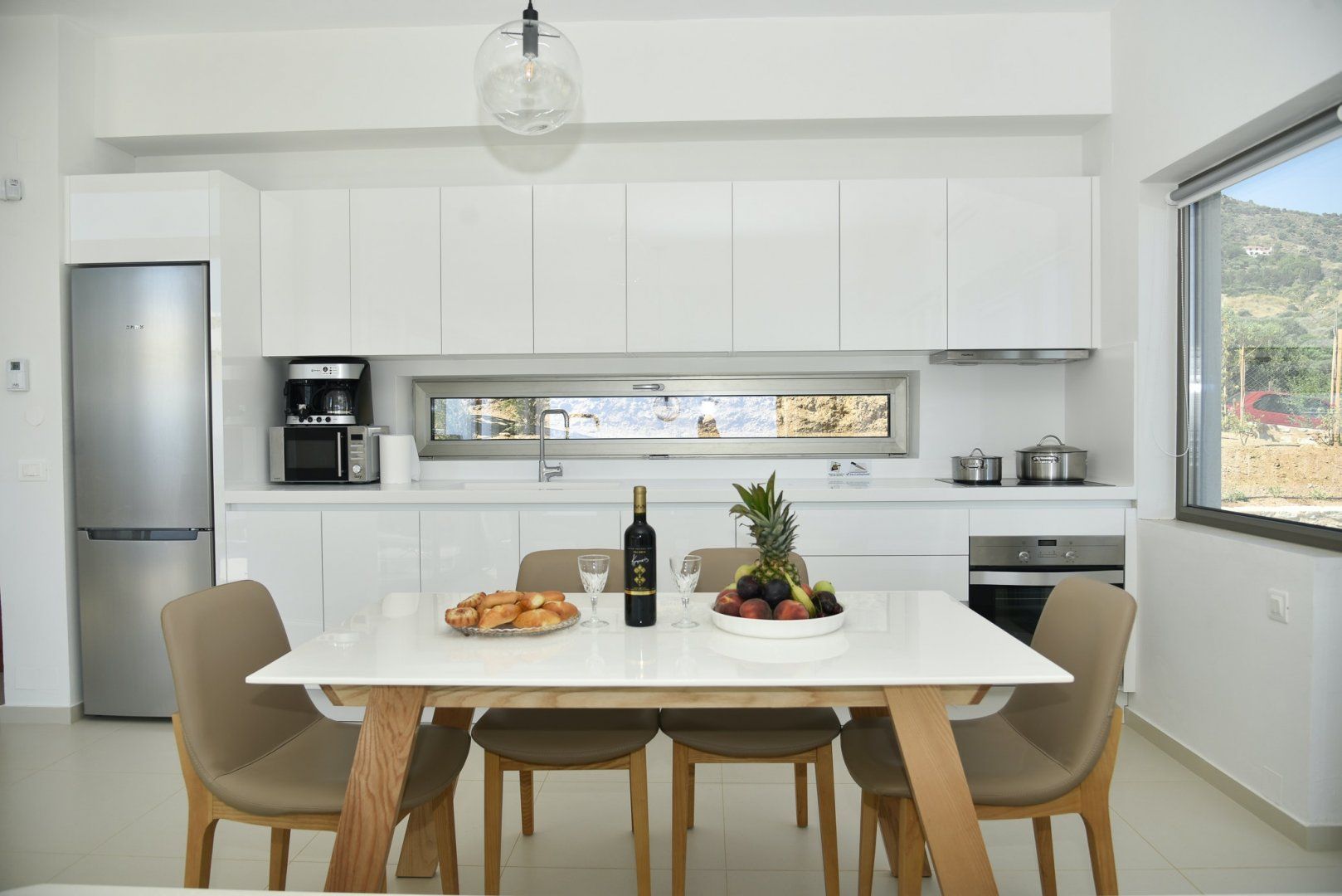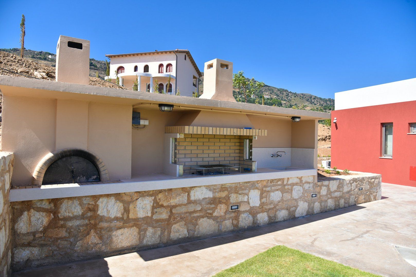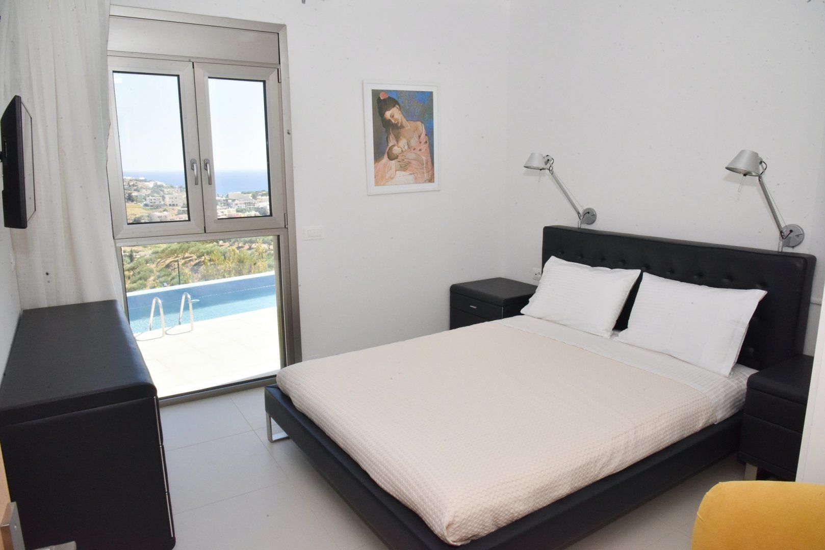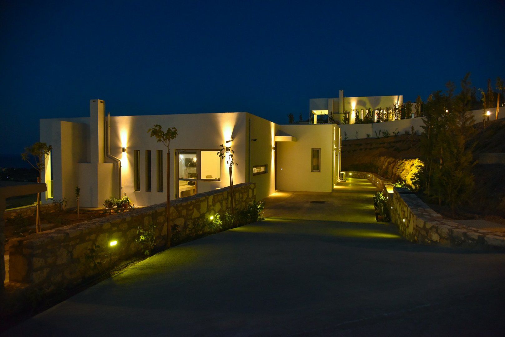 These two villas are rented together so are perfect for a group getaway. Each one sleeps six and has its own private pool – you’ll have your own space when you want it, but will be just next door to each other. Children are well catered for here with a poolside play area at each villa and the sandy beach of Agia Pelagia within easy walking distance. Thanks to its position and elevation, there are great sea views from the terrace and you’ll have a front row seat to watch the sun set over the water.