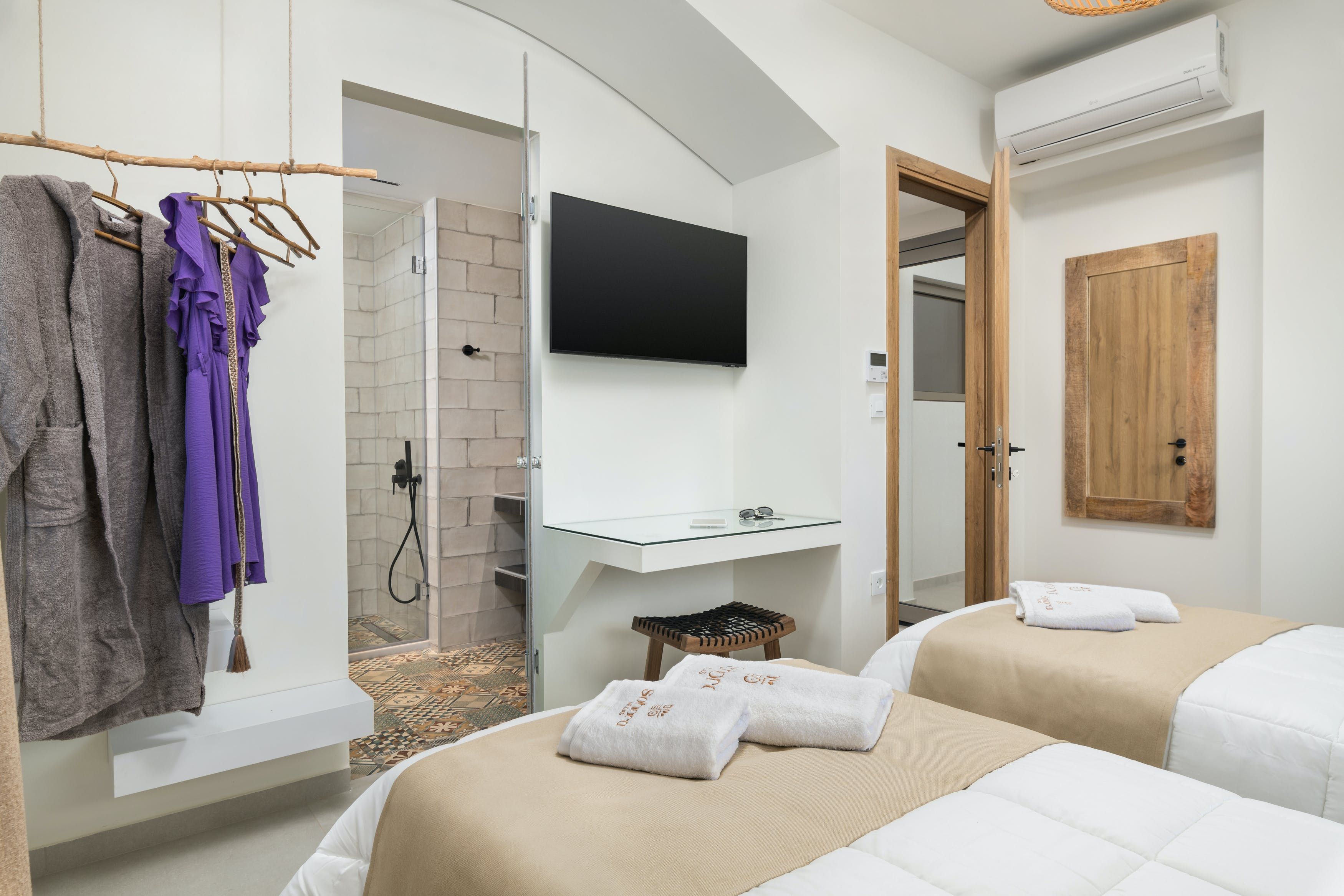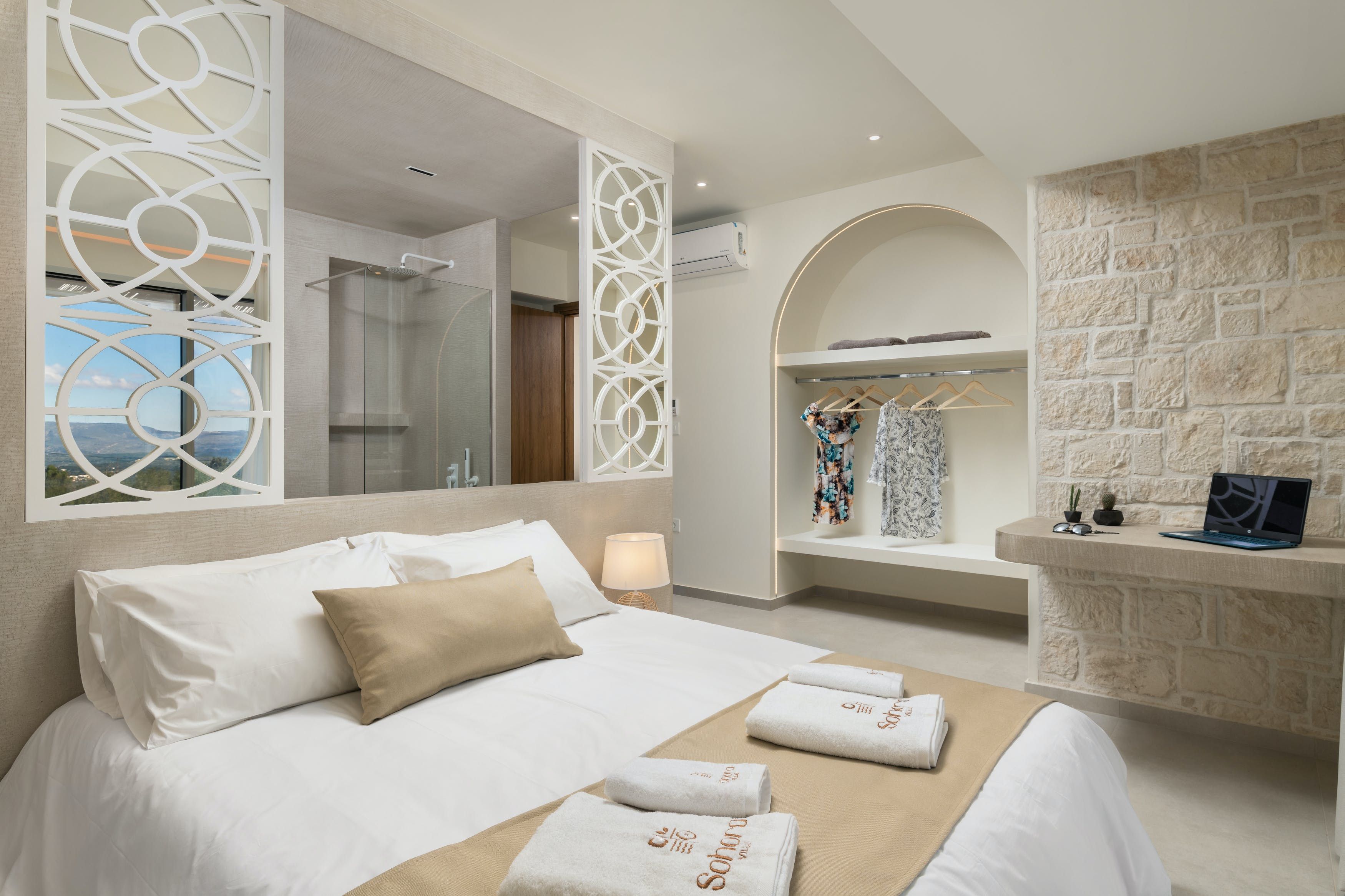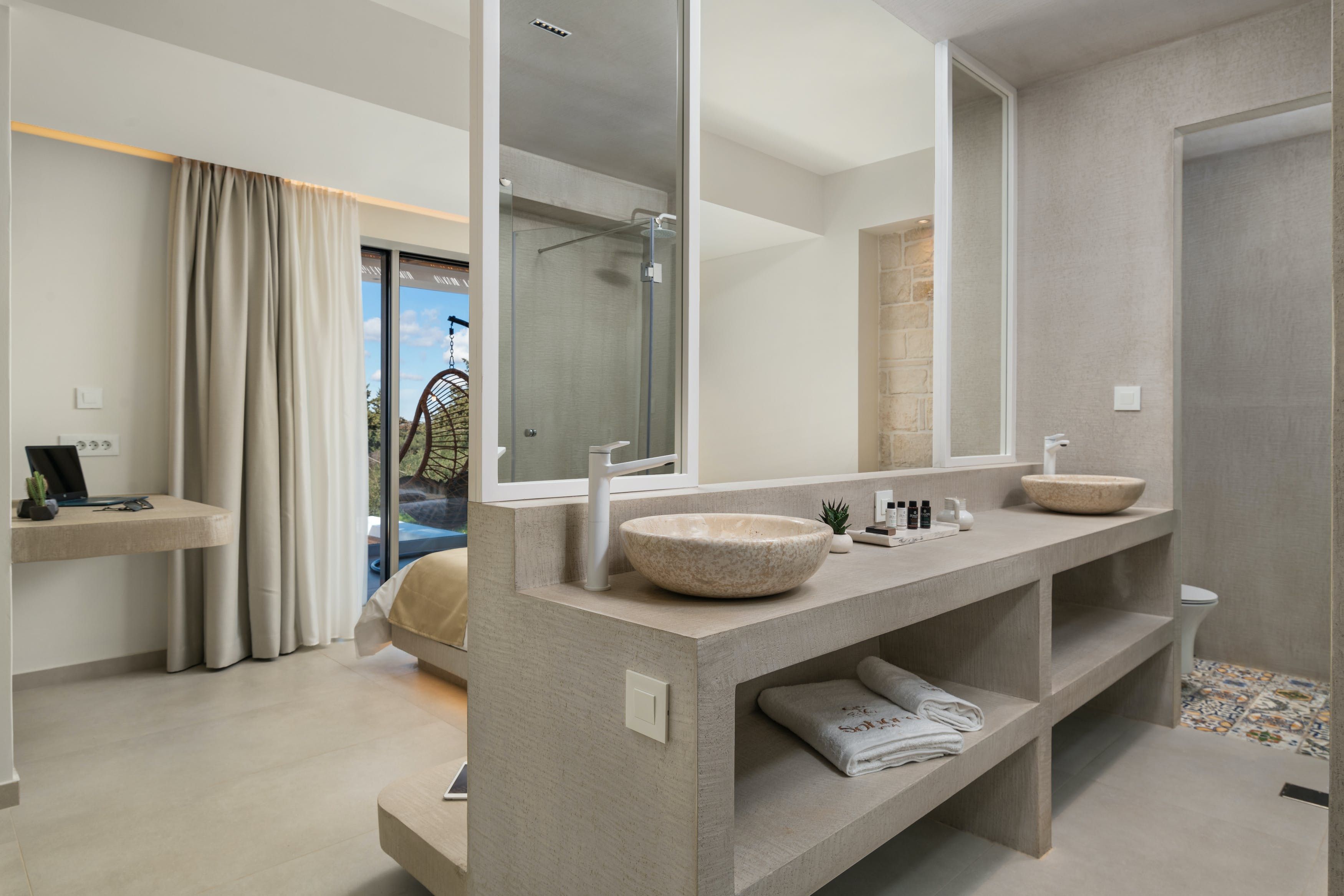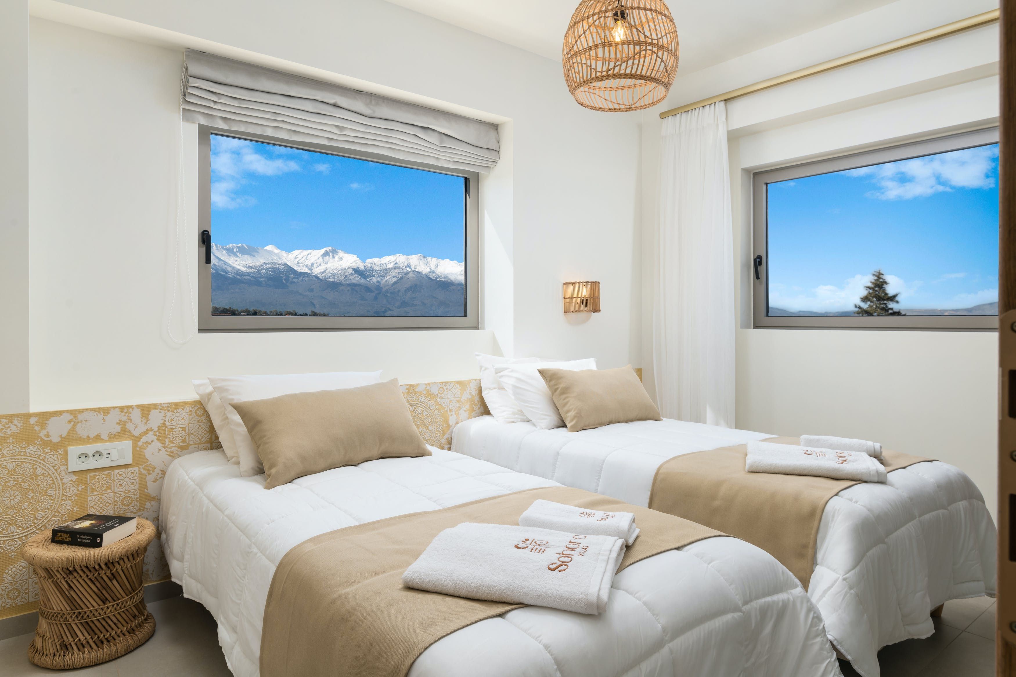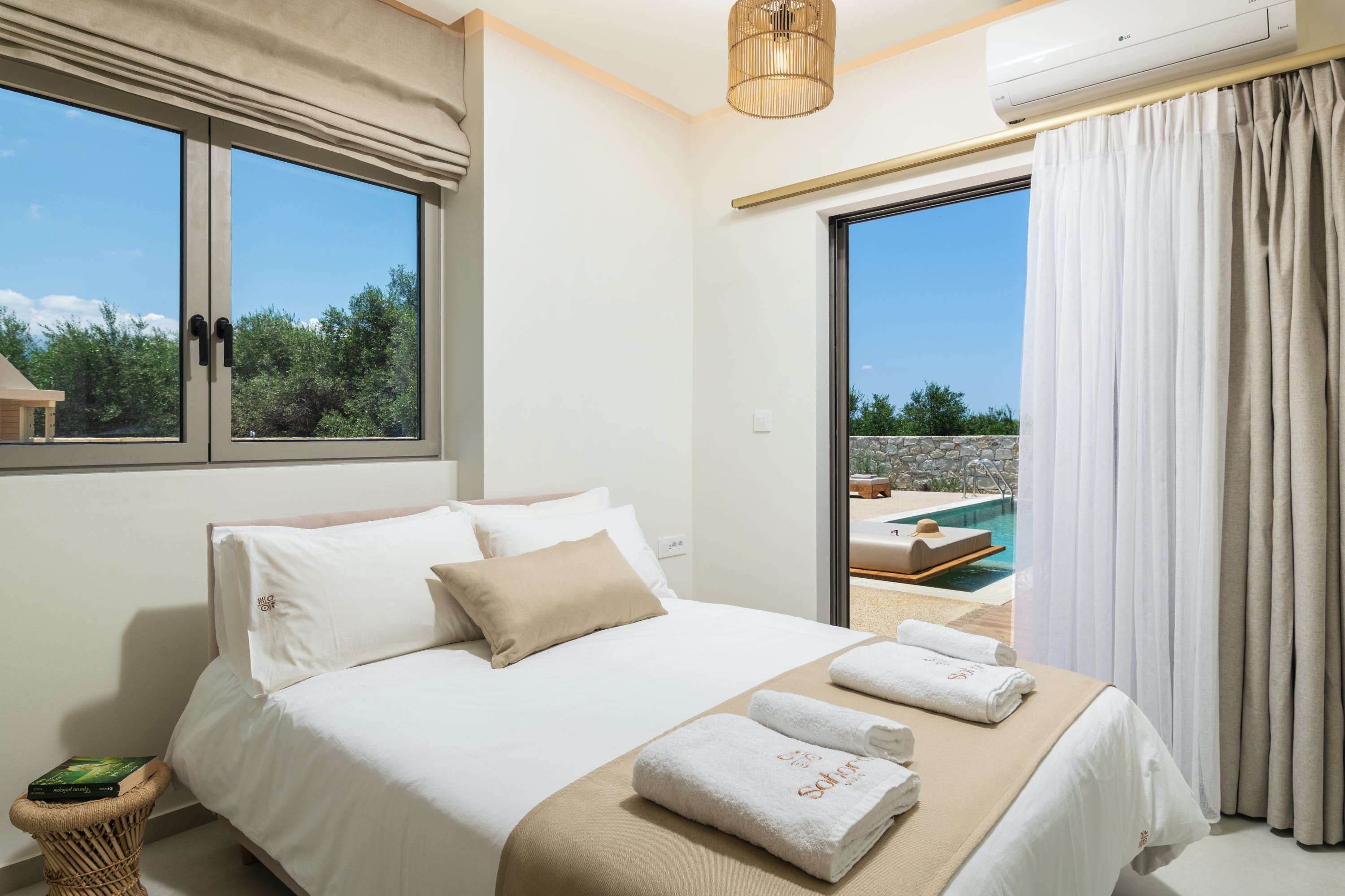 This duo of villas is the perfect option for larger groups. They're not quite identical, but you'll be able to enjoy double of everything – from the swimming pools and sun-kissed gardens to the stylish living areas. Our favourite spot is the rooftop terrace (of which there are two), where you can soak under the stars in the private Jacuzzis. Little ones can even take advantage of the fun-filled playground. Location-wise, you're not far from the sandy beaches in Plaka and only a short drive from Chania. For a Grecian getaway with the whole brood, this is an ideal choice.
