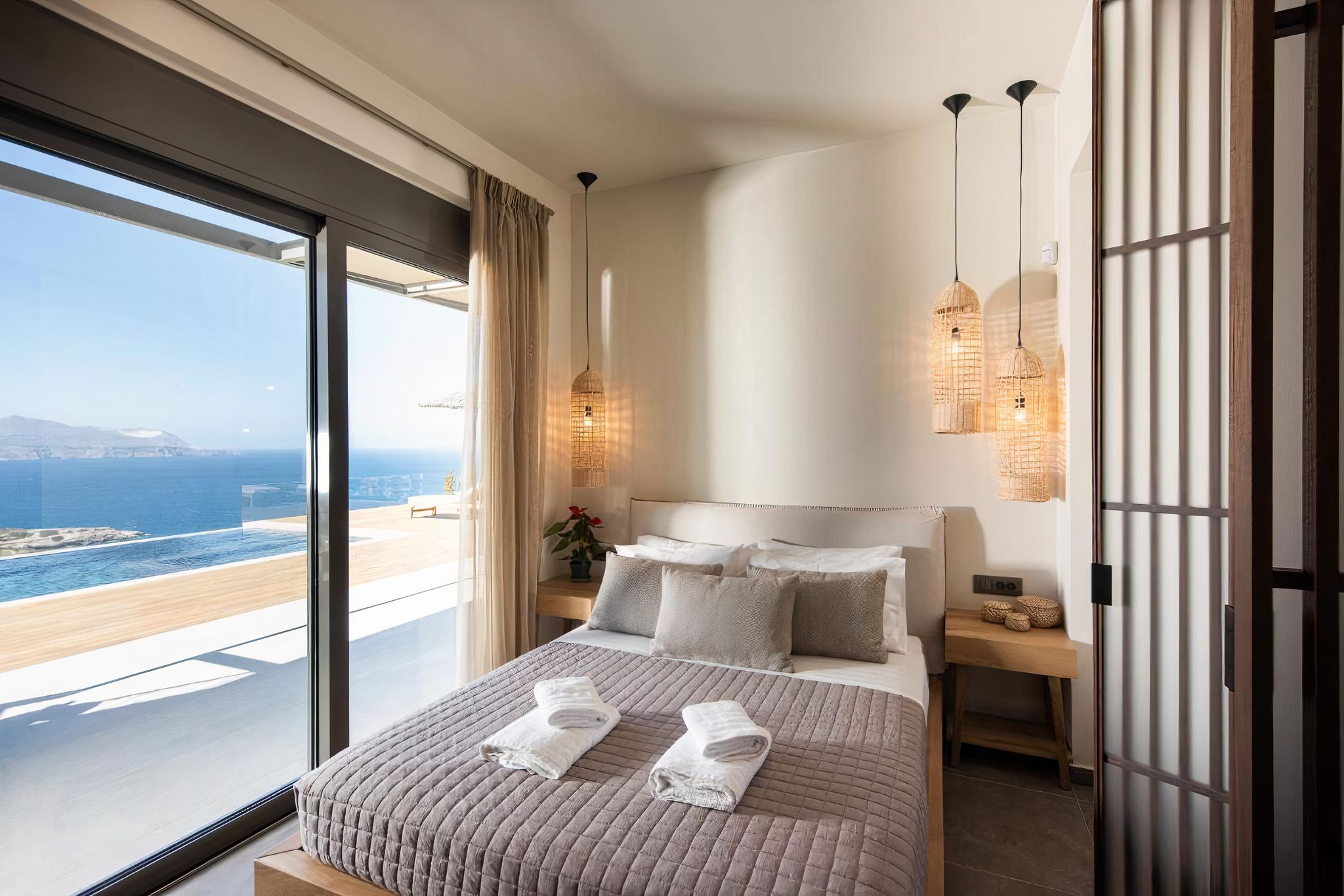 Capitalising on the beauty of the natural Crete landscape, this modern villa is built with views of the Aegean Sea and surrounding mountains. Though that'll draw you outside, you'll stay for the infinity pool and alfresco dining table. There are also bean bags and sun loungers to ensure you're making the most of the sunshine. Inside, modern features ensure that all of the family are comfortable. As for your location, you're near Plaka, where you can dine and shop. What about the beach, you ask? The closest one is only 700 meters away.