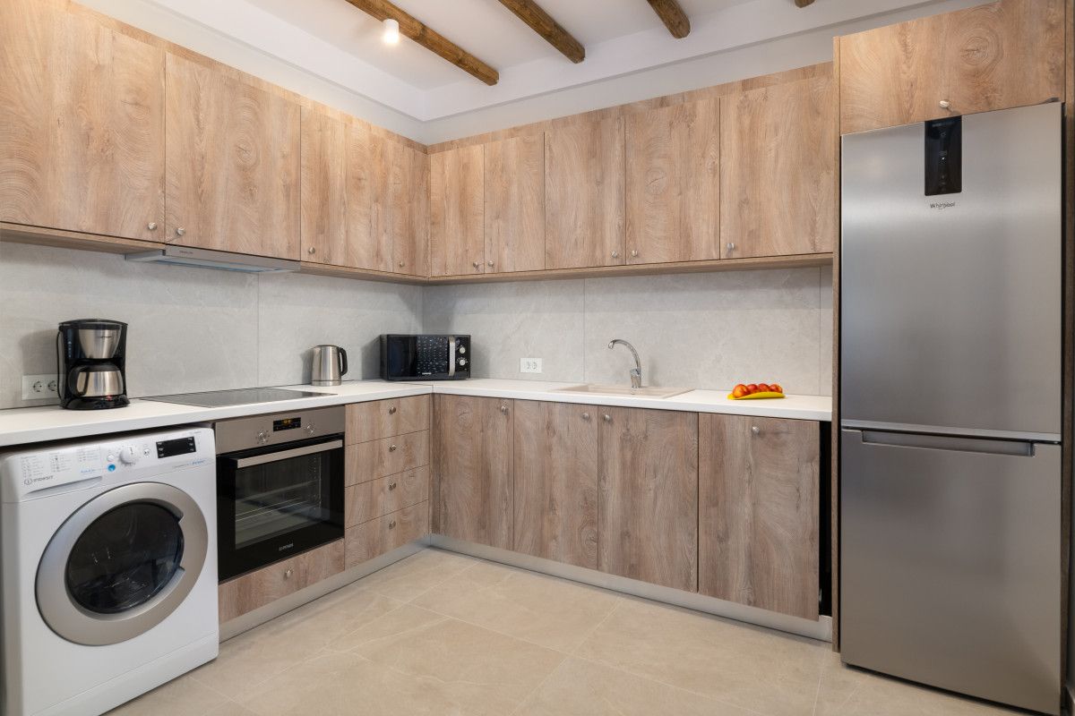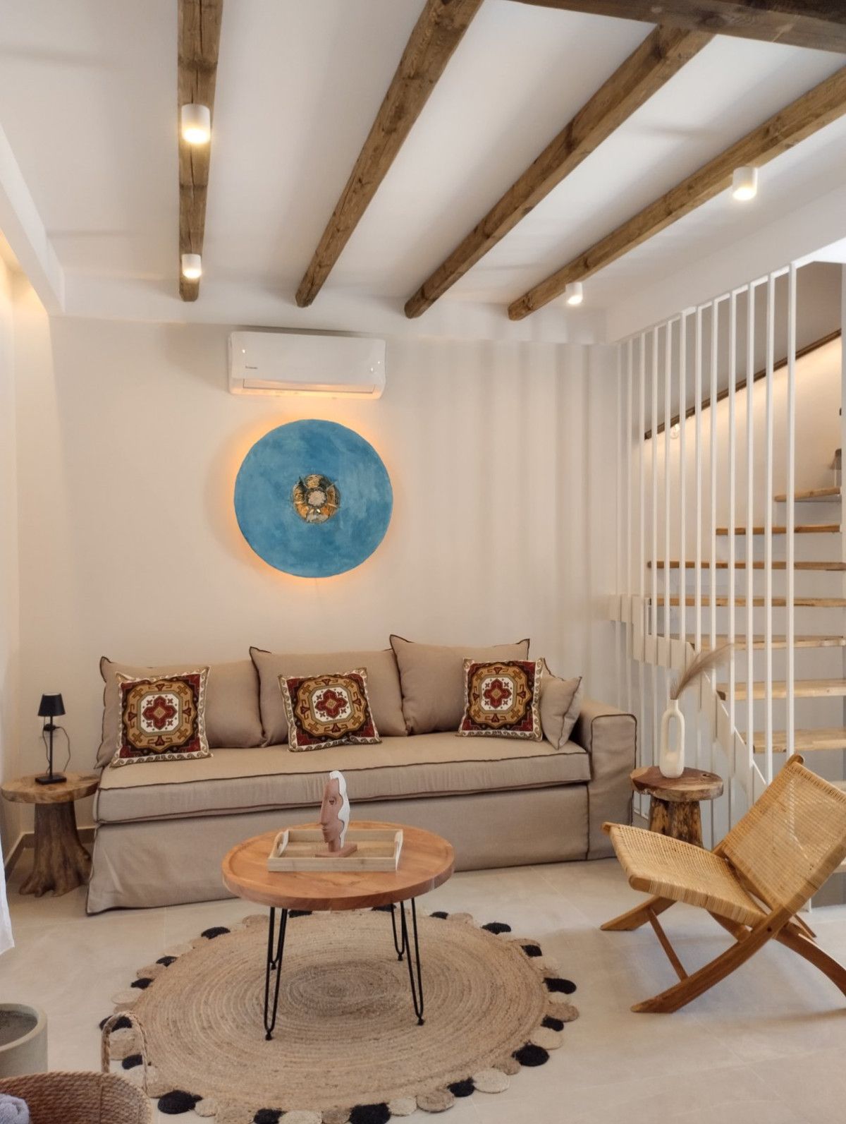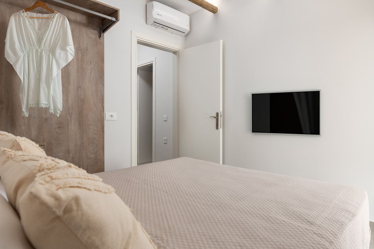 Each of the 3 Villas offers cozy living areas and beautiful outdoors and can conveniently accommodate up to 6 guests. They have 3 fully air-conditioned bedrooms with double beds in warm tones and a unique bohemian design, which reflects the nature itself. Two of the bedrooms are on the first floor. There is a stair down that leads to the third bedroom, which comes with a double bed, a sofa and its own bathroom with shower. There is one bathroom on each floor. Also, there is a double sofa bed in the living room. The kitchen is fully equipped to accommodate your culinary habits, as well as your experiments with local products and recipes. The beautiful living room is inviting with incredible furniture. There are smart TVs in each bedroom and free Wi-Fi throughout the property. All areas are carefully decorated in natural colors and textures. The property’s outdoor space is a highlight on its’ own merit. You will totally enjoy your time at the private swimming pool. Nature and modern Living are perfectly combined together to make your stay a memorable one.