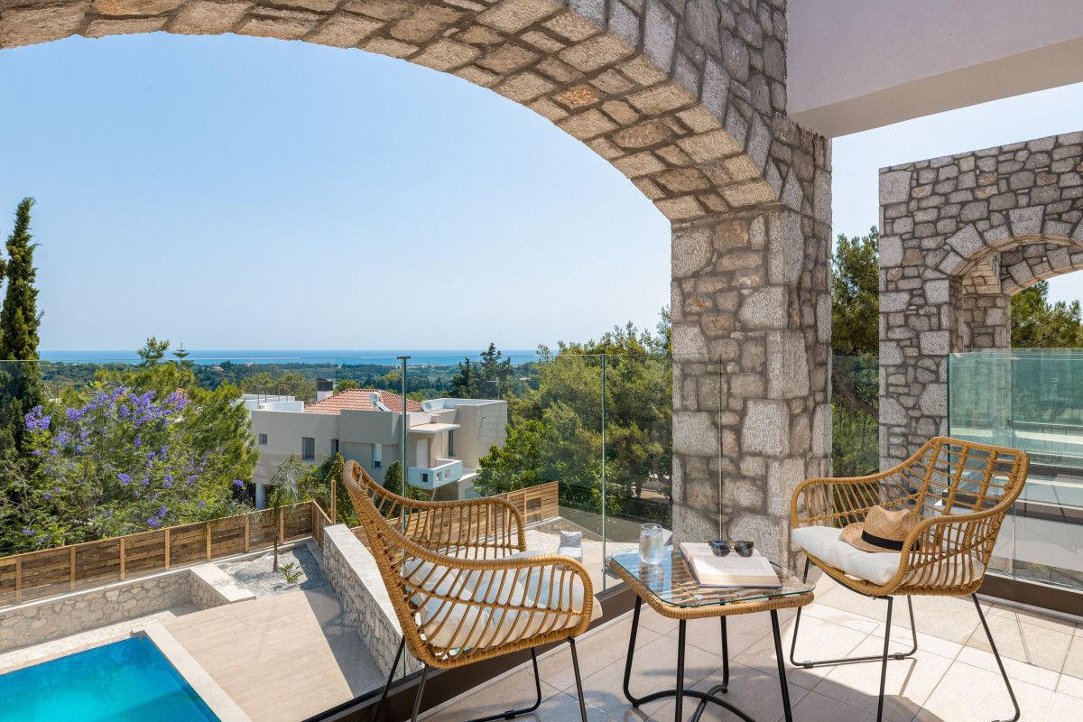 Seaesta Villas is an architectural complex of 3 villas in a quiet and beautiful area close to Koskinou, offering private swimming pools and a spectacular view of the Aegean Sea. Thalassa (Sea), Petra (Rock) and Helios (Sun) are the name of each, the three elements that couldn’t describe better the beauty of a Greek Island.