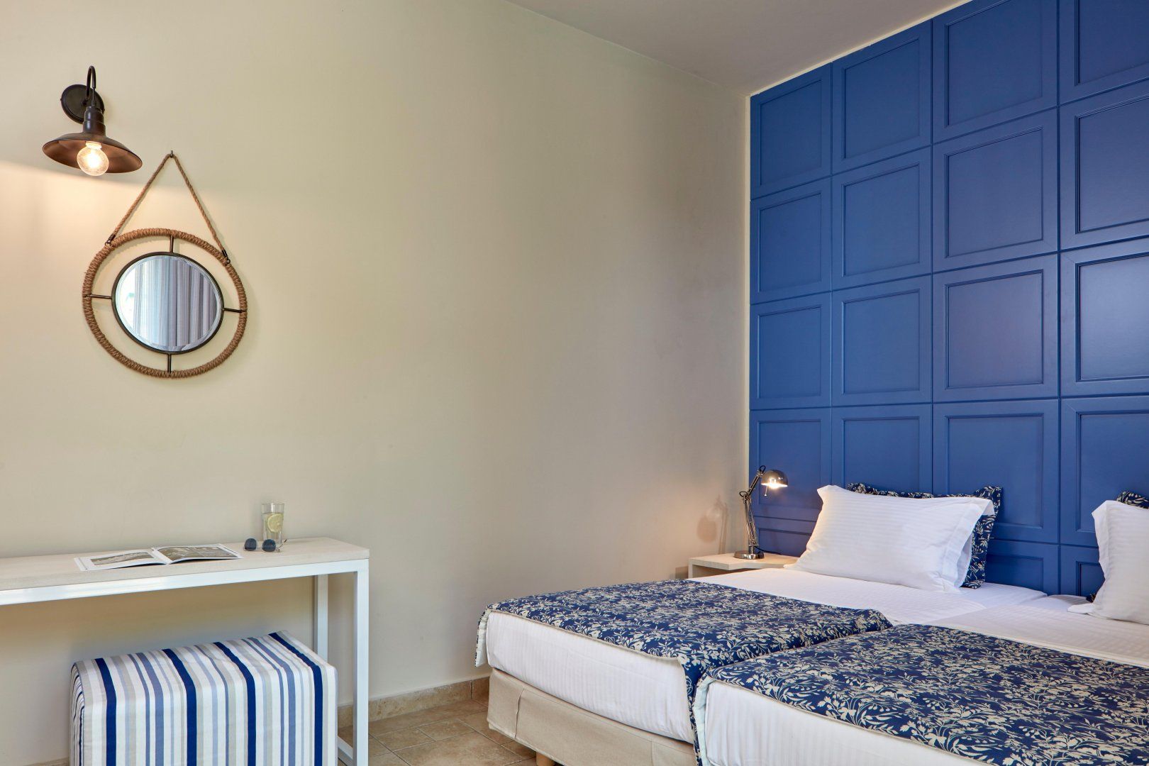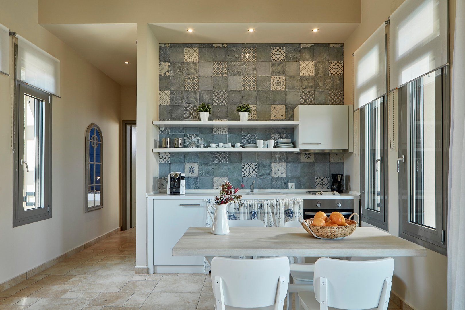 You’ll find this laidback retreat, with its coastal-inspired colour scheme and grounding natural textures, just ten metres from Agia Paraskevi Beach. Waking up here is a pleasure, especially when an Ionian breeze drifts through the open windows. Begin your mornings with a traditional Greek breakfast in the neat living space before heading out onto the terrace to watch the day slip away from the vantage point of a lounger. If the heat gets to be a bit much, cool off with a dip in the pool or skip down to the seafront to bob about in the calm waves.