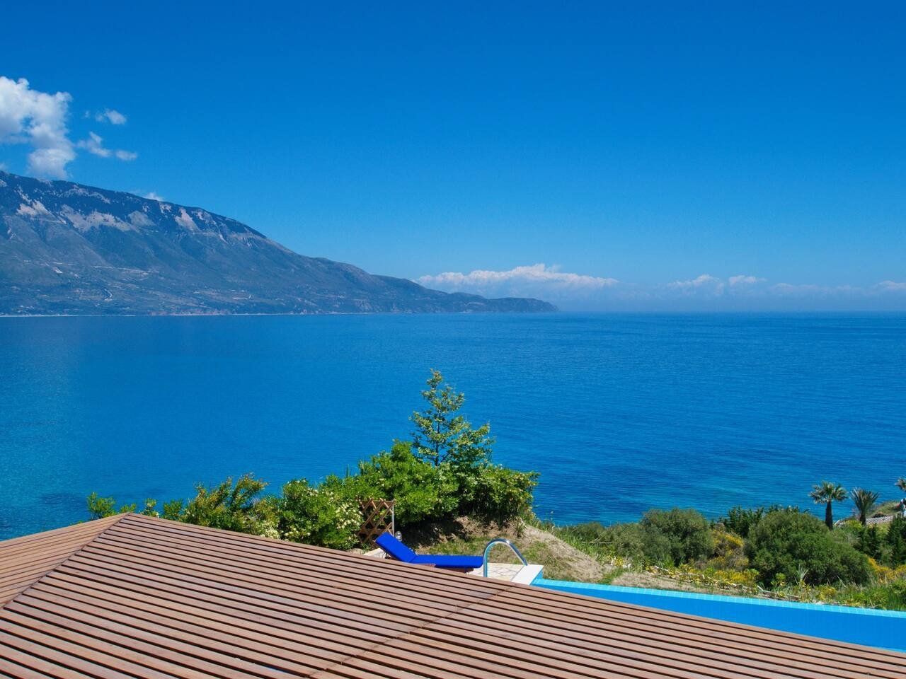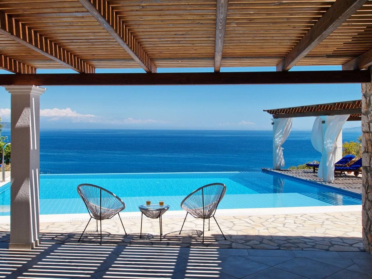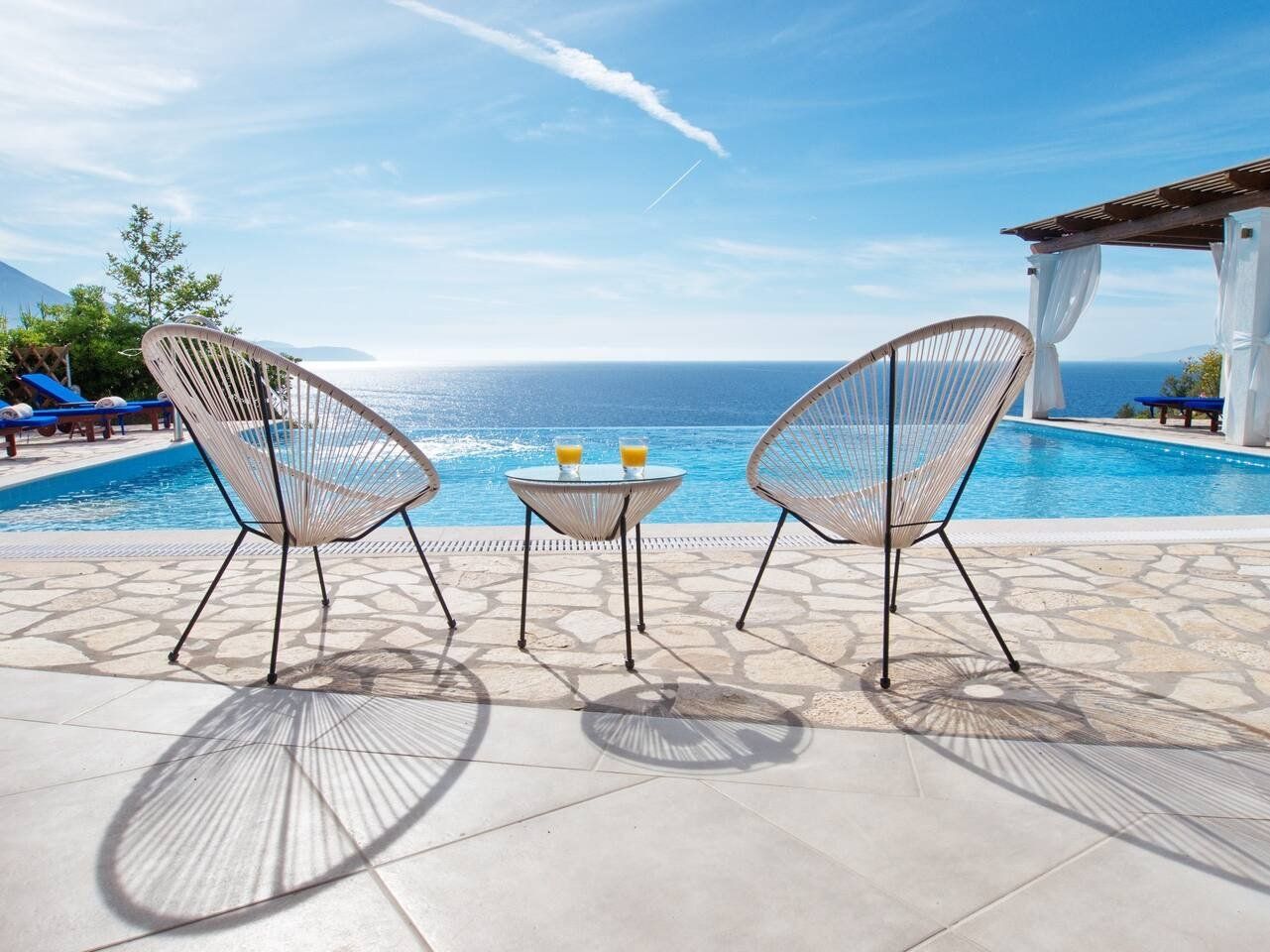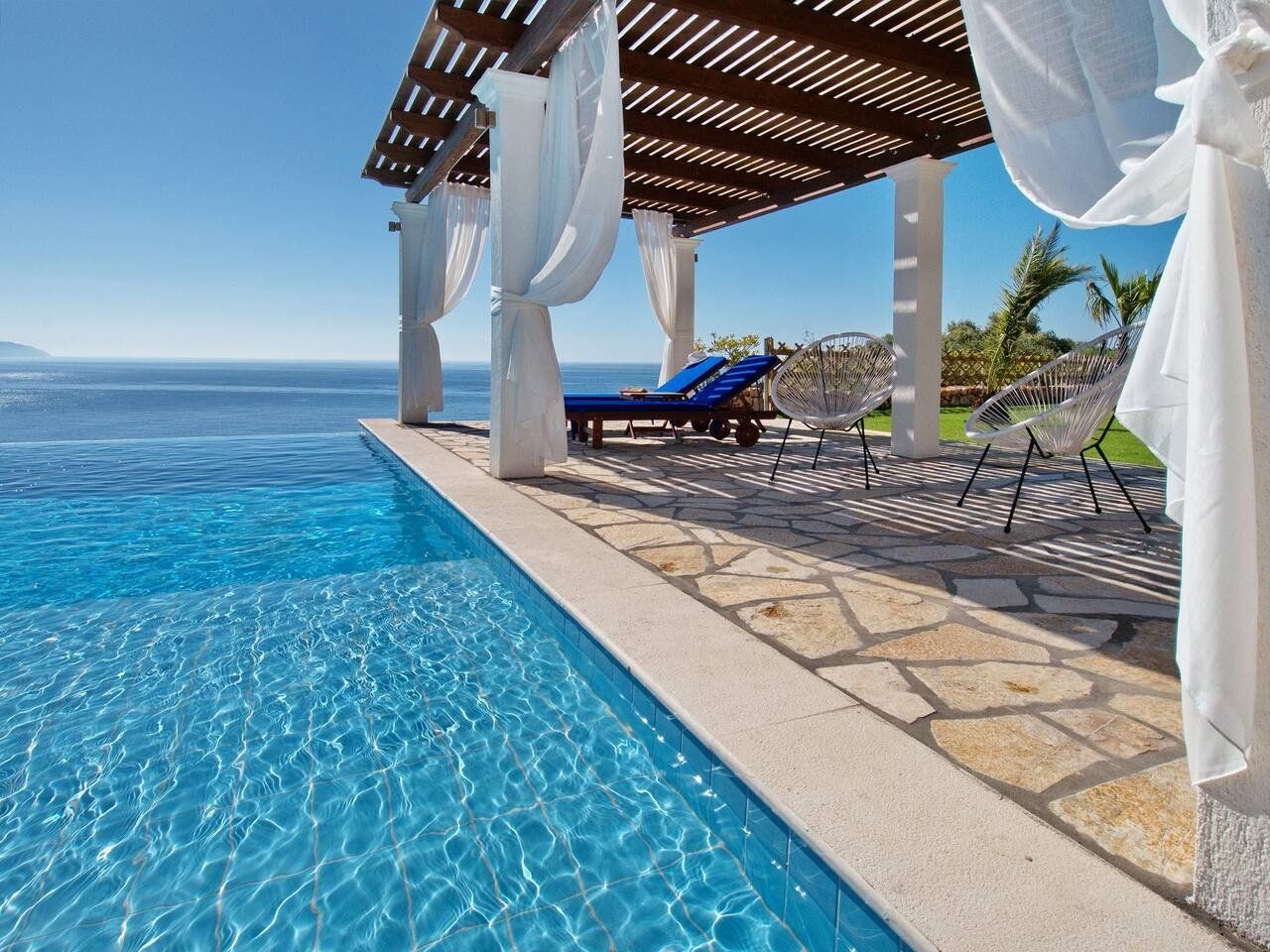 At the tip of the Liakas Peninsula overlooking the Mediterranean Sea, this breezy villa is the ultimate getaway. Smart, modern and utterly peaceful, the whole house revolves around the incredible views, from the patio doors to the dazzling infinity pool that feels like it flows straight into the sea. Inside, the vibe is contemporary cool – think soothing colour schemes, shiny surfaces and all the mod-cons you need to feel right at home. You can easily spend your whole trip lounging by the pool or relaxing under the shady pergola. Follow the footpath down to the rocky sea or drive ten-minutes to Klimatsias Beach for sandy shores perfect for sunbathing. There are taverns and restaurants in Spartia – only a short drive – but for more choice, we recommend strolling along the promenade in Argostoli, only fifteen-minutes away. Finish the evening back at home, sipping wine on the terrace as the stars pop out over the ocean. Trust us – you won't find a better spot to unwind.