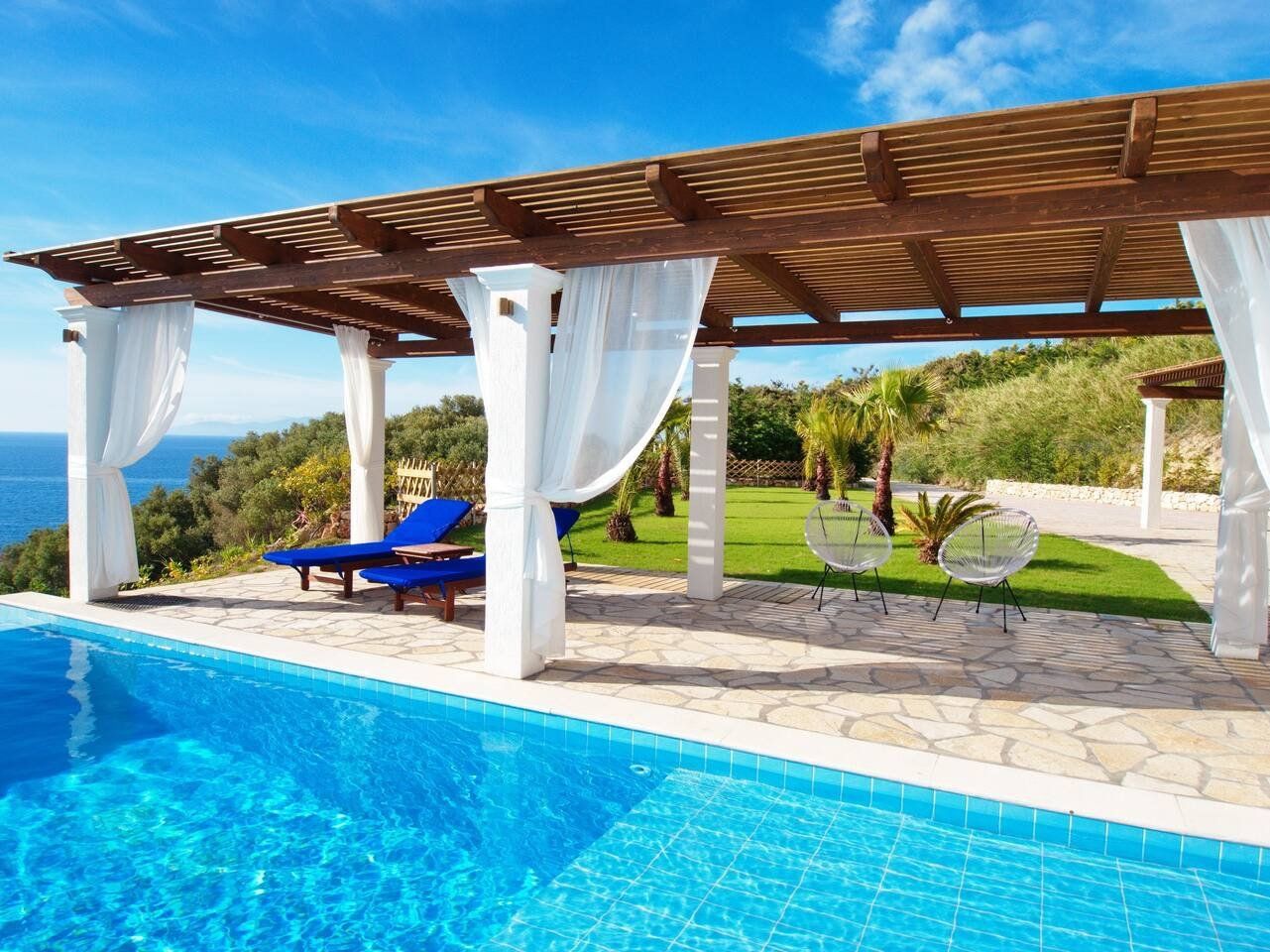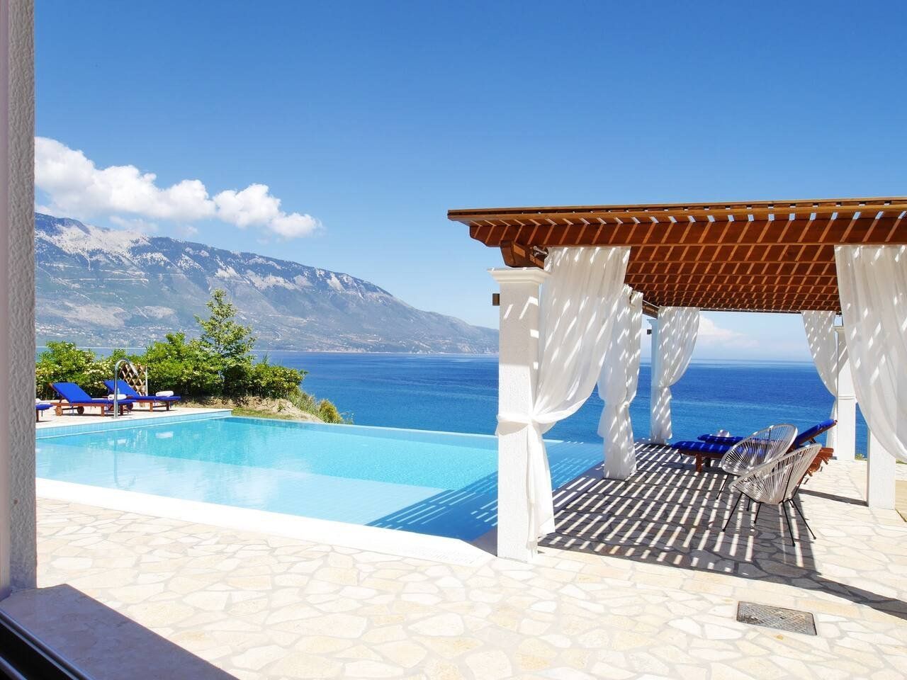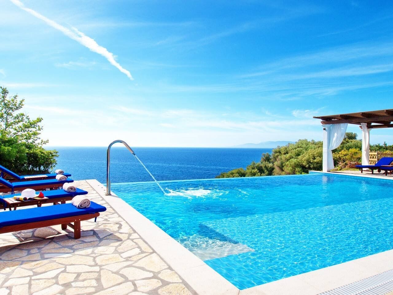 At the tip of the Liakas Peninsula overlooking the Mediterranean Sea, this breezy villa is the ultimate getaway. Smart, modern and utterly peaceful, the whole house revolves around the incredible views, from the patio doors to the dazzling infinity pool that feels like it flows straight into the sea. Inside, the vibe is contemporary cool – think soothing colour schemes, shiny surfaces and all the mod-cons you need to feel right at home. You can easily spend your whole trip lounging by the pool or relaxing under the shady pergola. Follow the footpath down to the rocky sea or drive ten-minutes to Klimatsias Beach for sandy shores perfect for sunbathing. There are taverns and restaurants in Spartia – only a short drive – but for more choice, we recommend strolling along the promenade in Argostoli, only fifteen-minutes away. Finish the evening back at home, sipping wine on the terrace as the stars pop out over the ocean. Trust us – you won't find a better spot to unwind.