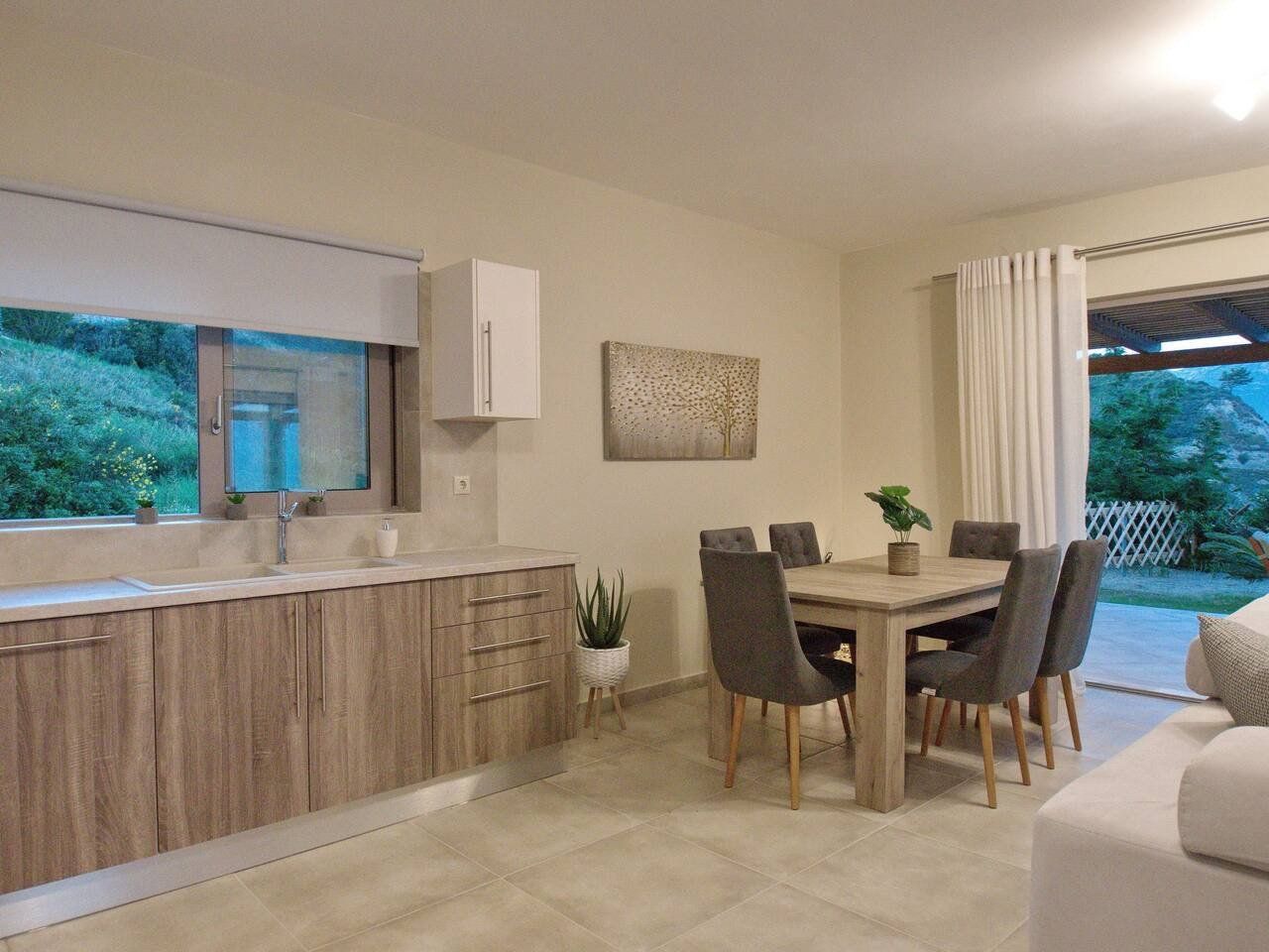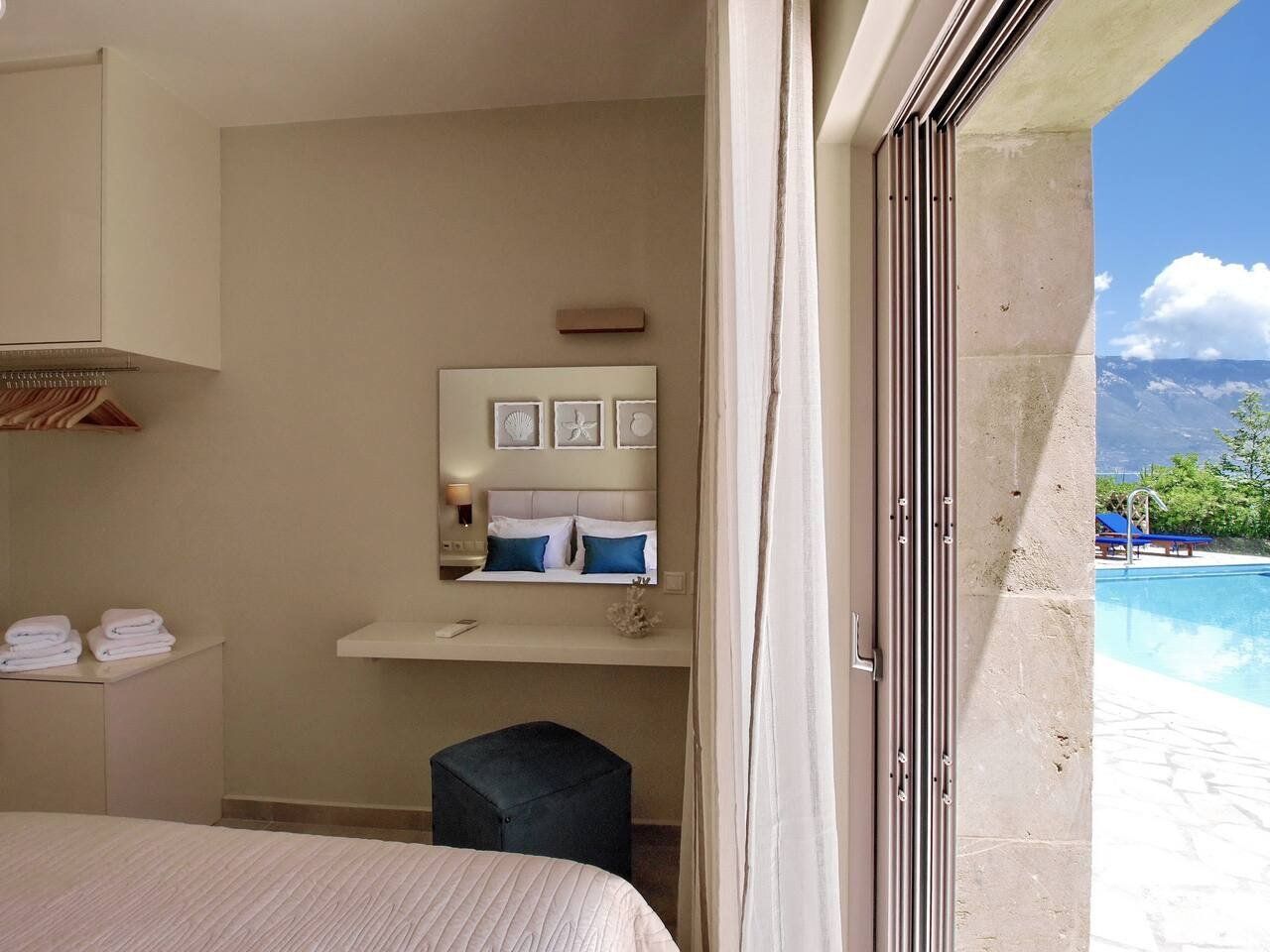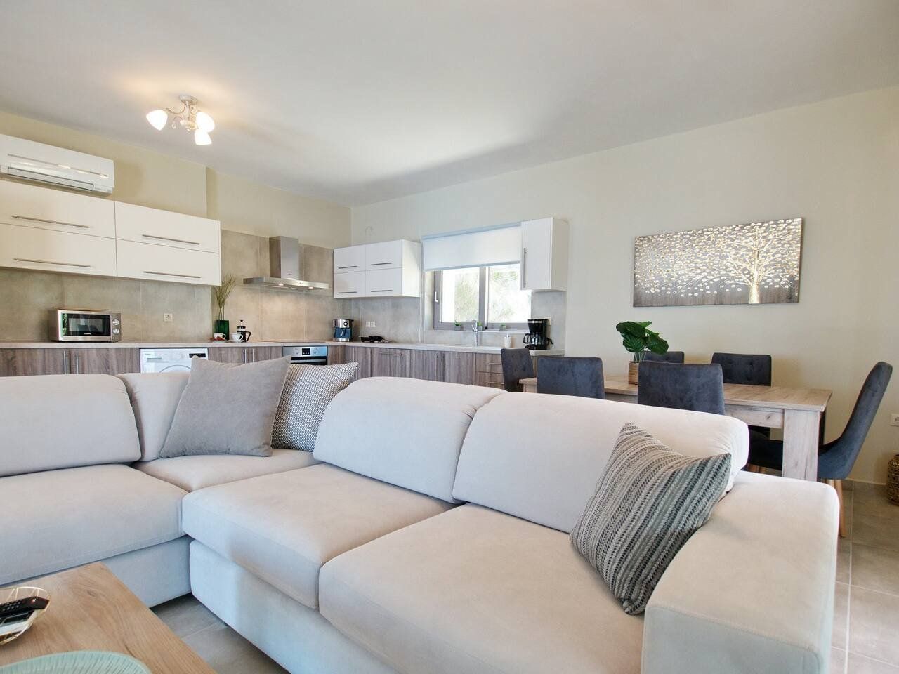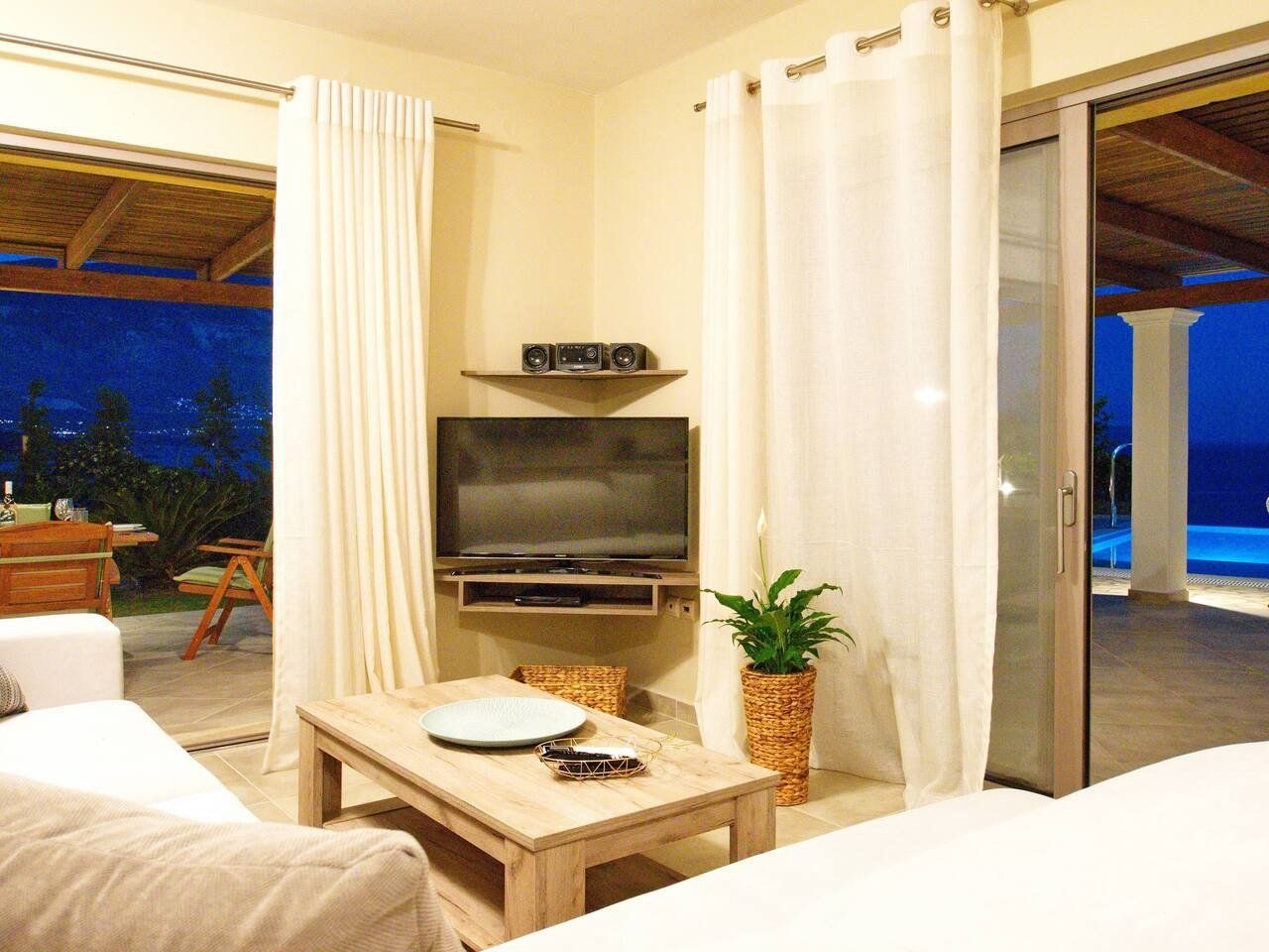 At the tip of the Liakas Peninsula overlooking the Mediterranean Sea, this breezy villa is the ultimate getaway. Smart, modern and utterly peaceful, the whole house revolves around the incredible views, from the patio doors to the dazzling infinity pool that feels like it flows straight into the sea. Inside, the vibe is contemporary cool – think soothing colour schemes, shiny surfaces and all the mod-cons you need to feel right at home. You can easily spend your whole trip lounging by the pool or relaxing under the shady pergola. Follow the footpath down to the rocky sea or drive ten-minutes to Klimatsias Beach for sandy shores perfect for sunbathing. There are taverns and restaurants in Spartia – only a short drive – but for more choice, we recommend strolling along the promenade in Argostoli, only fifteen-minutes away. Finish the evening back at home, sipping wine on the terrace as the stars pop out over the ocean. Trust us – you won't find a better spot to unwind.