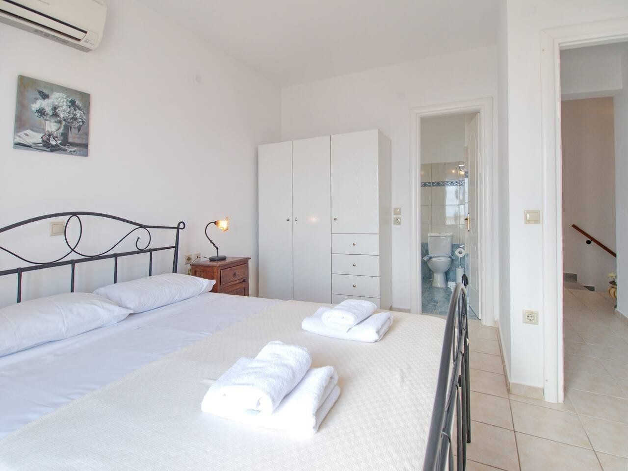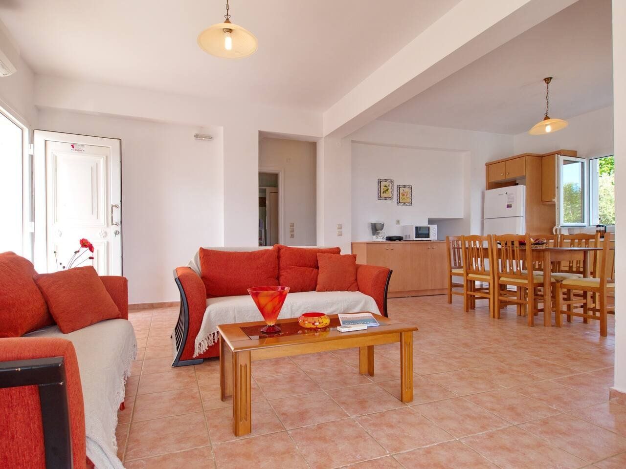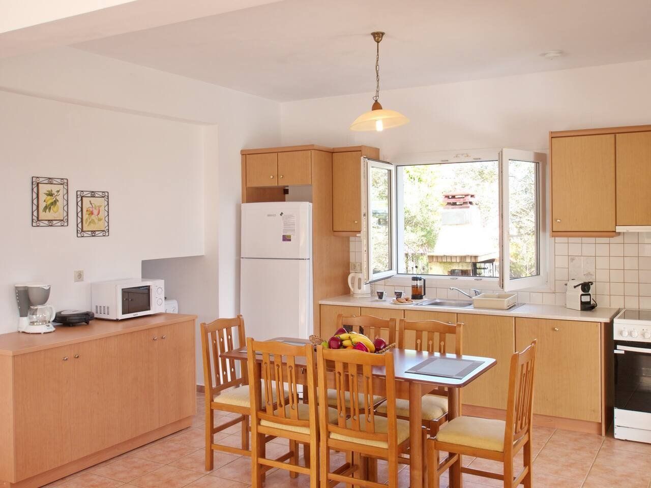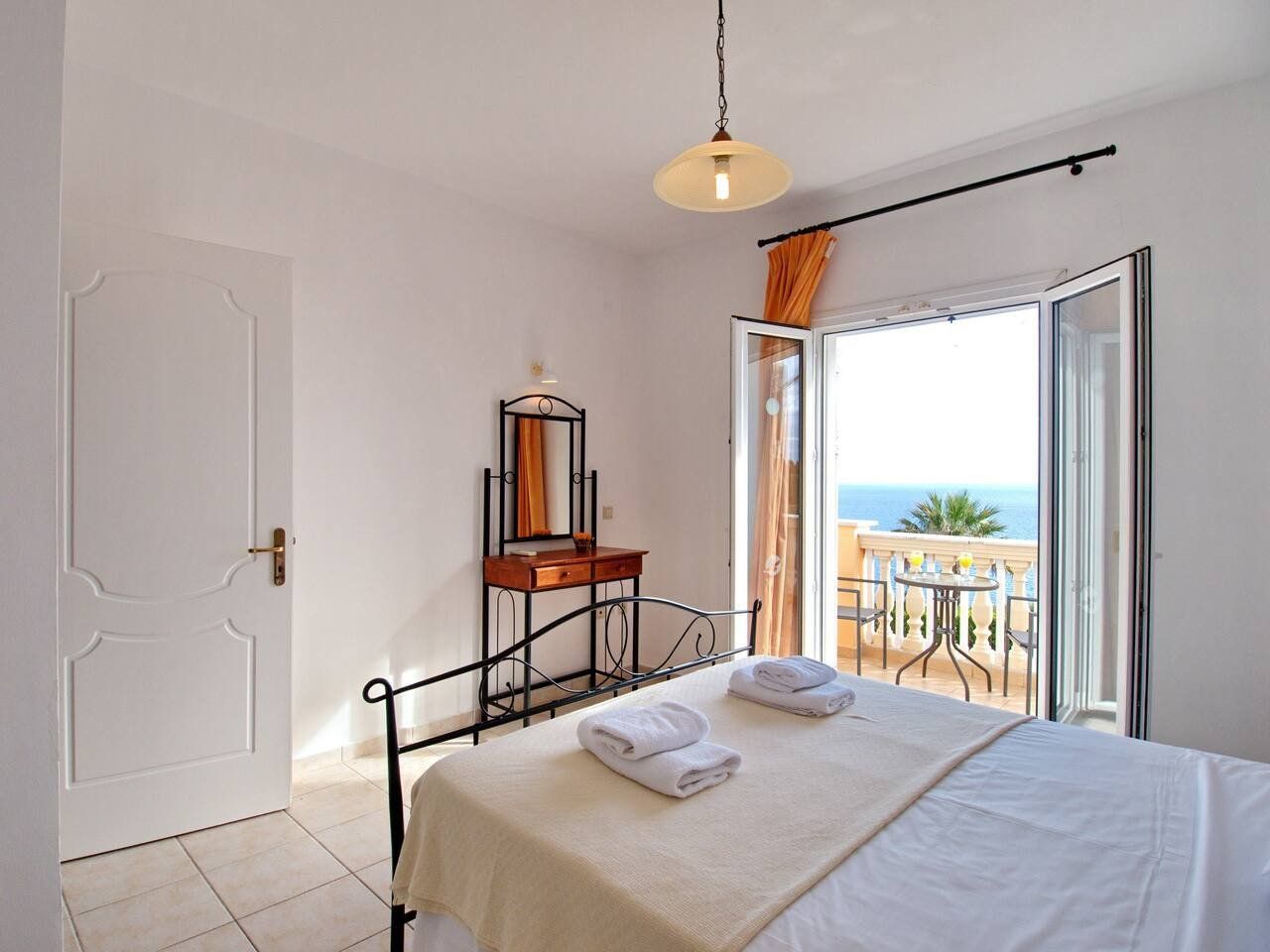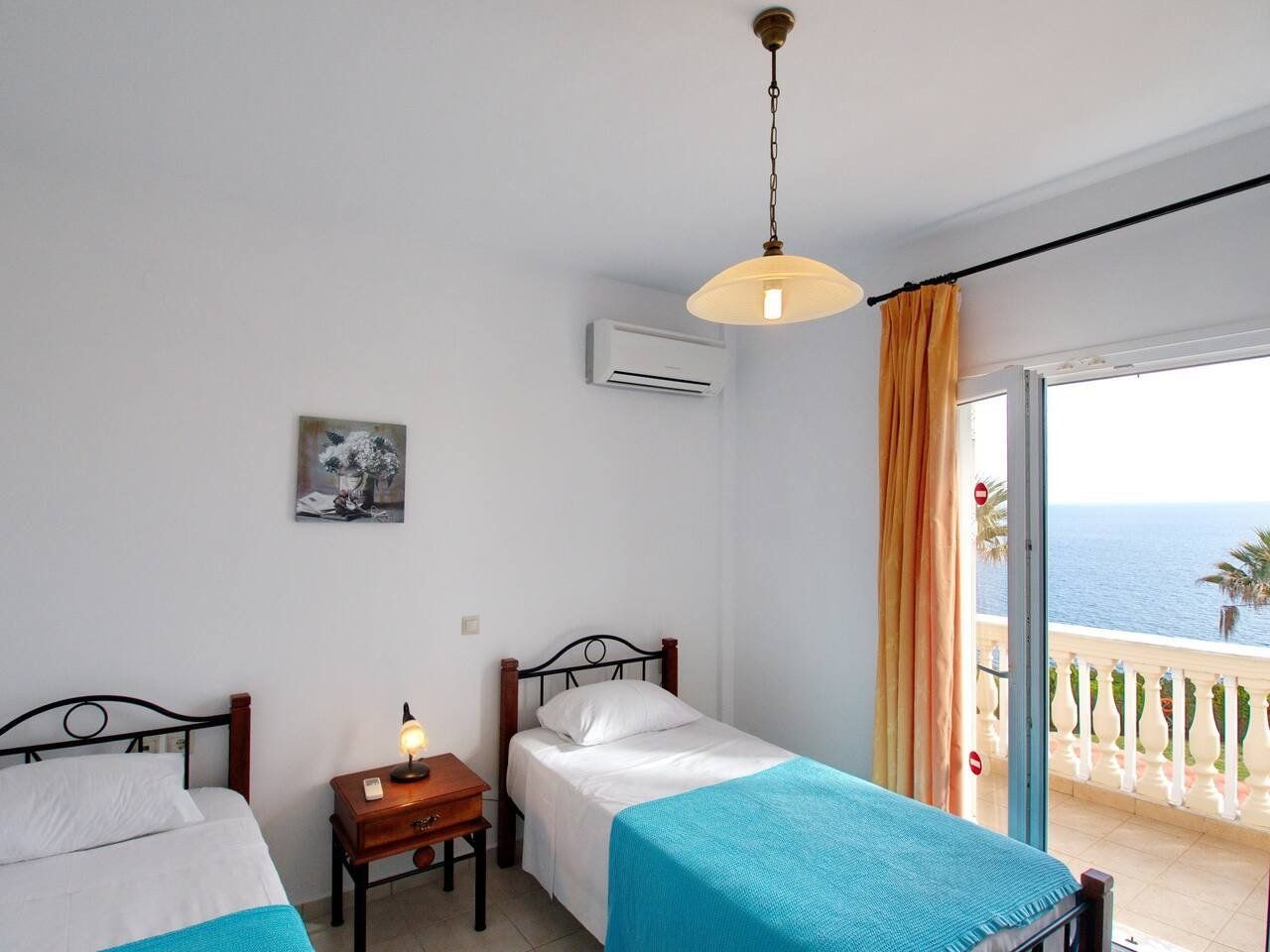 The real scene-stealer? Out on the long front balcony, which has prime views over the ocean and across to Zante. Thanks to the quiet location, it's easy to relax – whether you're swimming lengths in the pool, curling up with a book on the terrace, or sneaking in a siesta on the daybeds. For the adventurous, a rocky outcrop is a few metres down the hill, from which you can dive straight into the sea. Or why not head into Spartia, a five-minute drive away? Here you'll find shops, eateries and a picturesque sandy beach to enjoy in the Kefalonia sunshine.