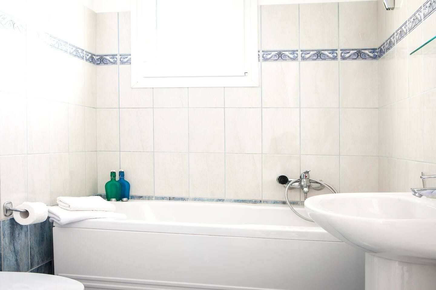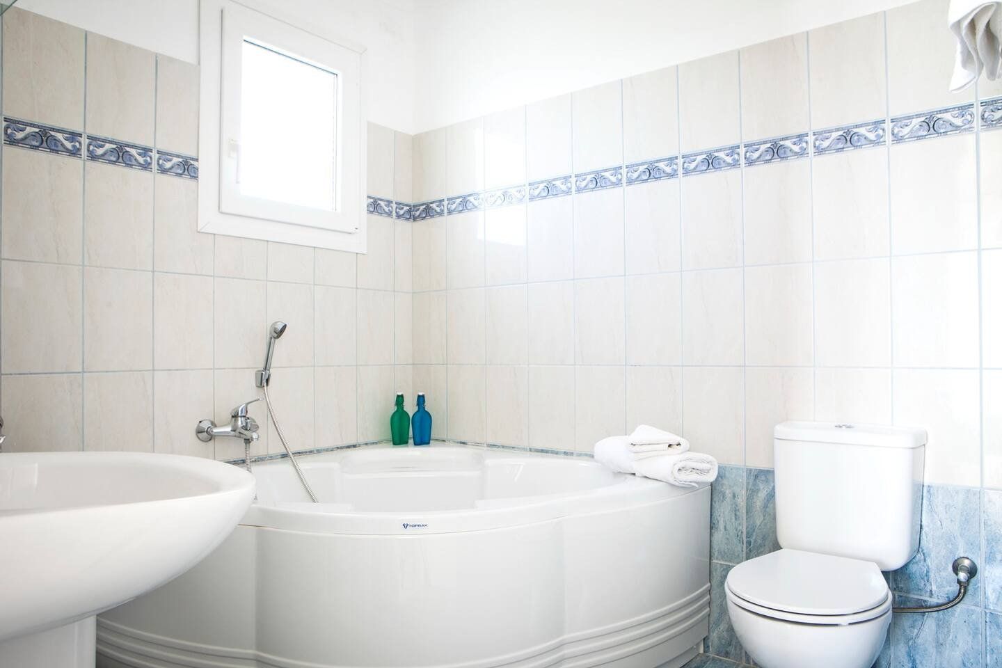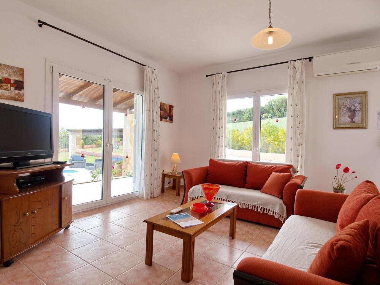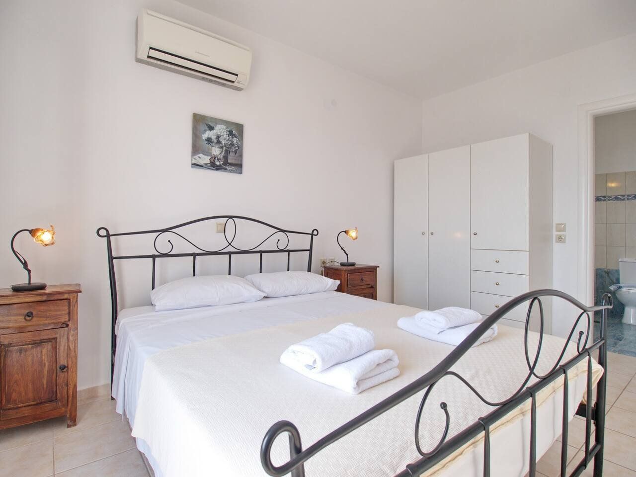The real scene-stealer? Out on the long front balcony, which has prime views over the ocean and across to Zante. Thanks to the quiet location, it's easy to relax – whether you're swimming lengths in the pool, curling up with a book on the terrace, or sneaking in a siesta on the daybeds. For the adventurous, a rocky outcrop is a few metres down the hill, from which you can dive straight into the sea. Or why not head into Spartia, a five-minute drive away? Here you'll find shops, eateries and a picturesque sandy beach to enjoy in the Kefalonia sunshine.