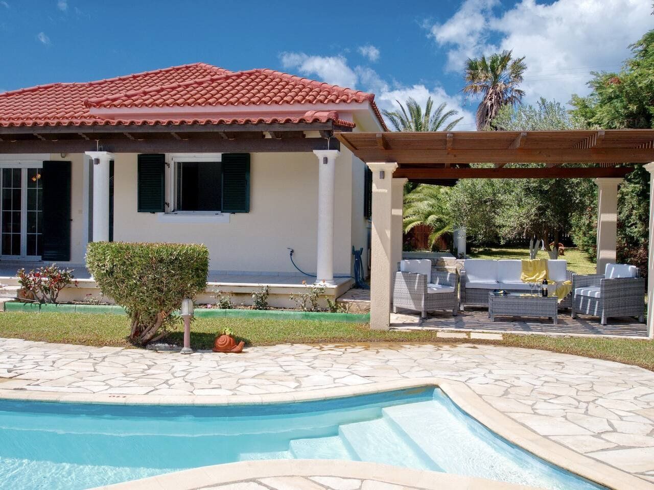 Holiday mode will be well and truly switched on when you roll up to this Grecian home. Kefalonia is an island of magnificent beauty, and this villa's views tick all the boxes, taking in bays, rugged mountains, and the sparkling sea.