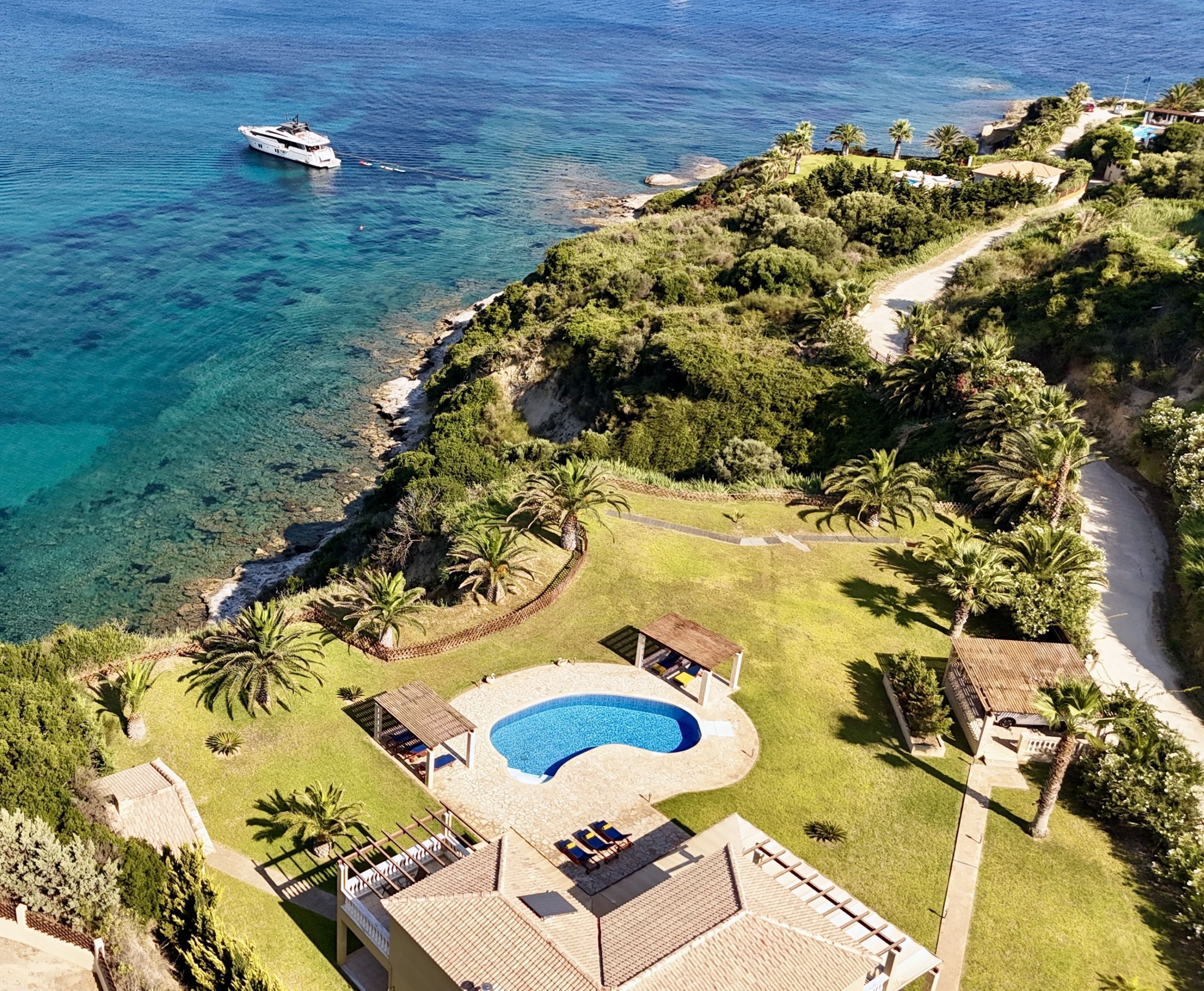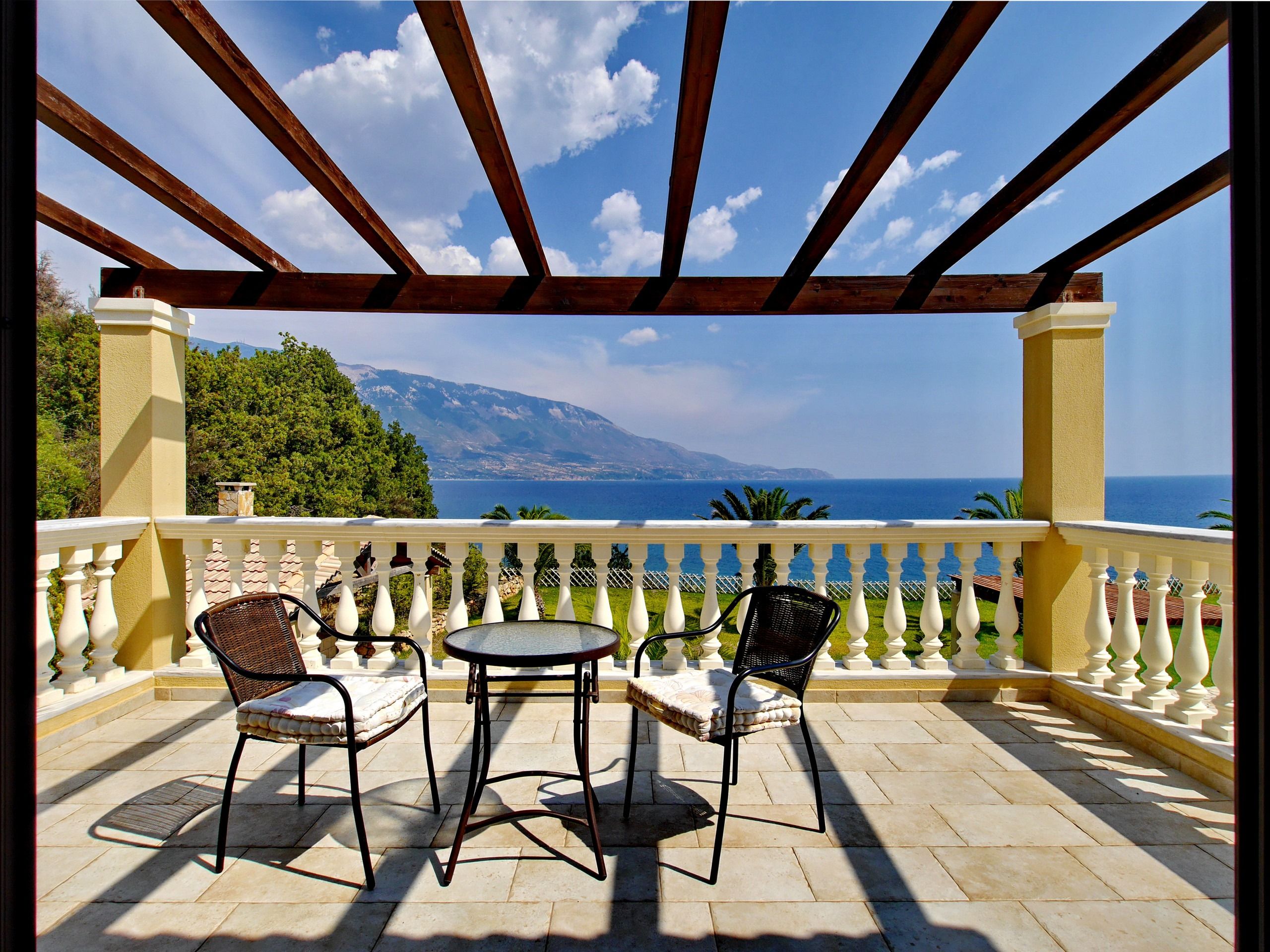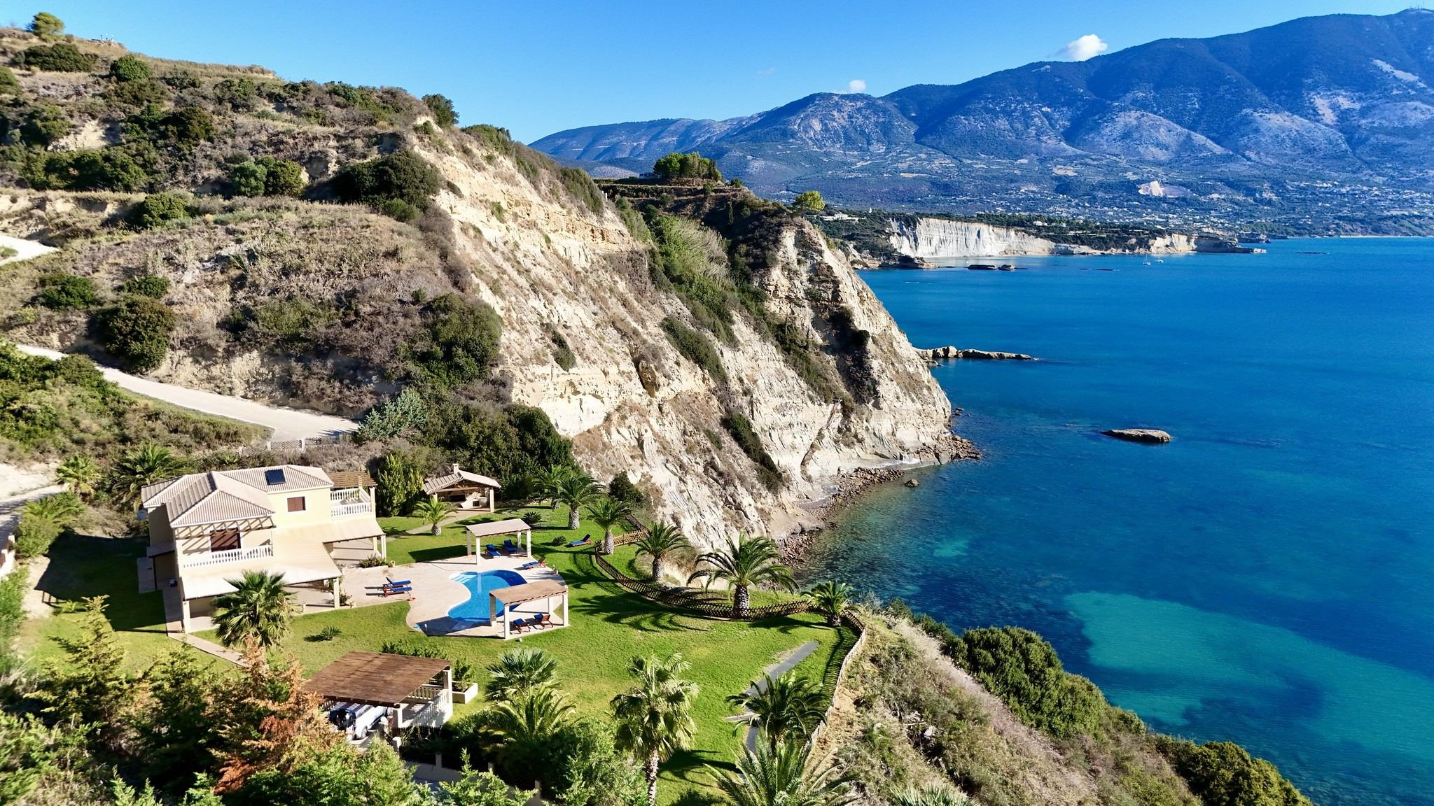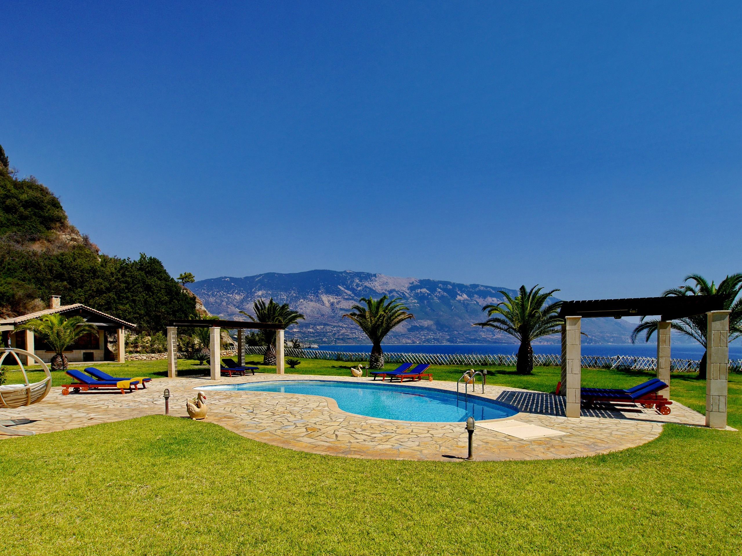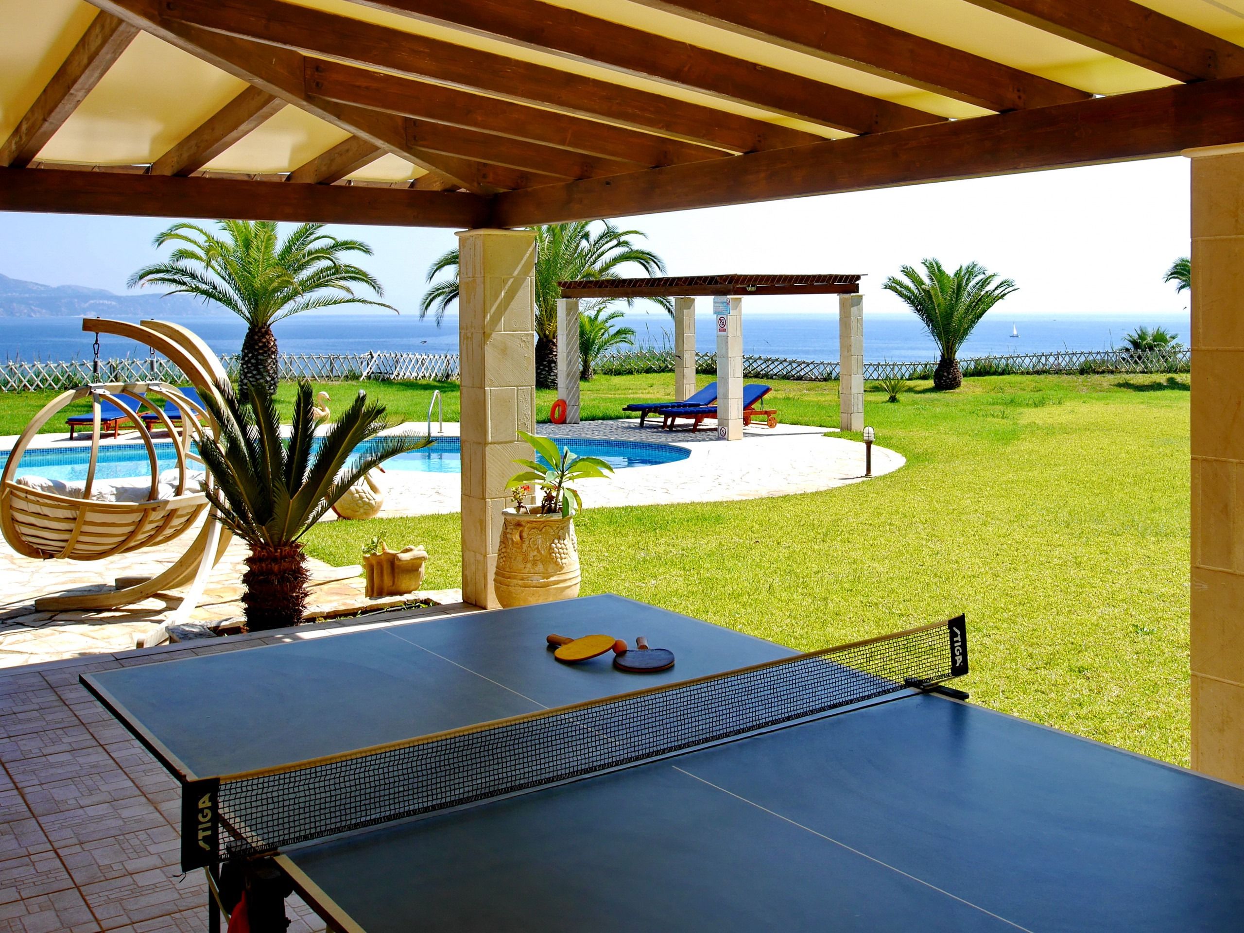 It's not hard to see how the Greek myths of sea gods and Mount Olympus came into being at this beautiful spot on the Liakas Peninsula. Bordered by the slopes of Mount Ainos and with uninterrupted views out over the ocean towards Zakynthos, this home's garden is the stuff of legends. The lawns stretch right to the edge of the sea, where a private pool invites refreshing dips and a table tennis table promises some afternoon competition – all set against a stunning coastal backdrop, of course.