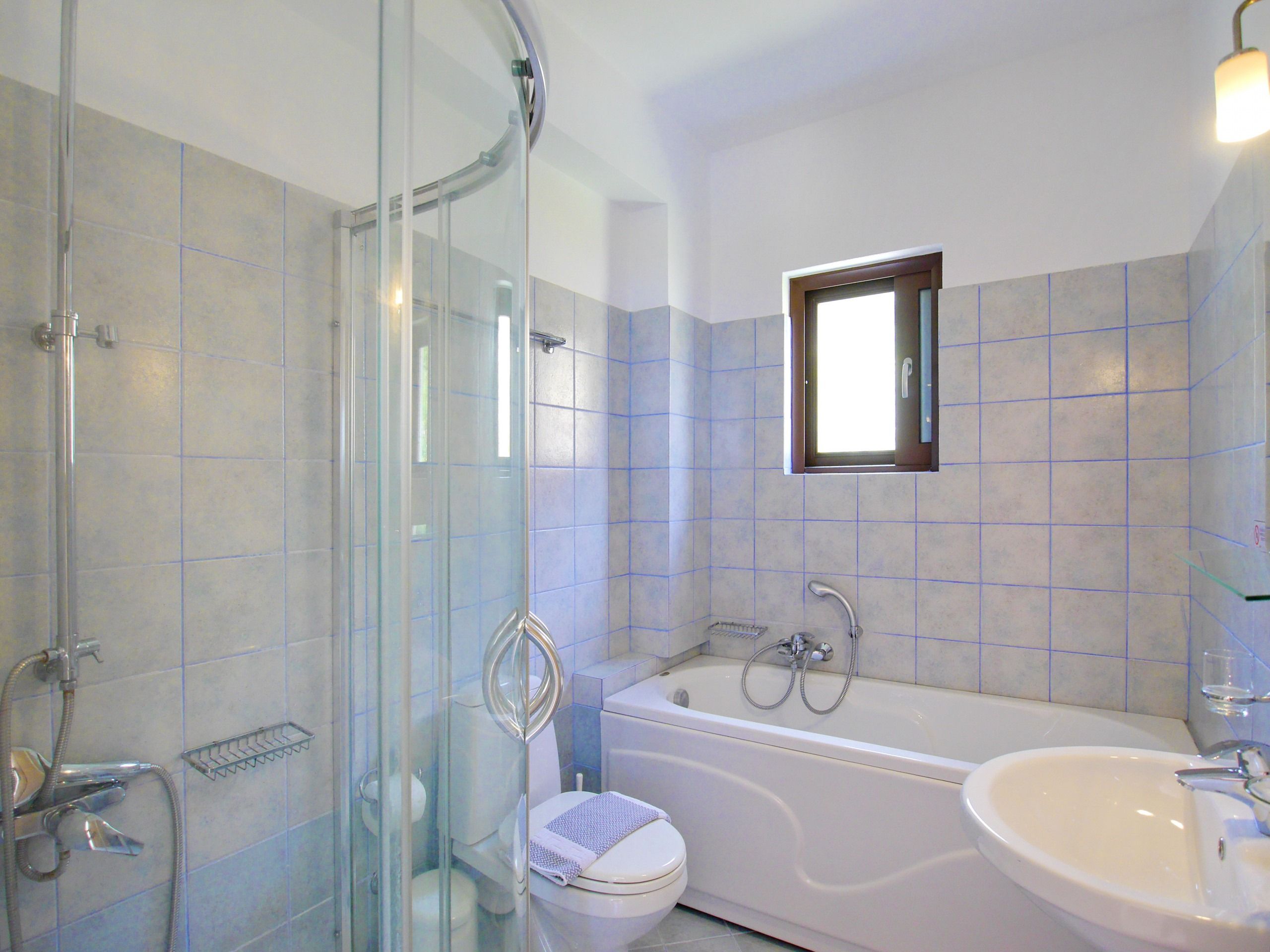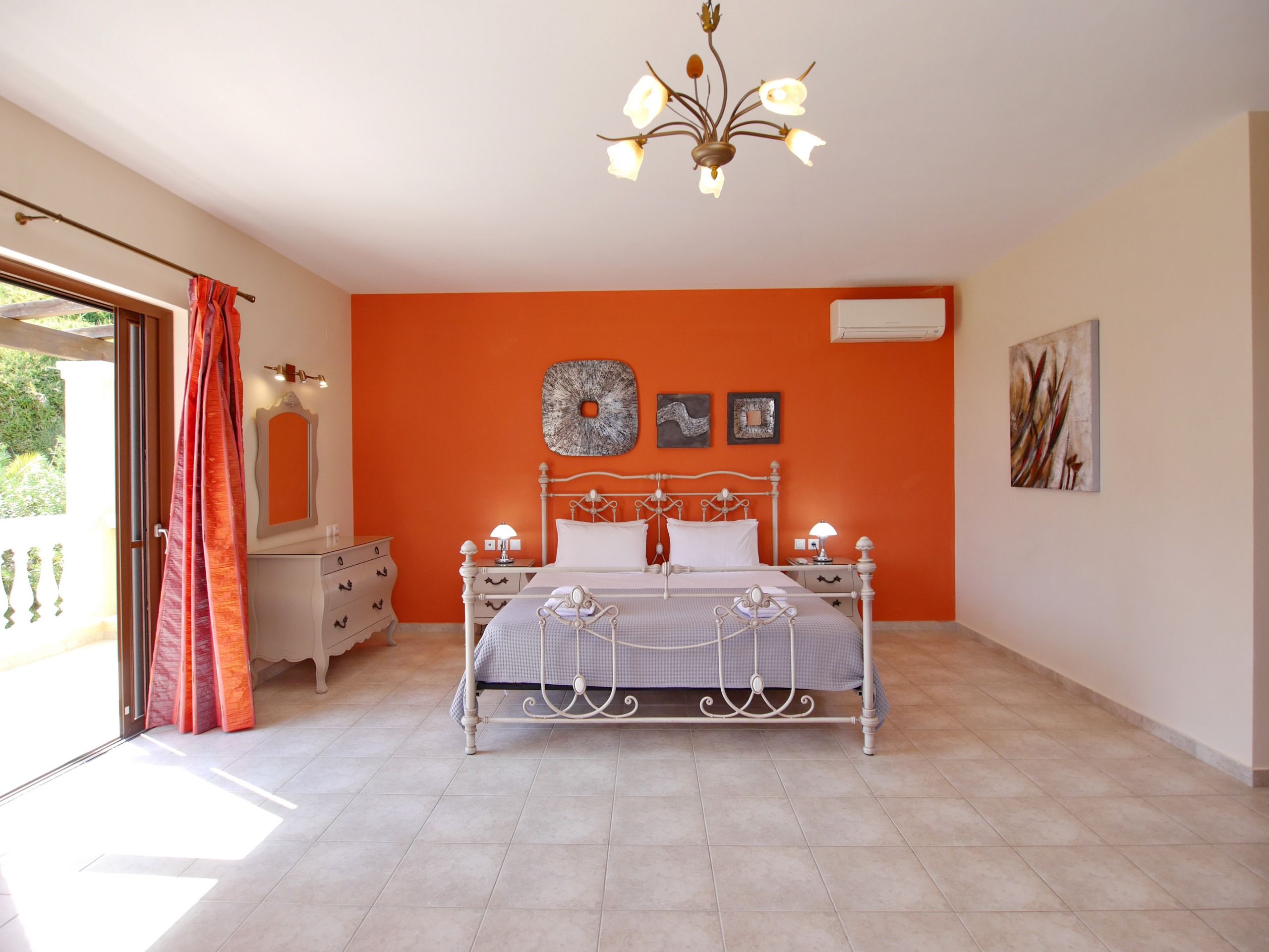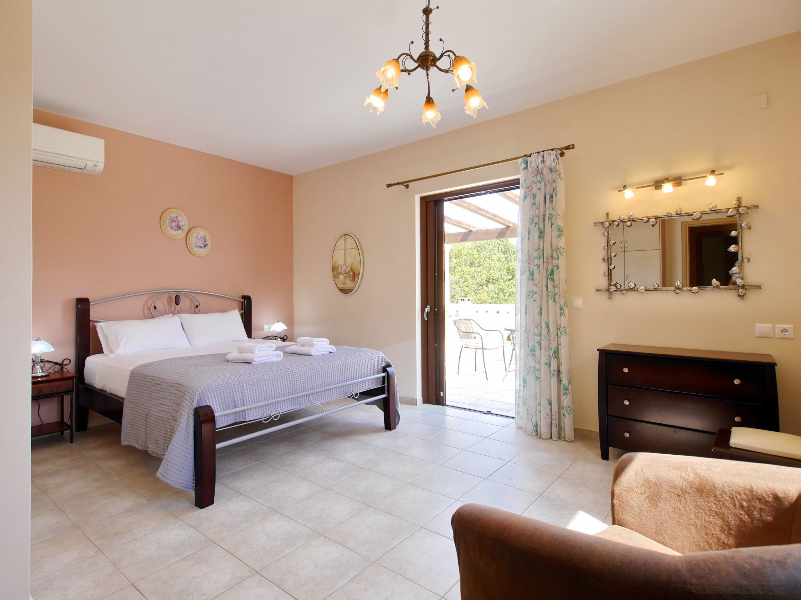 Inside, an open-plan living space is flooded with light from the sliding doors, with an L-shaped sofa for movie nights. Bedrooms bounce from orange to pastel blue, and each has its own en-suite for privacy. Two even boast sea-facing balconies. The decor may be a little dated (especially the kitchen), but it’s cosy and comfortable. And with easy access to the sea, a rocky beach a short walk away, and shops and tavernas within ten minutes by car, we reckon most of your time will be spent out and about.