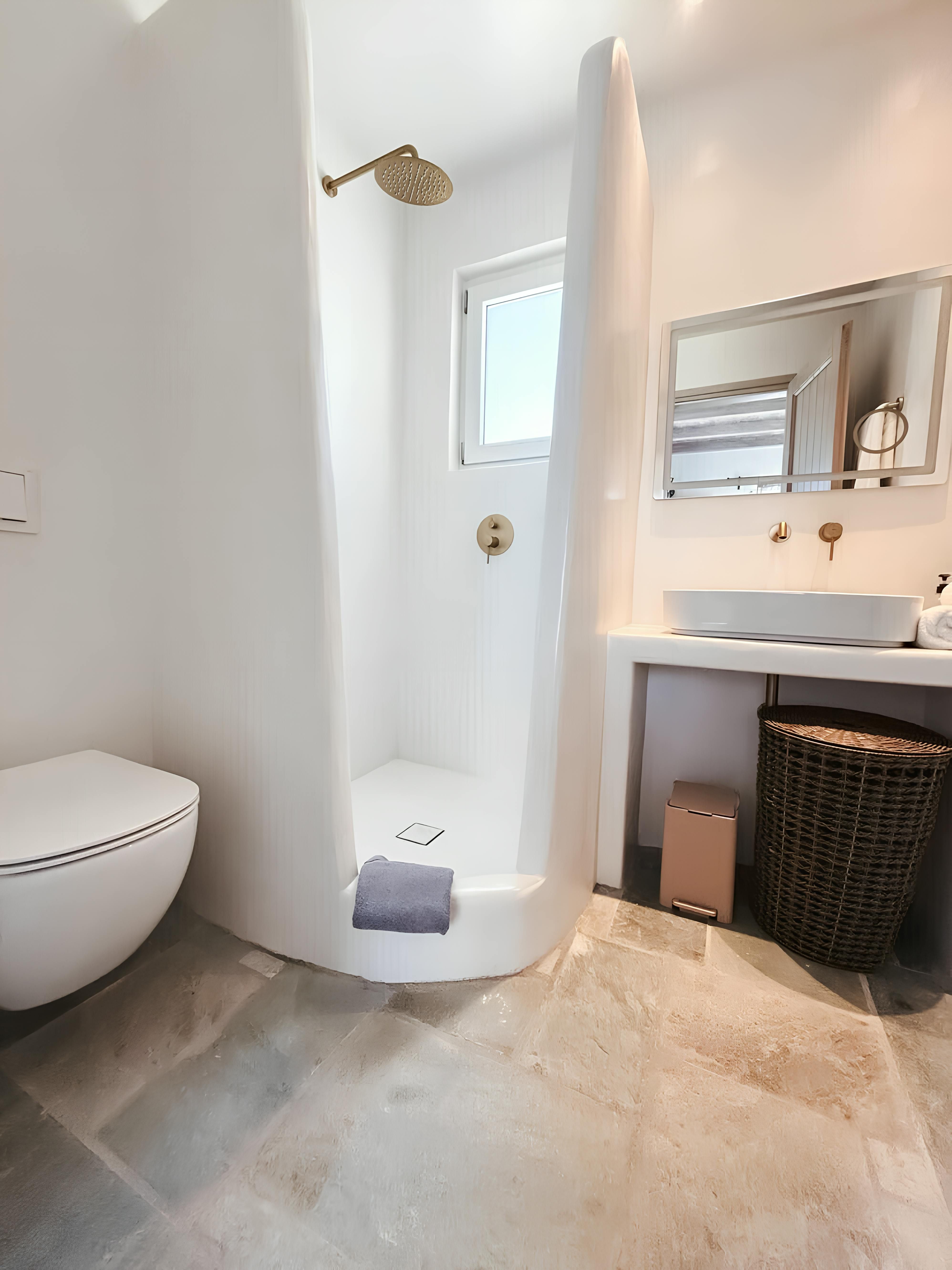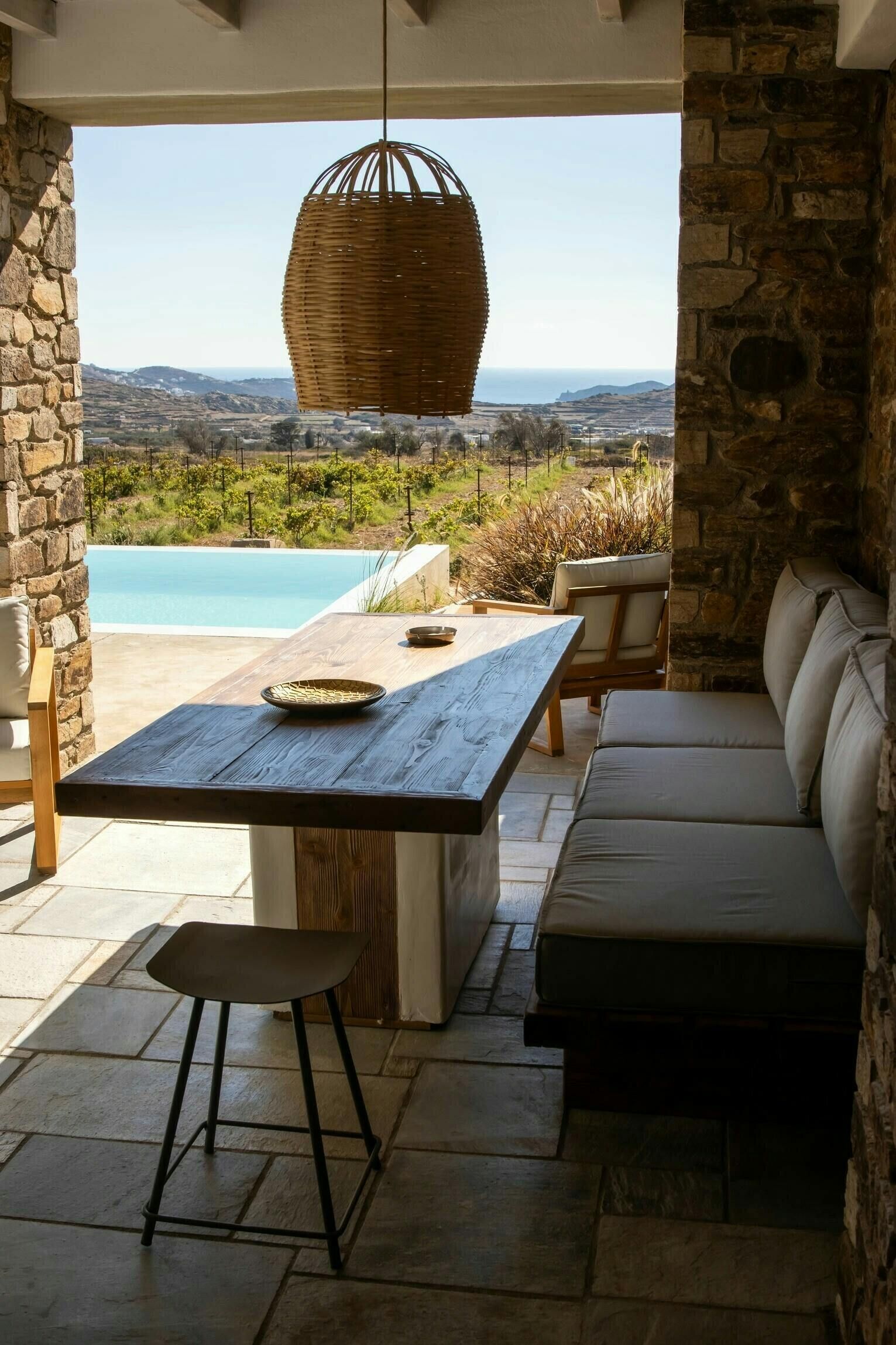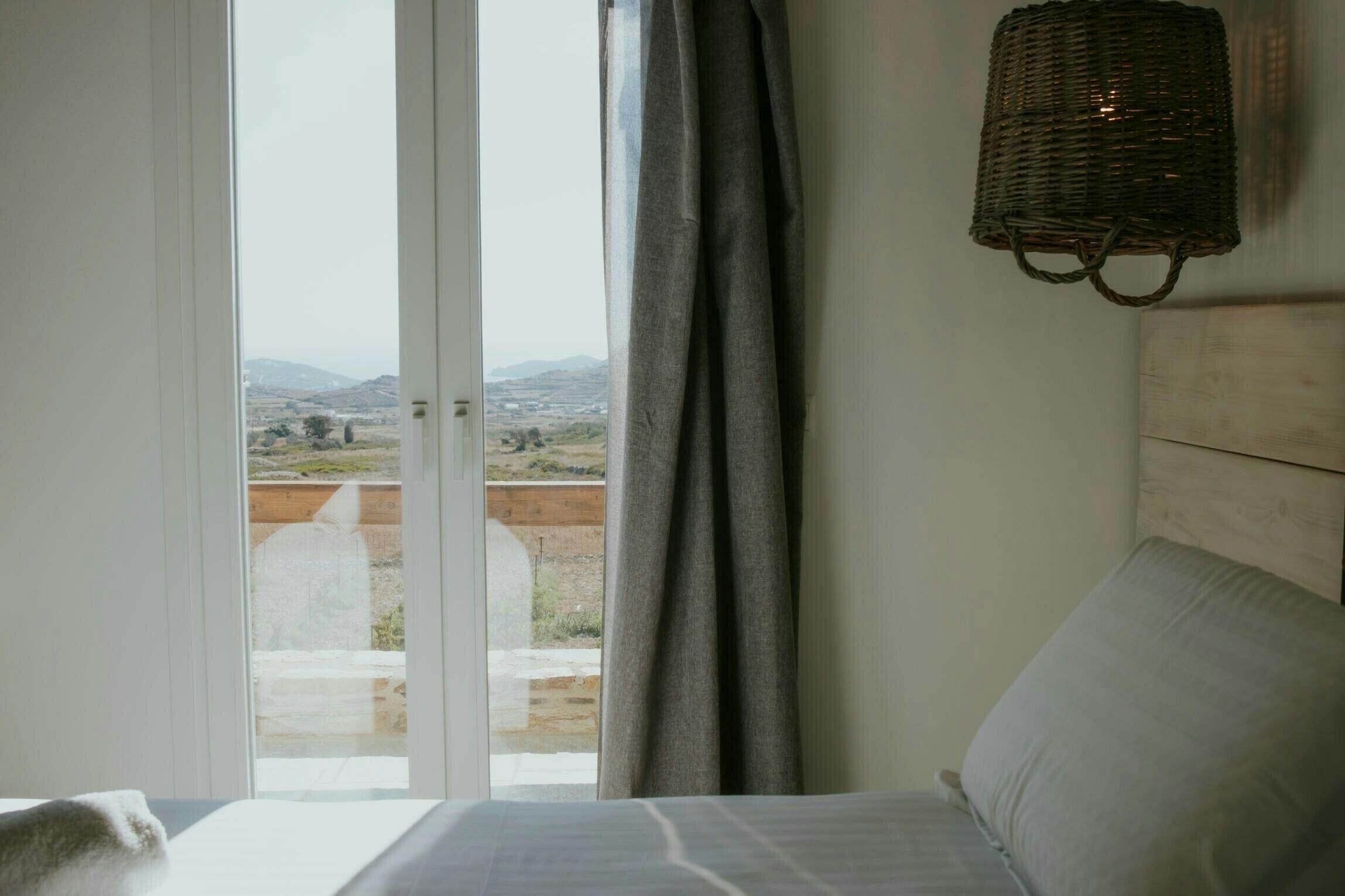 Perched in the hills of Epano Kampos, this home welcomes you to a laid-back island escape. You can stroll to Yialos Beach and Ios Port in just twenty-minutes. The famous monastery of Agios Ioannis just 15 kilometres and you’ll be surrounded by peaceful countryside. It’s worth noting the house is part of a complex, but it still feels private and you’ll be treated to a swimming pool as well as beautiful views. The rooms are simple and well suited to families with both bedrooms featuring en-suite bathrooms.