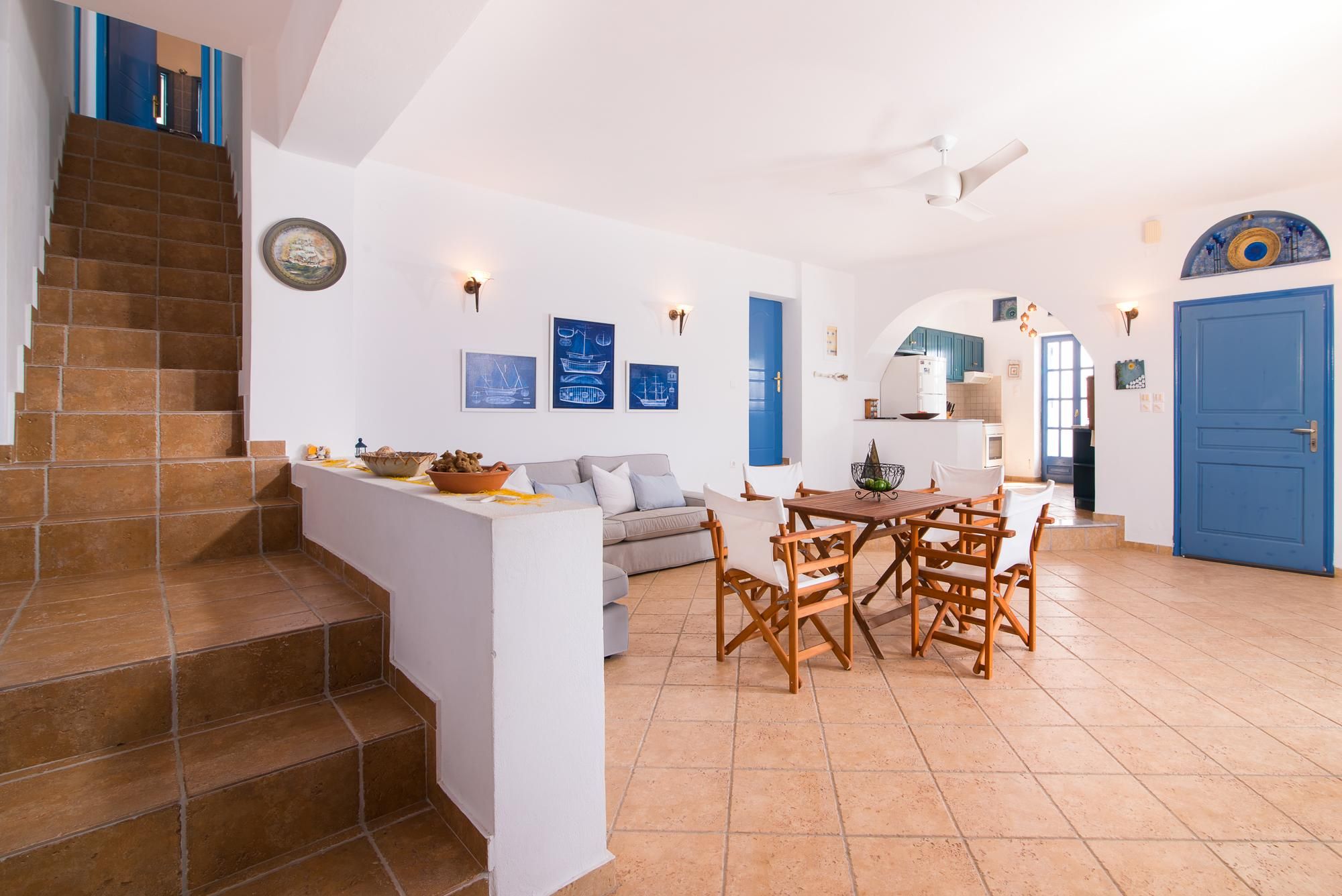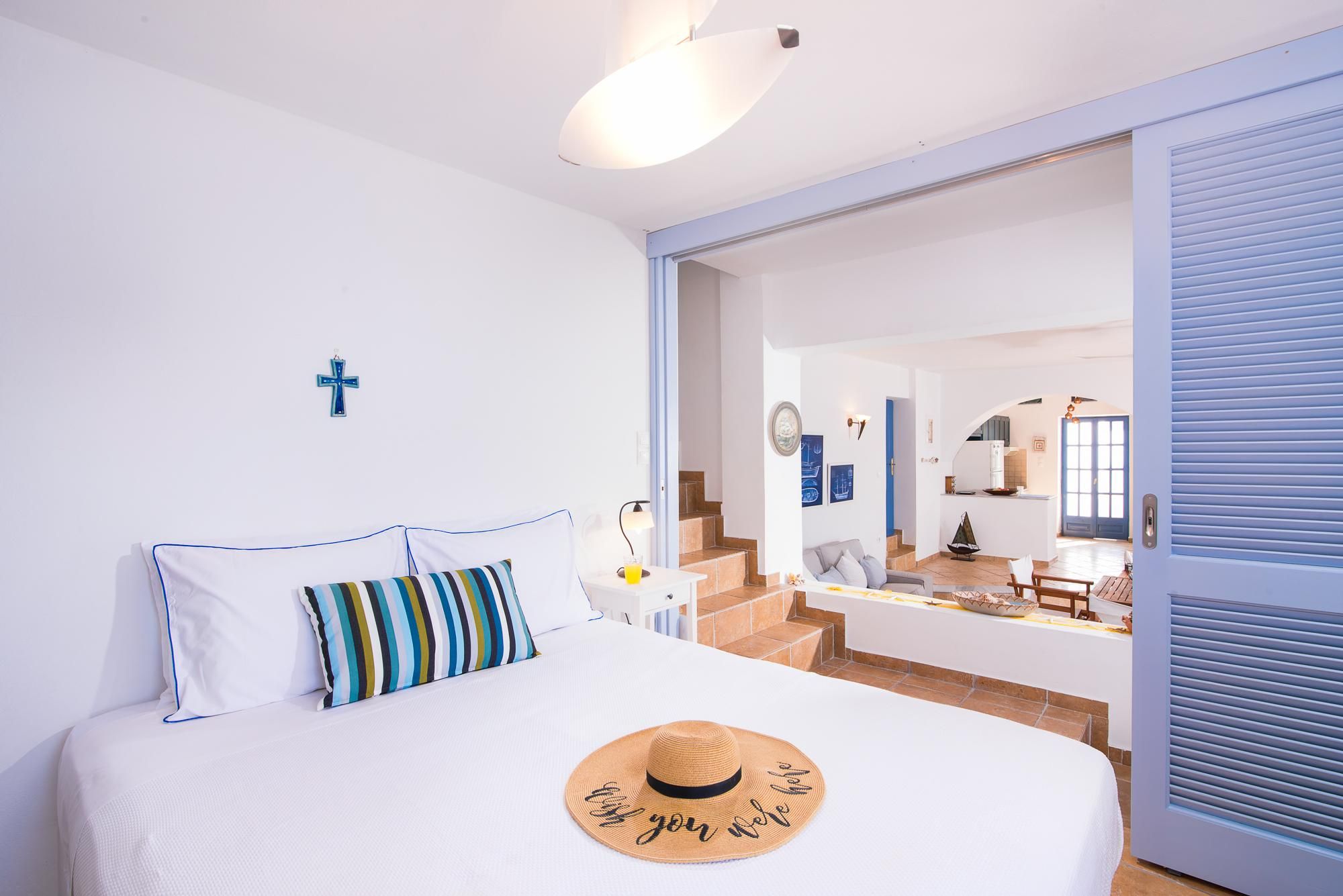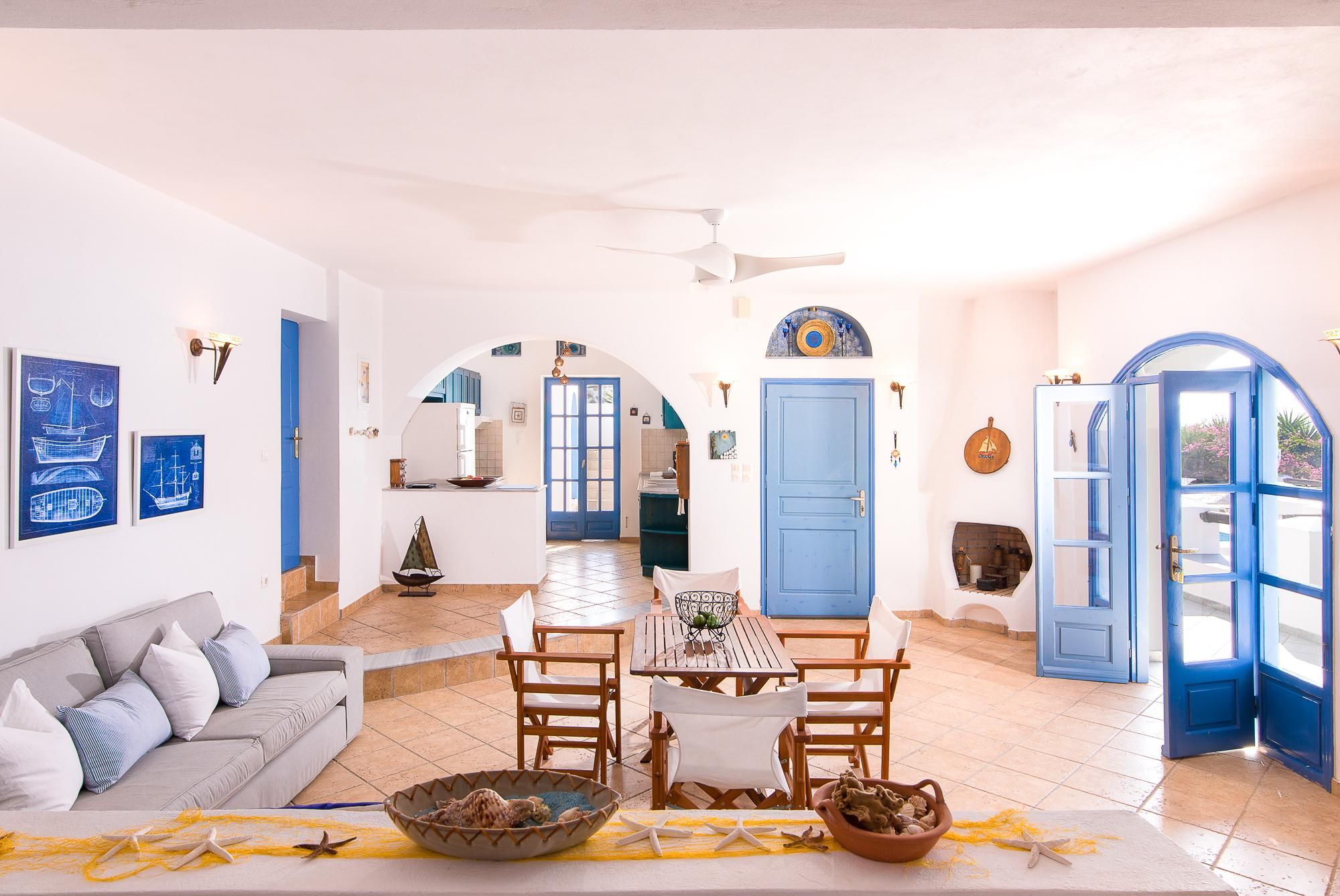 Start each morning with a revitalising dip, overlooked only by low craggy hills and blossoming bougainvillaea flowers. Breakfast will taste all the more delicious with the sea view before you – serve it up on the shaded terrace and tune in to waves lapping beneath the chorus of cicadas. Inside the villa, traditional Greek decor has been embraced, with marine motifs and exposed stone accents keeping the space down-to-earth. Bright and air-conditioned, the living area is the perfect place for a sun break before heading out to explore.
