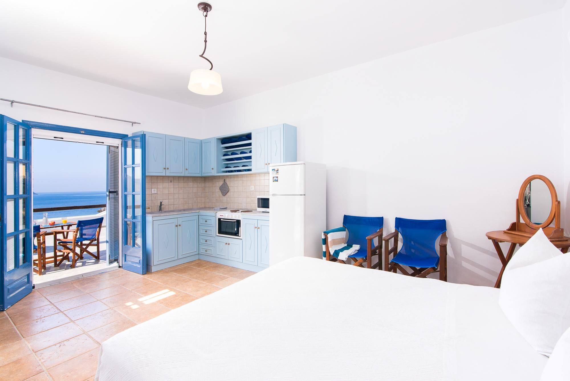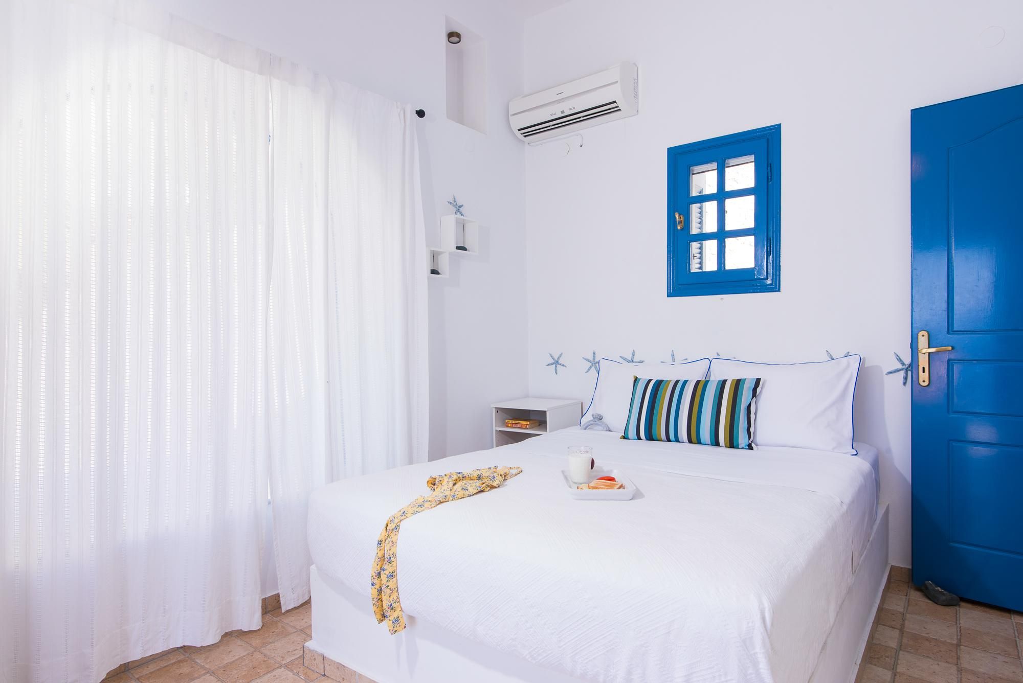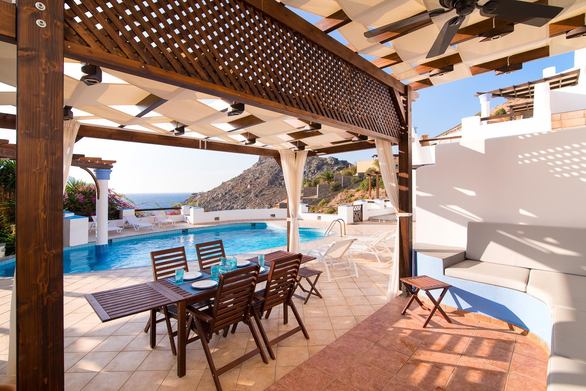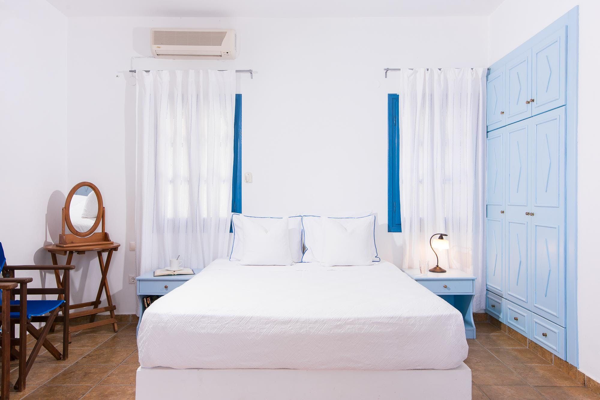 Start each morning with a revitalising dip, overlooked only by low craggy hills and blossoming bougainvillaea flowers. Breakfast will taste all the more delicious with the sea view before you – serve it up on the shaded terrace and tune in to waves lapping beneath the chorus of cicadas. Inside the villa, traditional Greek decor has been embraced, with marine motifs and exposed stone accents keeping the space down-to-earth. Bright and air-conditioned, the living area is the perfect place for a sun break before heading out to explore.