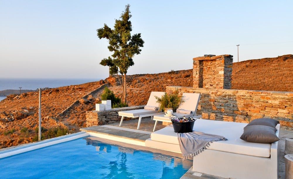 Nestled on a hill with views across the port of Kea, this sleek, contemporary villa is made for outdoor living. With panoramic sea views, whether you’re enjoying some respite from the Greek sun with a refreshing swim in the infinity pool, or simply soaking up the rays from the day bed, you’ll feel utterly content. When dinnertime rolls around, you can choose to rustle up a bite to eat in the modern, well-equipped kitchen, or light the stone barbecue to grill up a storm.