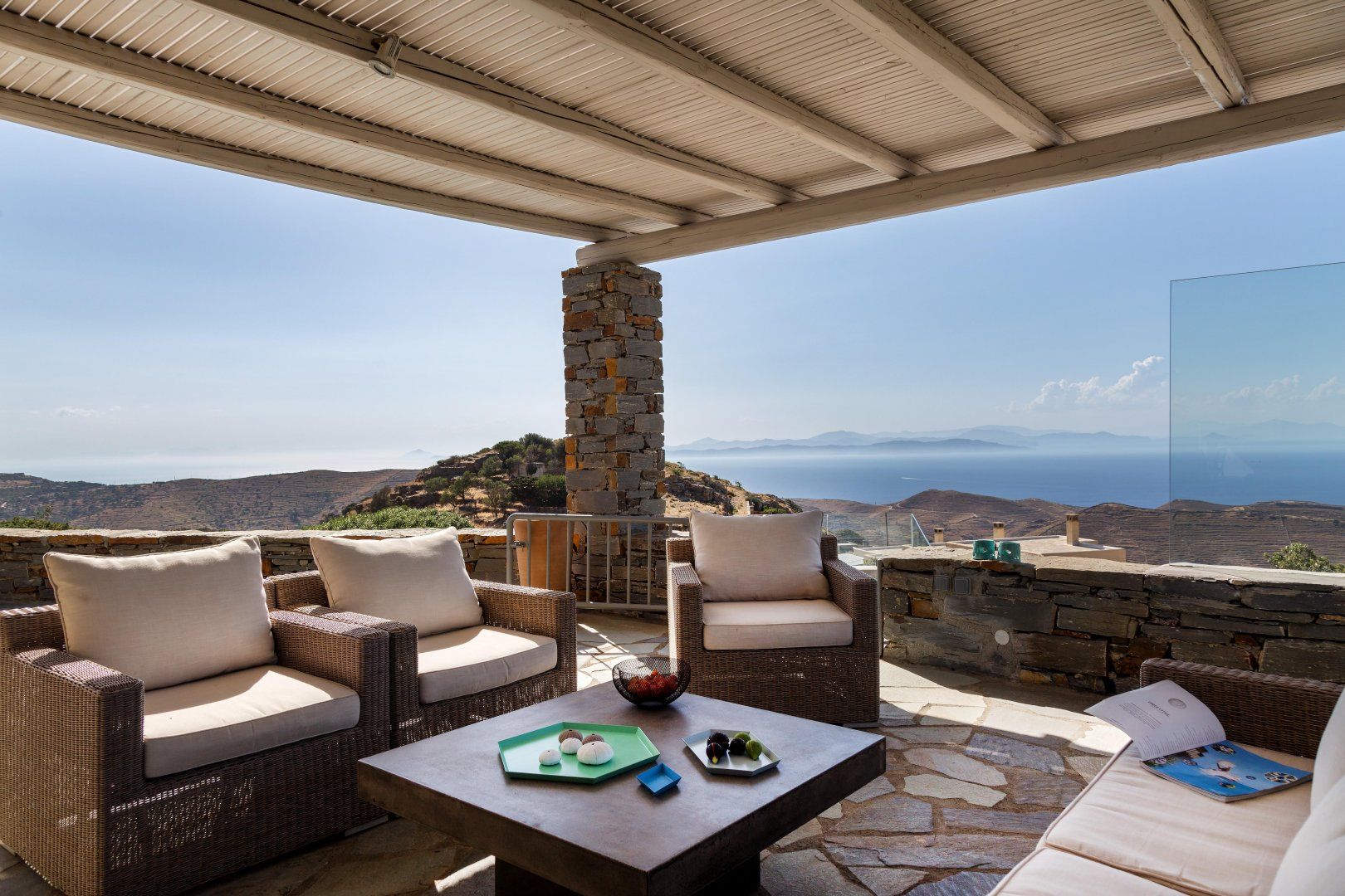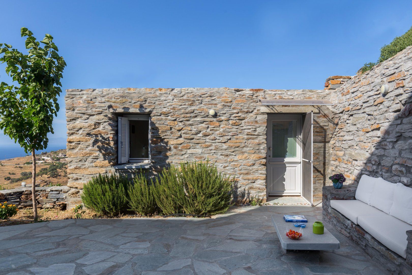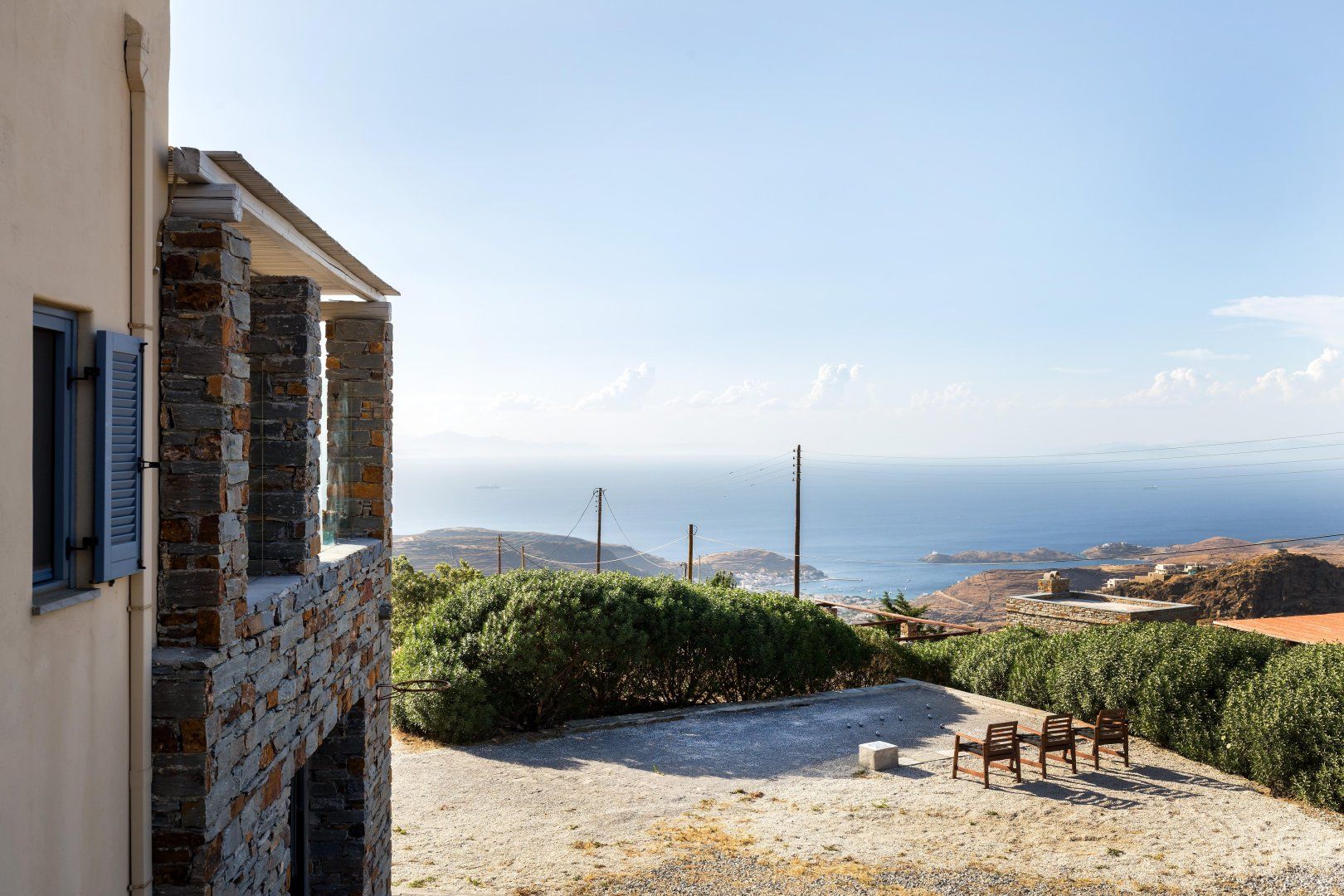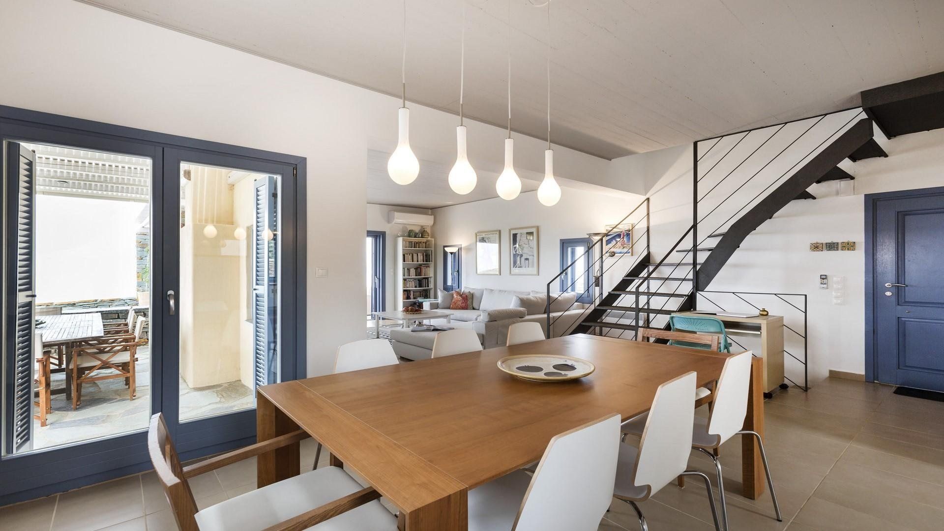 With its unfussy interiors, dusk-to-dawn views of the Aegean Sea and laidback feel, this carefully considered home guarantees a blissful stay in Kea’s untouched countryside. Days begin on the terrace, cup of coffee in hand, watching the sunrise over the craggy landscape. After a traditional Greek breakfast and a game of Pétanque, peruse the bookshelves in the Cycladic-inspired living space and find a shady nook to get lost in a paperback.