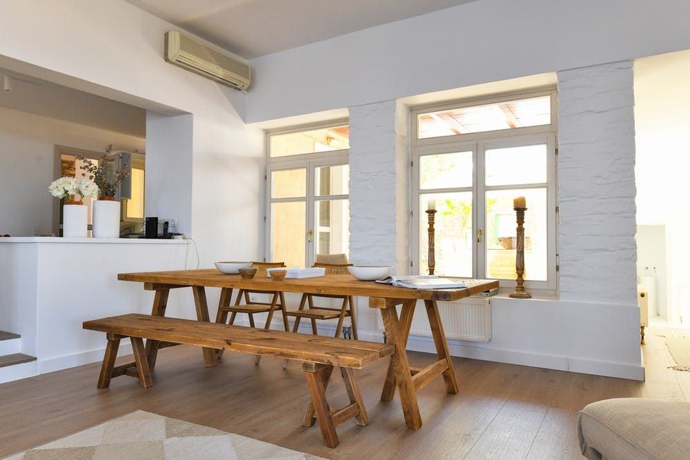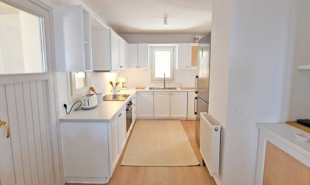 Washed in white with beautiful, rich wood tones running throughout, this quaint villa on the island of Kea welcomes you in with open arms. The charming courtyard is just the spot to settle down under the shade of a tree with a good book and a glass of wine to while away a few hours. When you start to feel peckish, fire up the barbecue and get grilling. As the delicious aroma of food fills the air, gather with your loved ones around the table for an alfresco meal under the Greek sun.