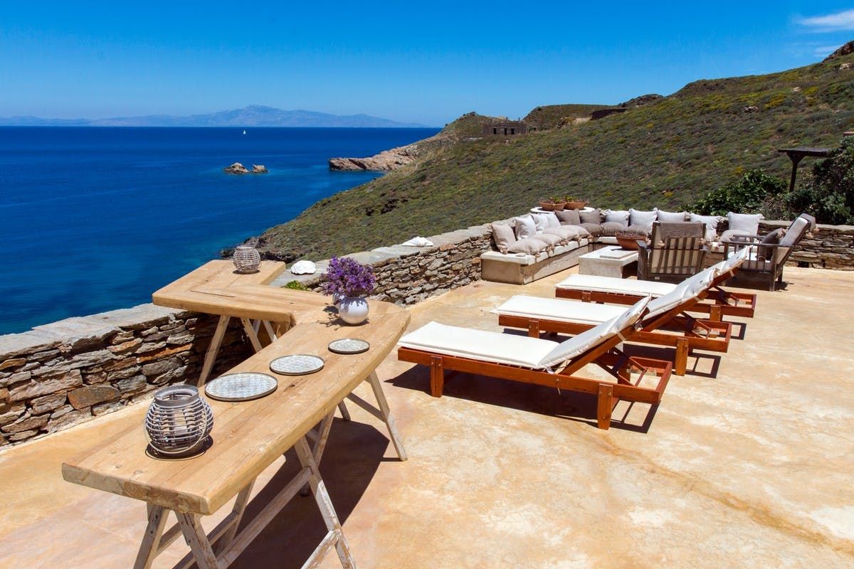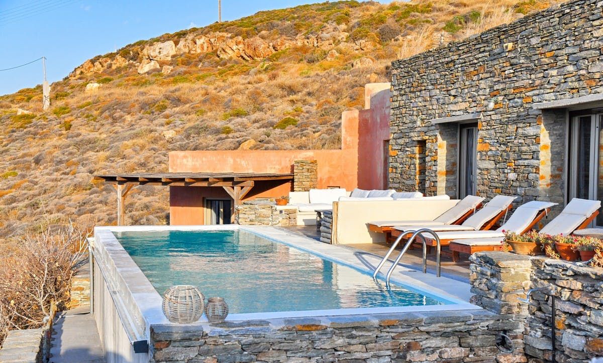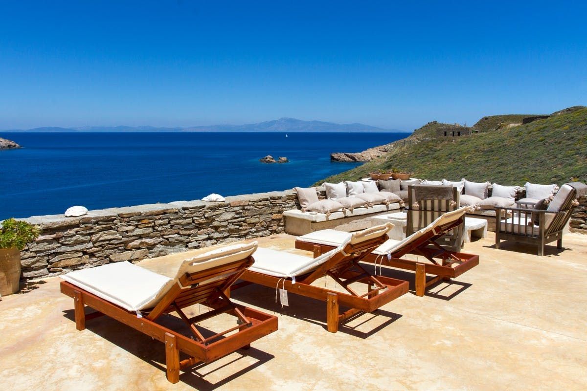 Nestled just outside the small town of Otzias, there’s not a lot going on in this quiet corner of Greece, but you’ll have a variety of amenities at your fingertips that will make it difficult to leave this inviting home. Designed to take full advantage of the Mediterranean climate, it features a spacious outdoor entertainment area that wraps around the home. The communal spaces, like the infinity pool, barbecue and cosy seating zones, make it an ideal choice for a large family or group of friends. The Aegean Sea is steps away, but the shoreline is rocky, so you’ll need to drive to a local beach if you want to comfortably swim in the sea.