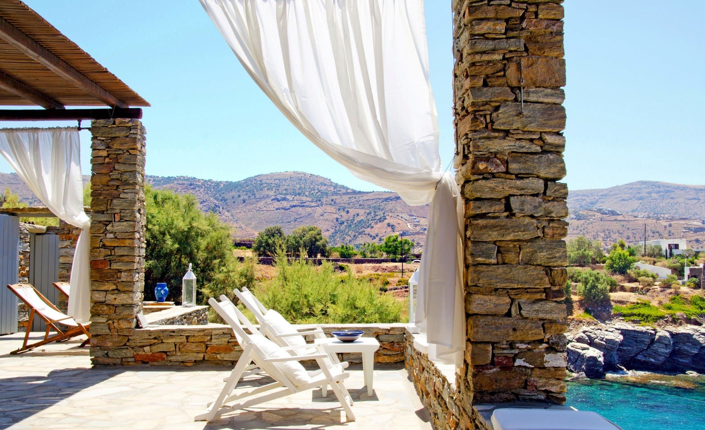 Located atop a rocky bar of Koundouros, this home is made up of independent lower and upper levels, each with their own kitchen and living areas. Outside, the terrace is well-equipped for soaking up the sun or alfresco dining, with lovely sea views and private sea access on the rock platforms below. Things might be a bit of a squeeze at full capacity, so you'll want to pack light. A ten-minute walk will bring you to the nearest sandy beaches of Koundouros, and you'll find beach bars, tavernas and water sports.