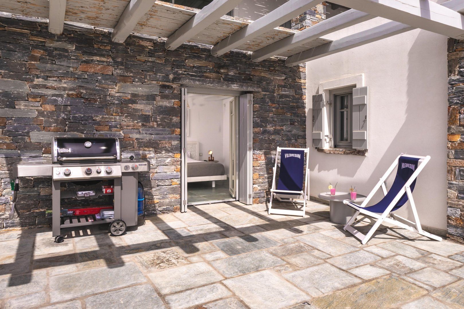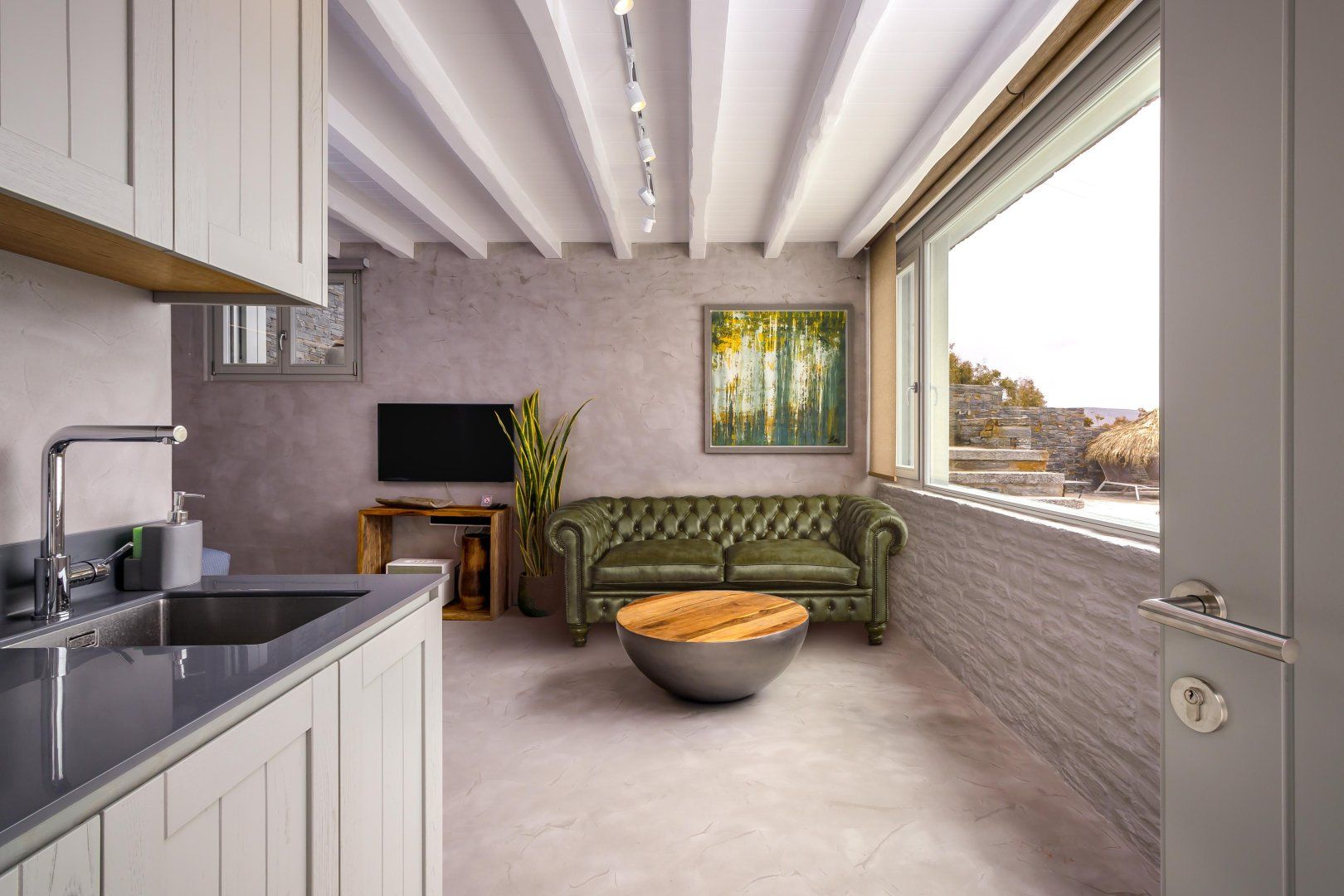 Sometimes, a trip away from home changes everything. Arriving at this beautiful villa on Kea Island, you may find that life will never be the same again. This home ticks every box for us. 180 degrees of unlimited sea views? Oh yes, this home has them. And naturally, you can see the sea from every king-sized, anatomic mattress in this villa. Individually-designed bedrooms, which all have hidden inspiration behind them? Check. You’ll find a bedroom inspired by romantic photographs, one with hand-painted granite leaves, another with an illuminated glass-based bed to make you feel as though you’re on a flying carpet, and another pop-style room with vinyl on the walls. They’re unique, they’re quirky, they’re wonderful.