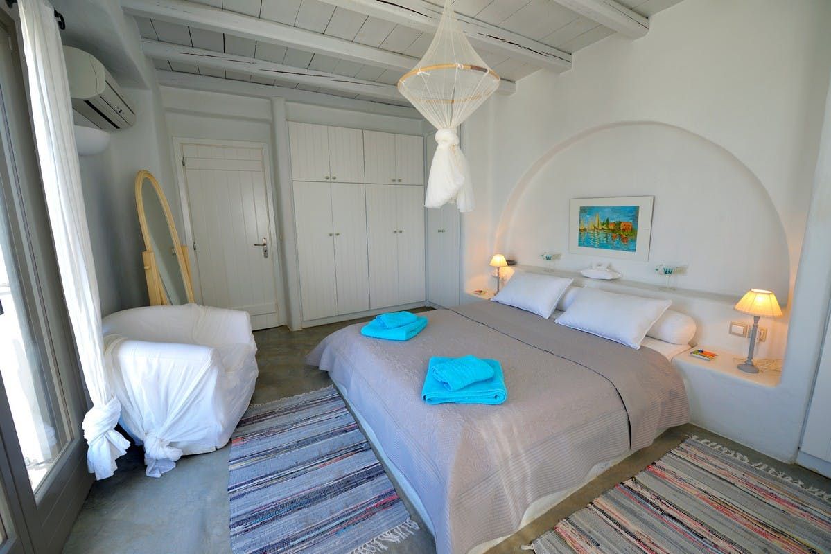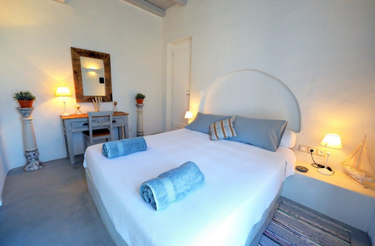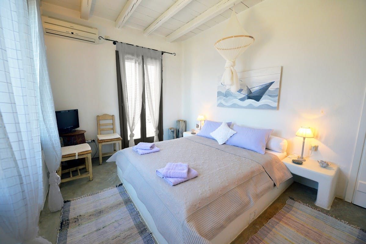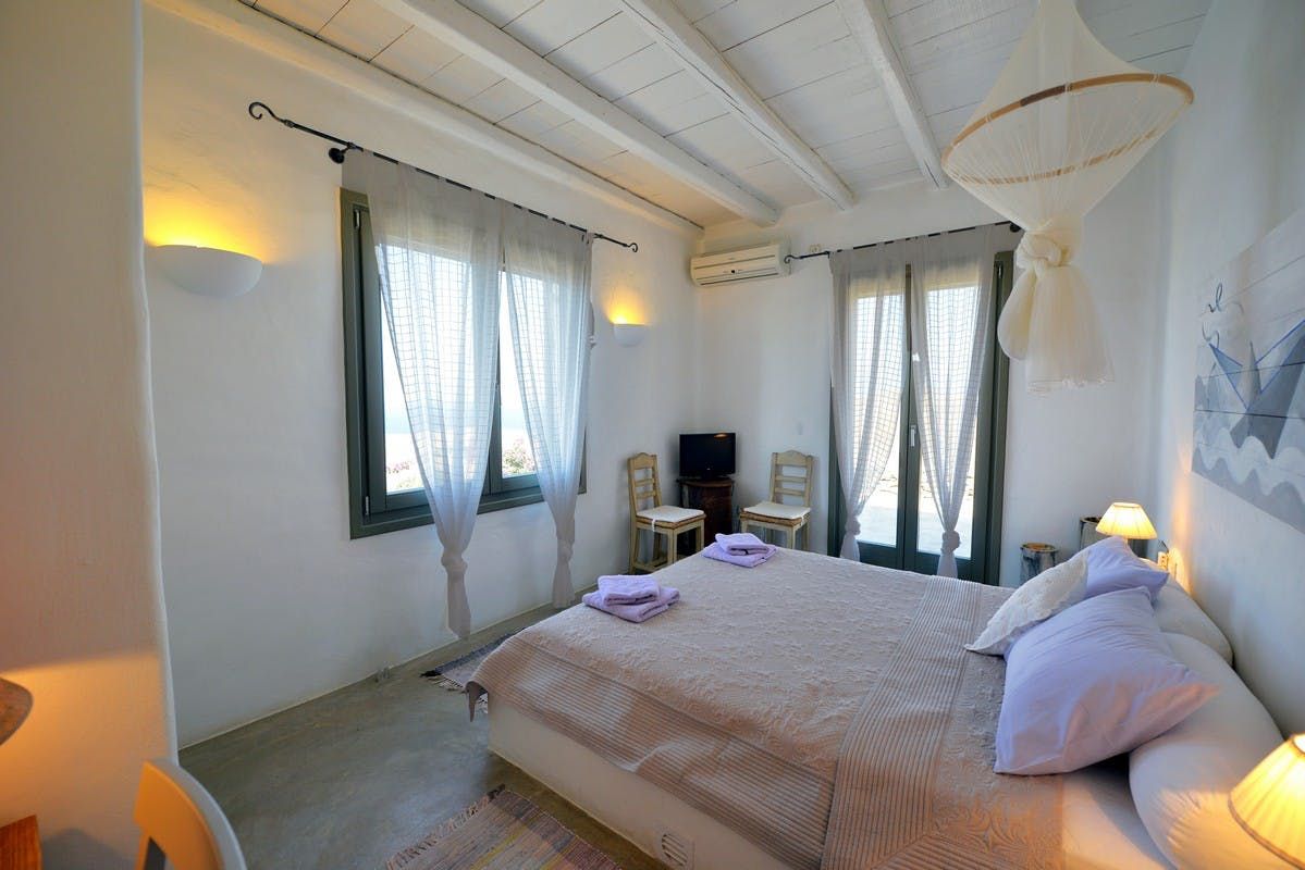 Located in the area of Mellisaki, besides the sea views, the villa sets the scene for an experience typical of the Cyclades. White-washed stone walls, exposed wooden beams, and a beachy aesthetic remind you of your gorgeous location, all while encouraging you to kick back, relax and reset in paradise.