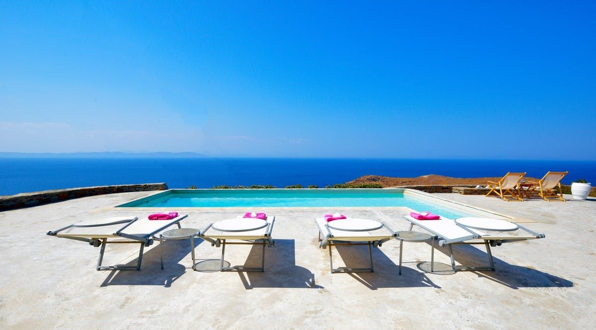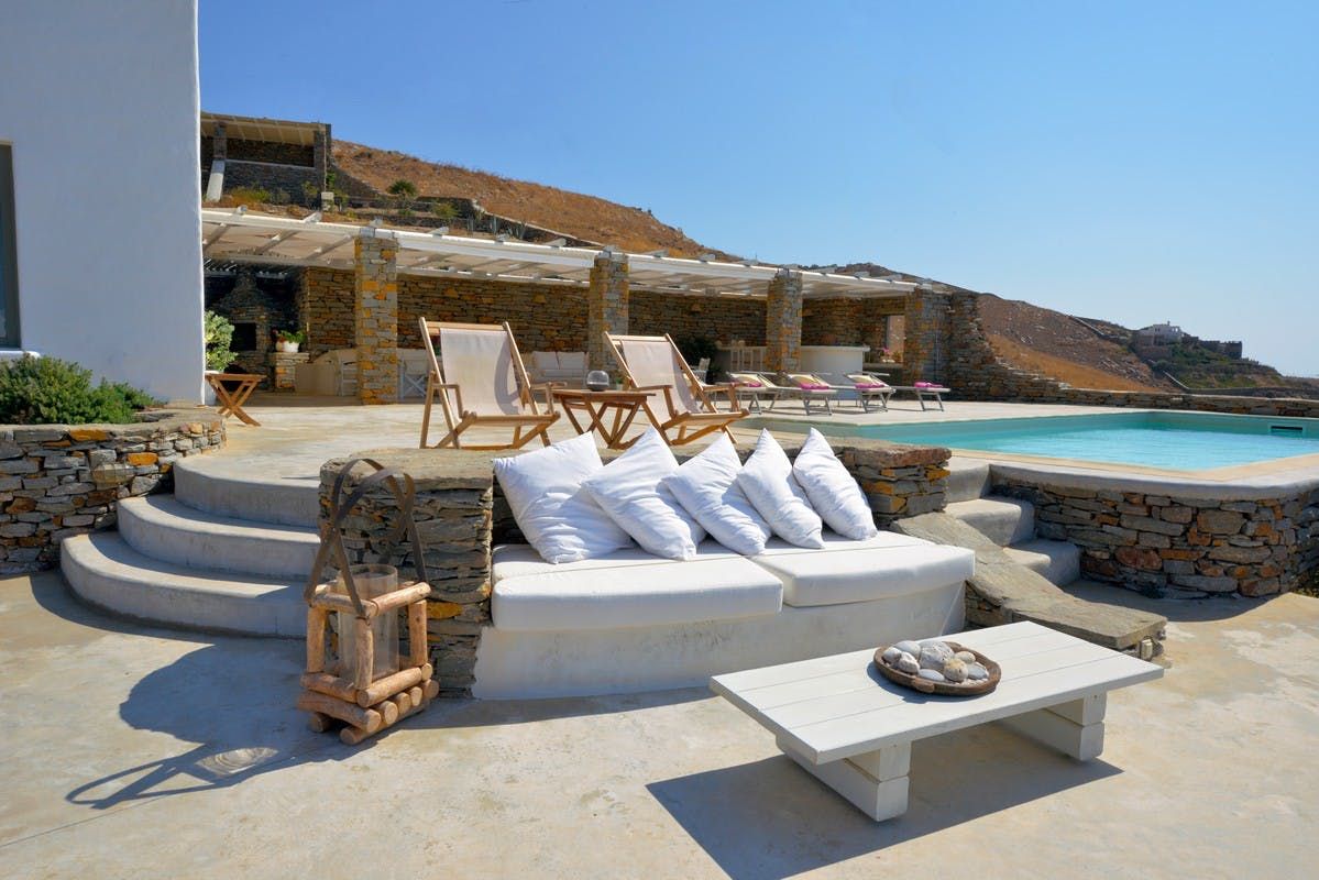 With an outdoor kitchen, bar, dining area and comfy lounge seating – catch the glorious sunset each evening with a refreshing cocktail. Wherever your chosen perch is, it's safe to say you'll be left awe-inspired as the sun paints the sky with fiery hues of pink and orange. Nearby, you'll find Korissia and Vourkari ports, with an array of shops, tavernas and eateries to explore, just a short drive away. Oh, and did we mention the local beaches of Kea? The island has 45 beaches, many of which are accessible exclusively by boat. Heaven.