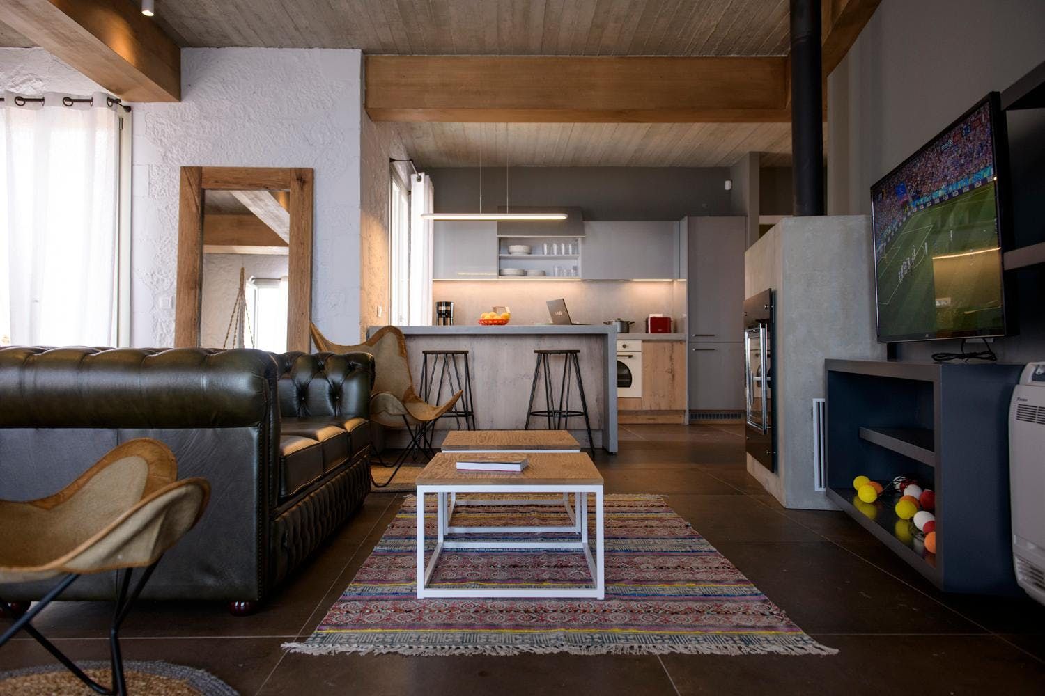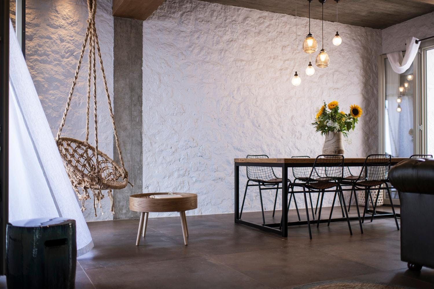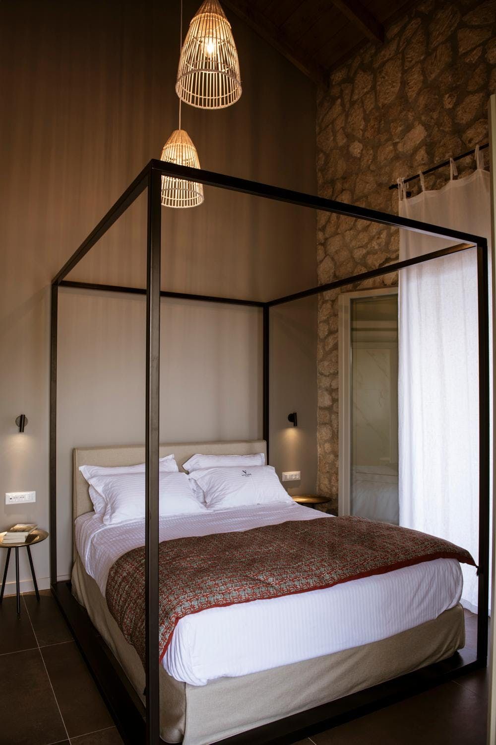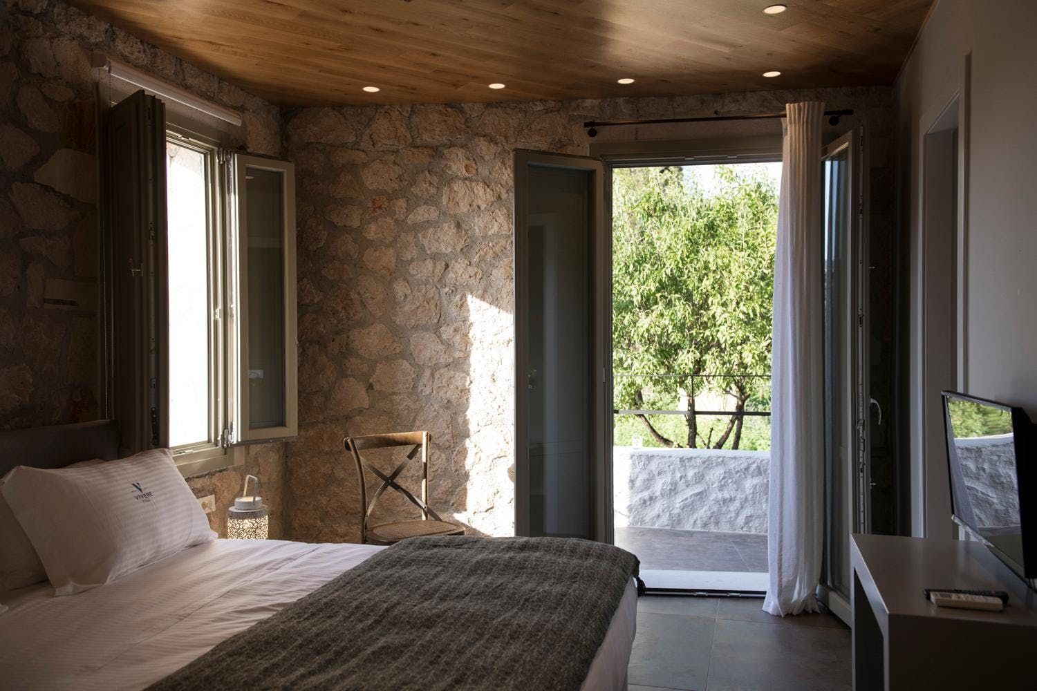 Inside, this beautifully designed, light space has heaps of character thanks to the exposed stone walls and rustic finishes. Over in the bedrooms, each with seperate bathrooms, balcony doors lead out onto a vast, wraparound balcony to soak up those seascapes and the verdant green peninsula.