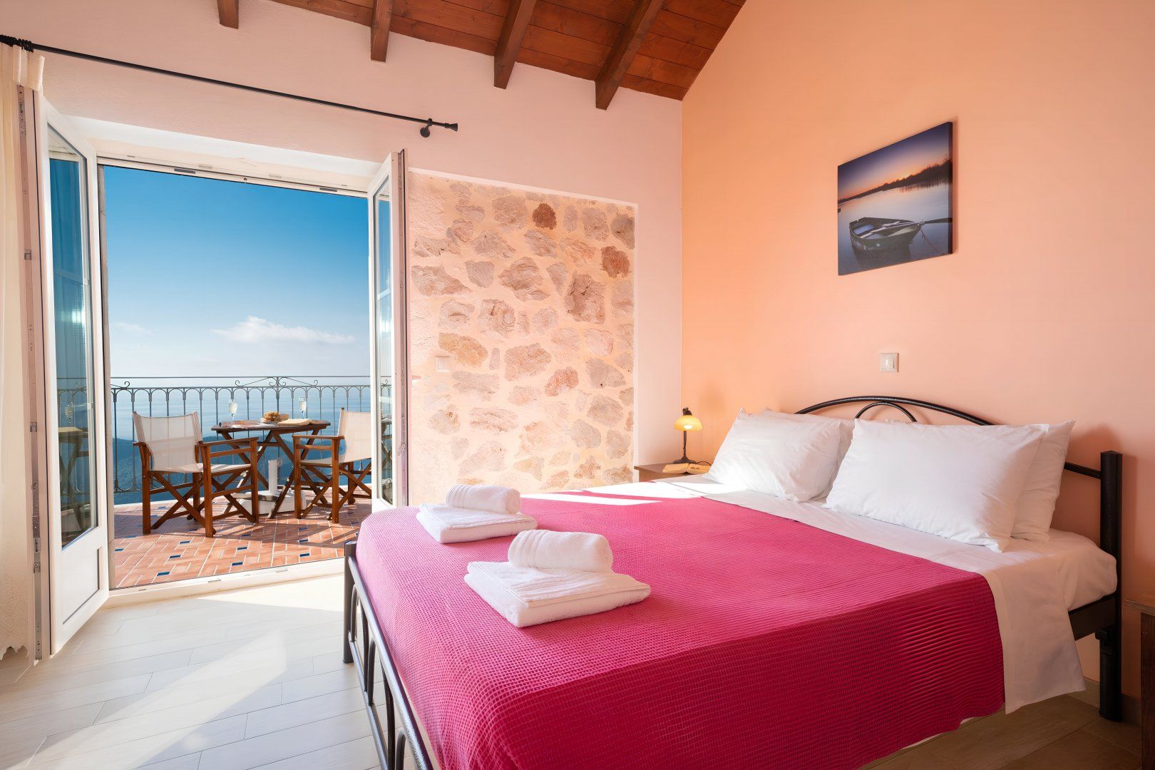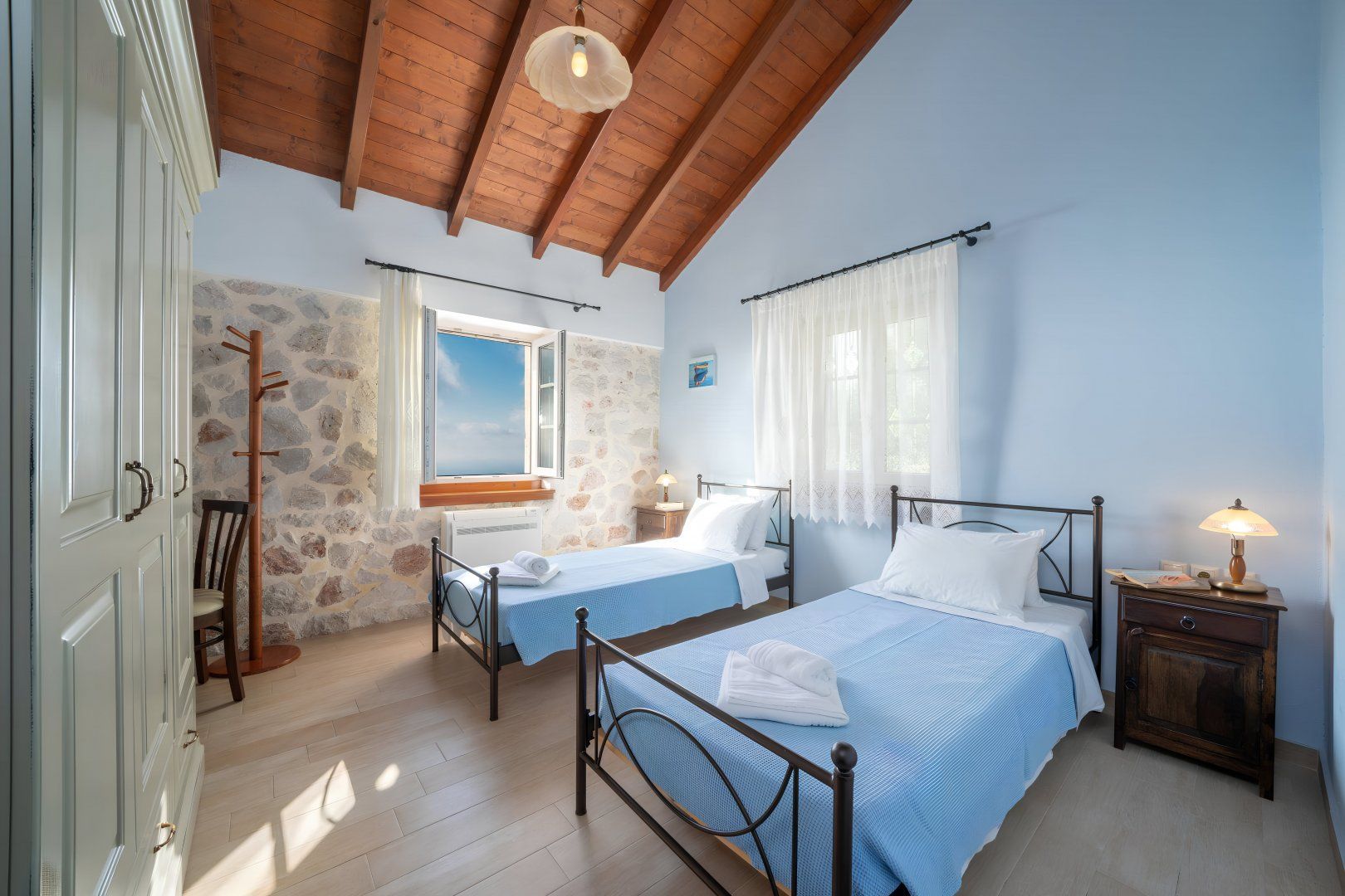 One glance at this villa's sweeping sea views and you can't help but feel completely at ease. The Ionian's crashing waves and Kefalonia's craggy coastline paint the perfect backdrop to your stay, whether you're relaxing on the main suite's balcony, sipping wine on the terrace or splashing in the infinity pool. Inside is a bit more traditional – picture stone walls, timber beams and slightly dated bathrooms – but it's roomy enough for the whole group. Location-wise, the nearest village is Vassilikiades – it's about 4 kilometres away and has a mini-market and local tavernas. Or, venture further afield to Assos (a ten-minute drive away), home to a hilltop fortress and small cove beach.
