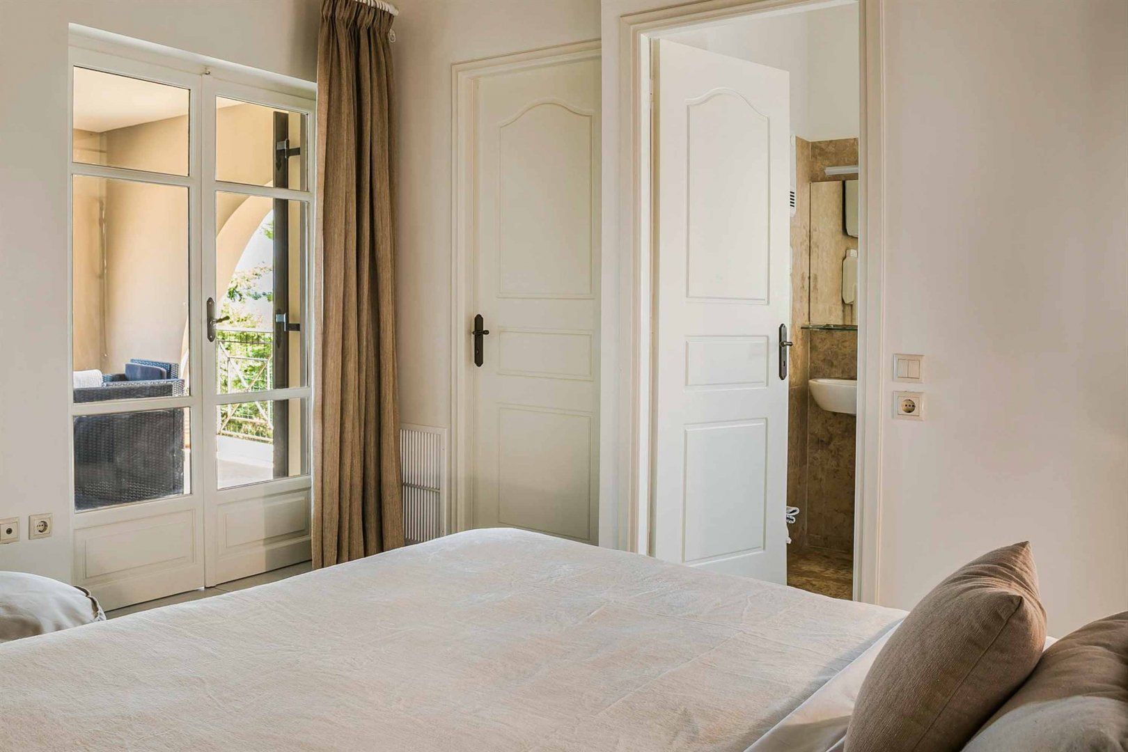 Set above the picture-perfect coast of northeastern Kefalonia, this home captured our attention at first glance. The views are hard to beat, the rooms are elegant and it’s just a short drive to the beautiful beaches of the coast – the nearest is 1.8km away. You’ll also find the pretty harbour of Fiscardo within easy reach – making this an ideal location from which to explore the island as well as relax in your own private sanctuary. There are two pools (one is shallow for little ones) and a hot tub, plus the terrace has a barbecue for al fresco dining. You’ll also find an adjoining annexe with a small kitchen and two bedrooms – providing plenty of space for groups to stretch out and spend quality time together.