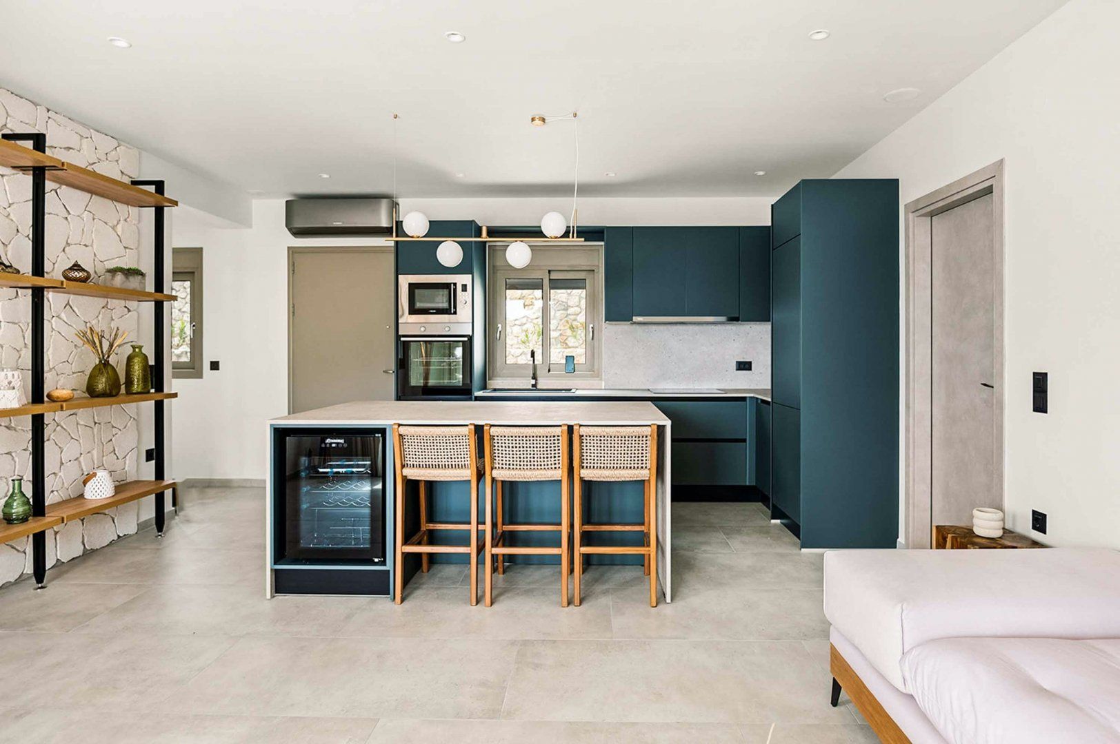 Now that's what we call a view. Perched on a hill overlooking Mounda Beach and the Ionian Sea, it's no wonder this Kefalonia villa caught our eye. Thanks to a private infinity pool and a sunny terrace, you'll have ample opportunities to admire the scenery – although the sleek, minimalist interiors aren't too shabby, either. We also love the location. You'll be just a short walk from local tavernas and cafes, plus an easy drive to the charming streets of Skala. The nearest beach is about 4 kilometres away, so we suggest hiring a car – not to worry, as private, off-roading parking is included.
