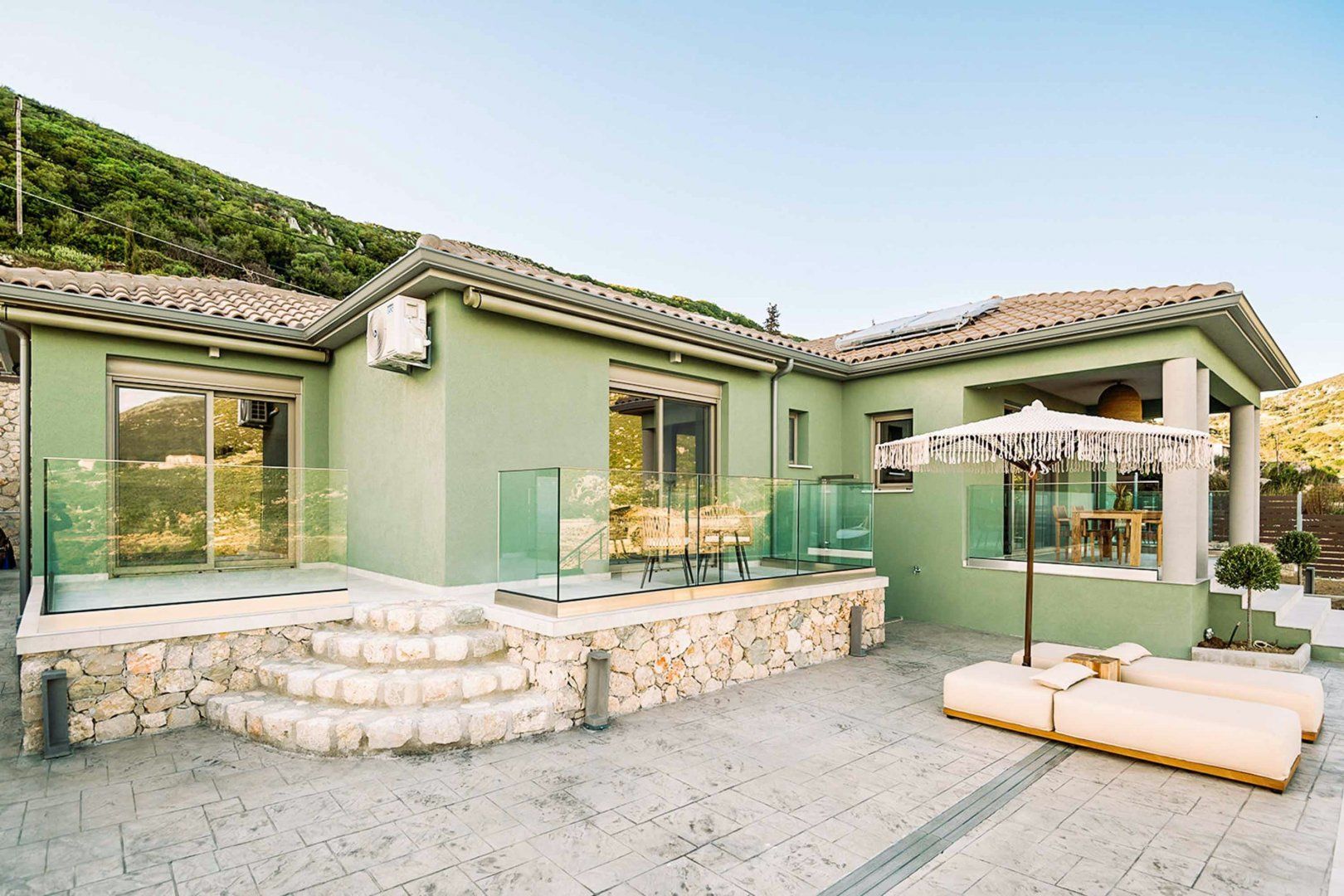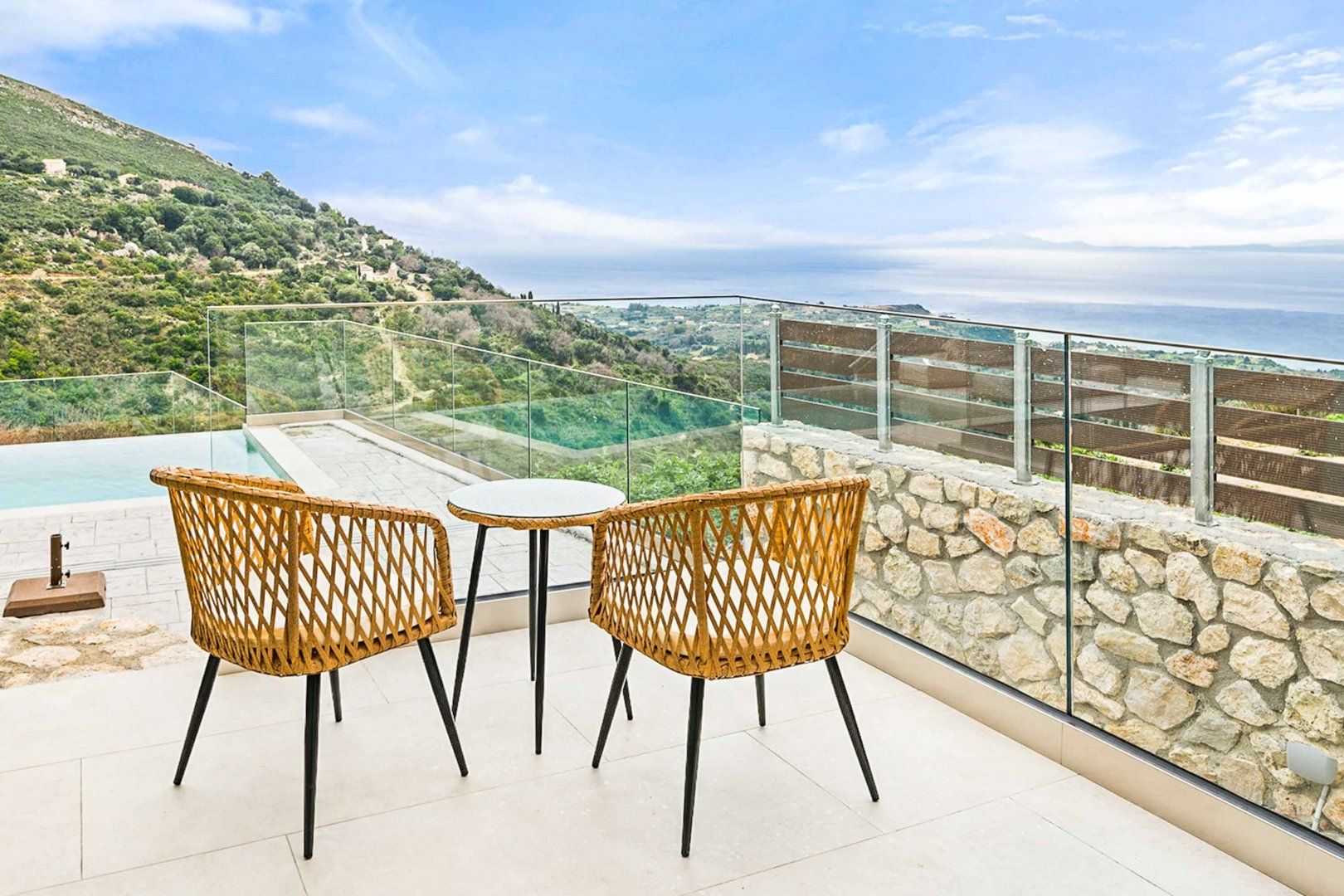 *Access to the villa requires going down fifteen steps. There are also five steps from the door to the pool terrace, and four steps from the balcony to the pool terrace.