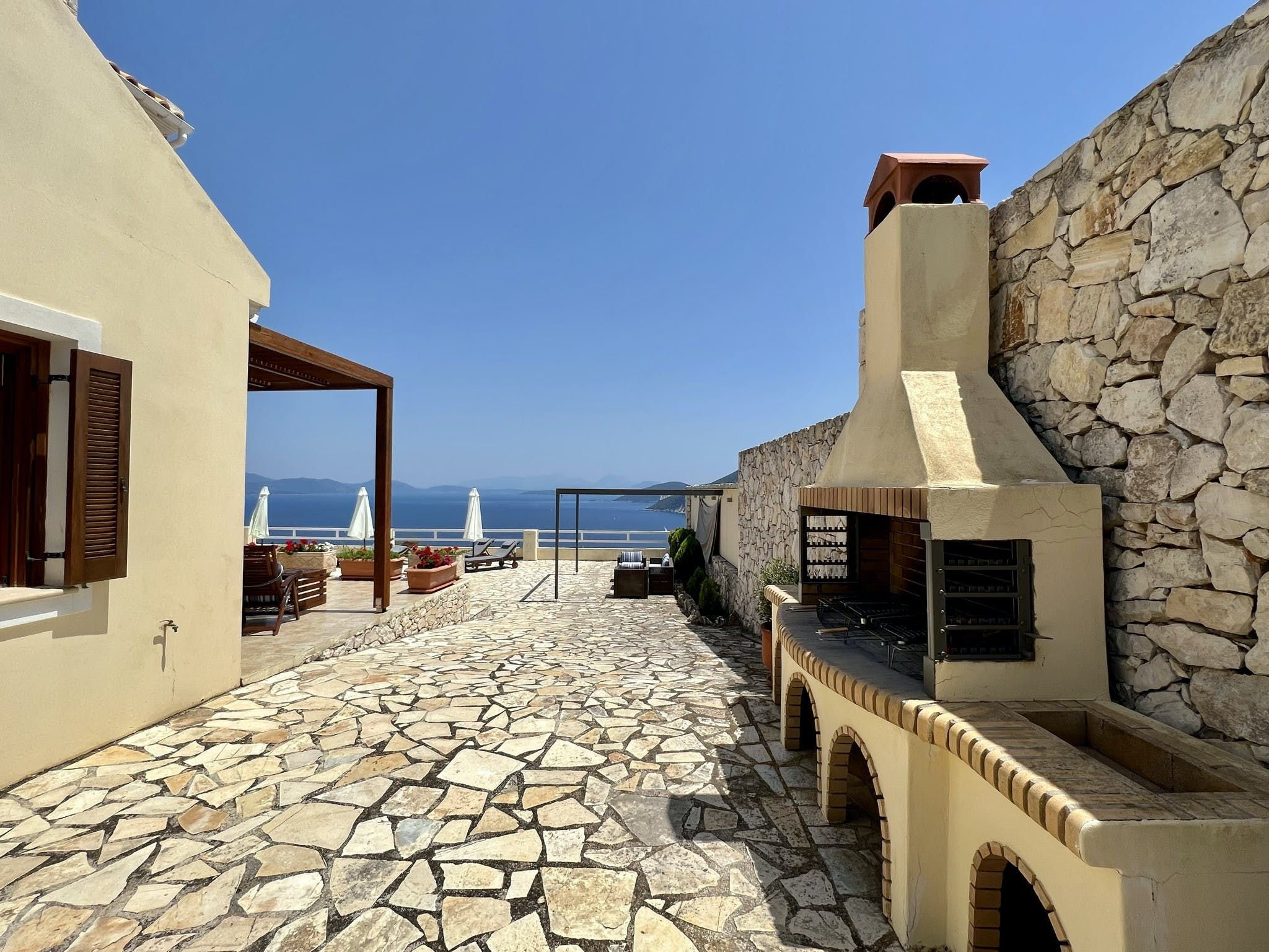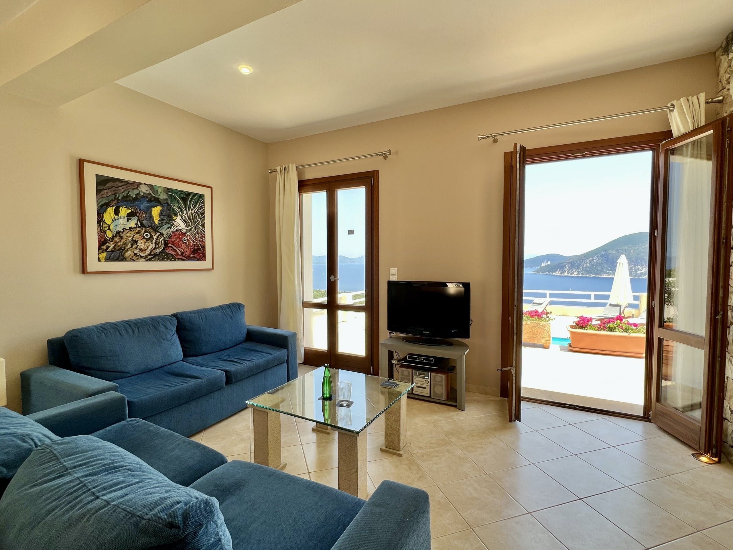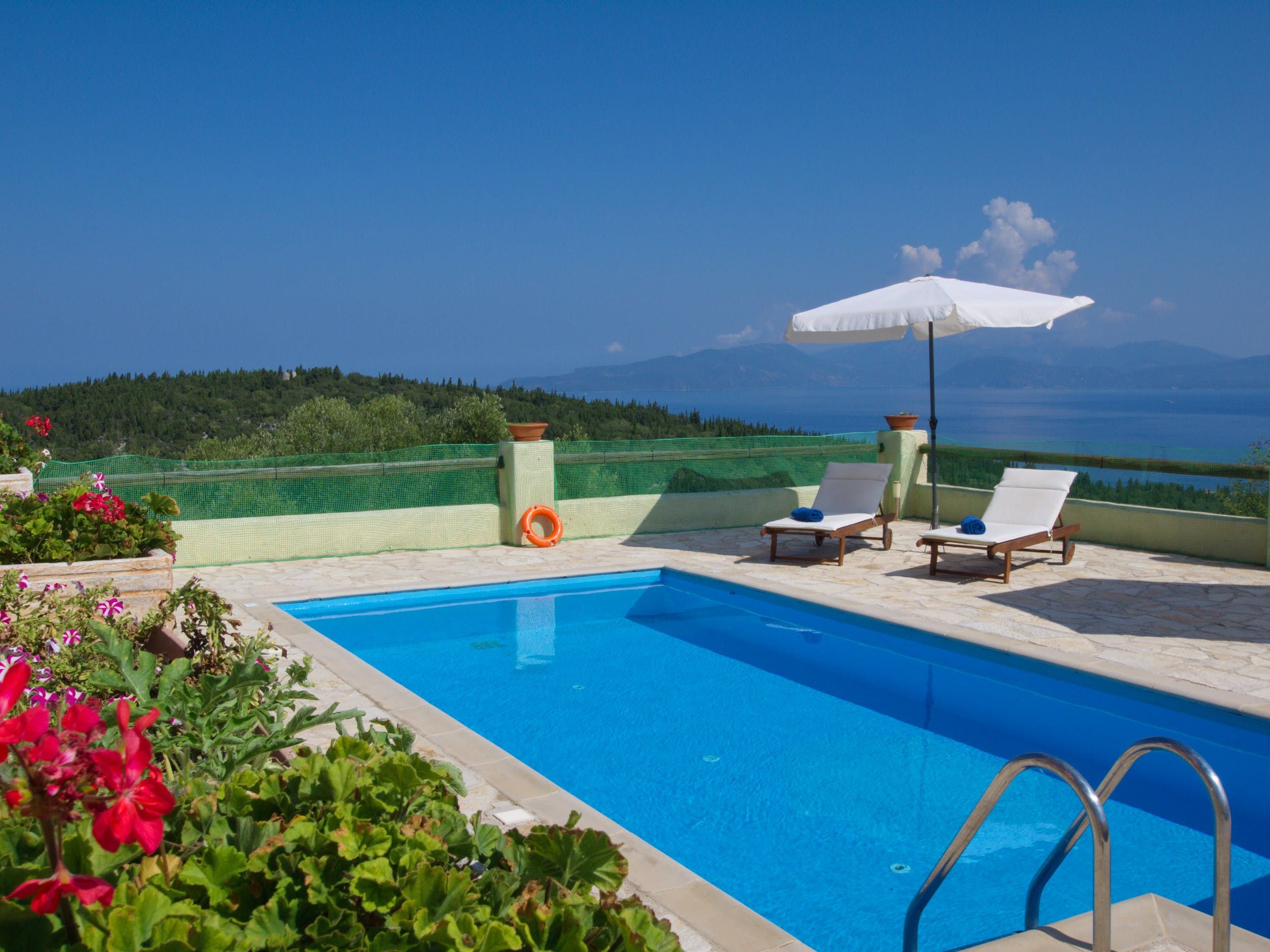 Just a short drive from Foki beach, this villa promises a tranquil Greek getaway. Ideal for families, it’s unfussy interiors provide enough space for up to seven people – albeit with one guest on the sofa bed in the living room. But, the cherry on the cake for us here is the outdoor space. With far-reaching views across Fiskardo Bay, it’s impossible not to relax. So, take your pick of places to soak up the Mediterranean sun – the balcony, terrace, or private pool are all waiting.