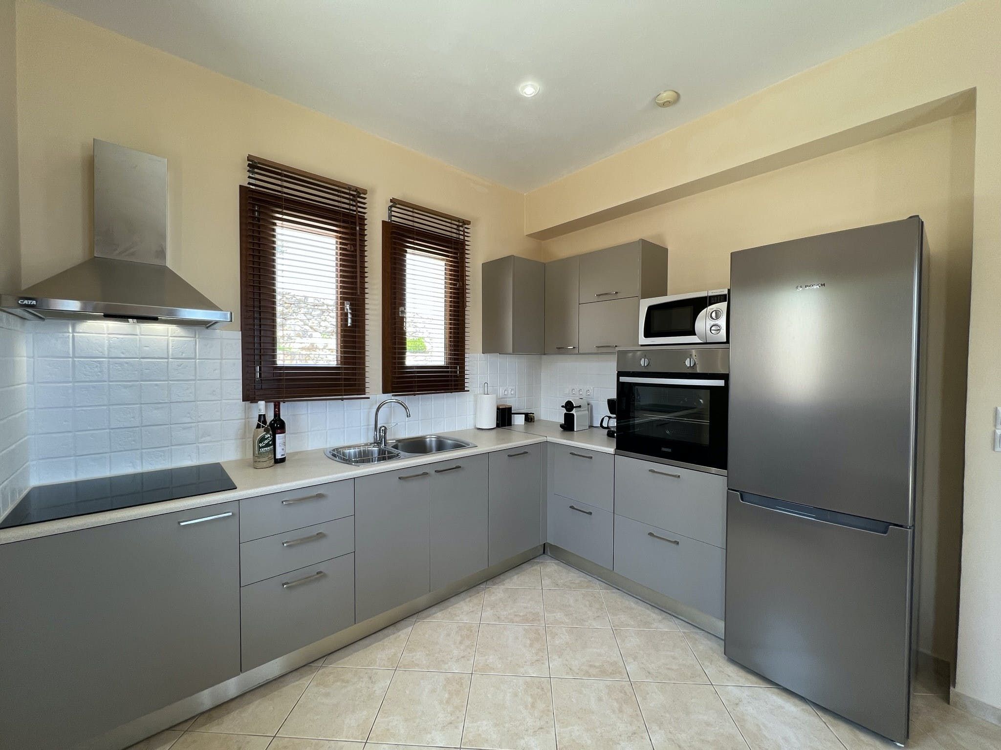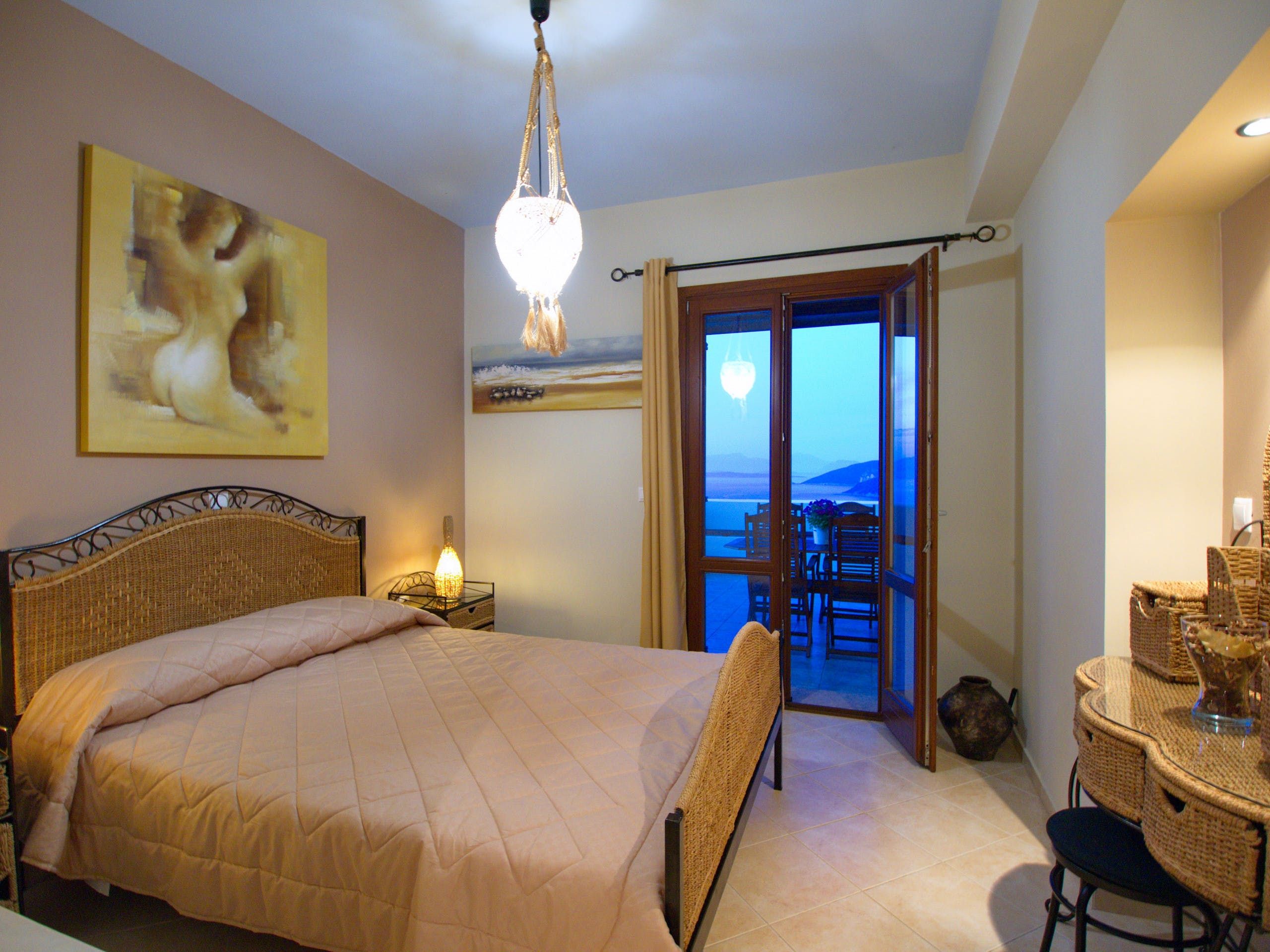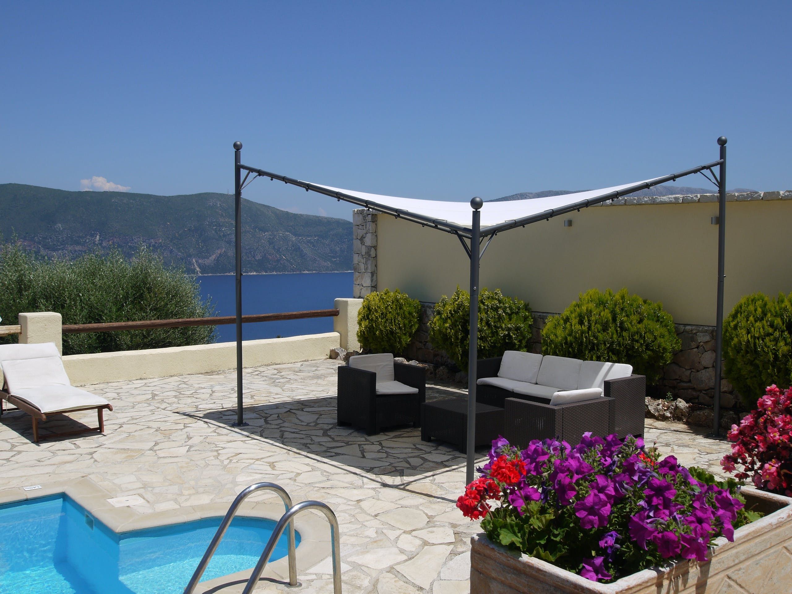 Just a short drive from Foki beach, this villa promises a tranquil Greek getaway. Ideal for families, it’s unfussy interiors provide enough space for up to seven people – albeit with one guest on the sofa bed in the living room. But, the cherry on the cake for us here is the outdoor space. With far-reaching views across Fiskardo Bay, it’s impossible not to relax. So, take your pick of places to soak up the Mediterranean sun – the balcony, terrace, or private pool are all waiting.