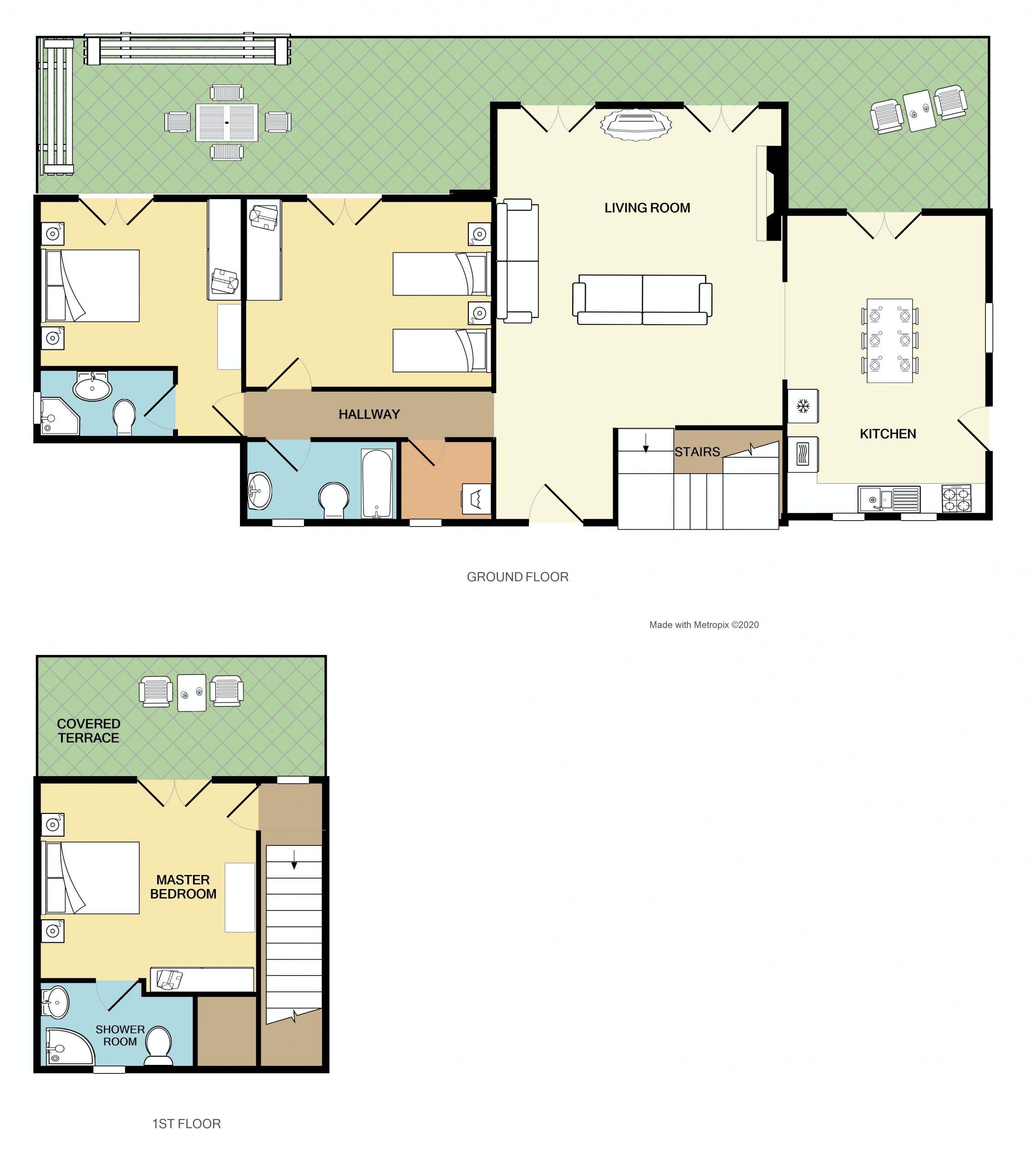 *At full occupancy, one guest will be sleeping on the sofa bed in the living area.